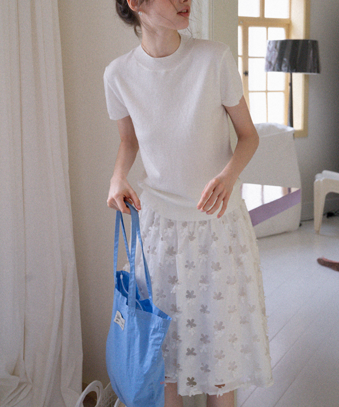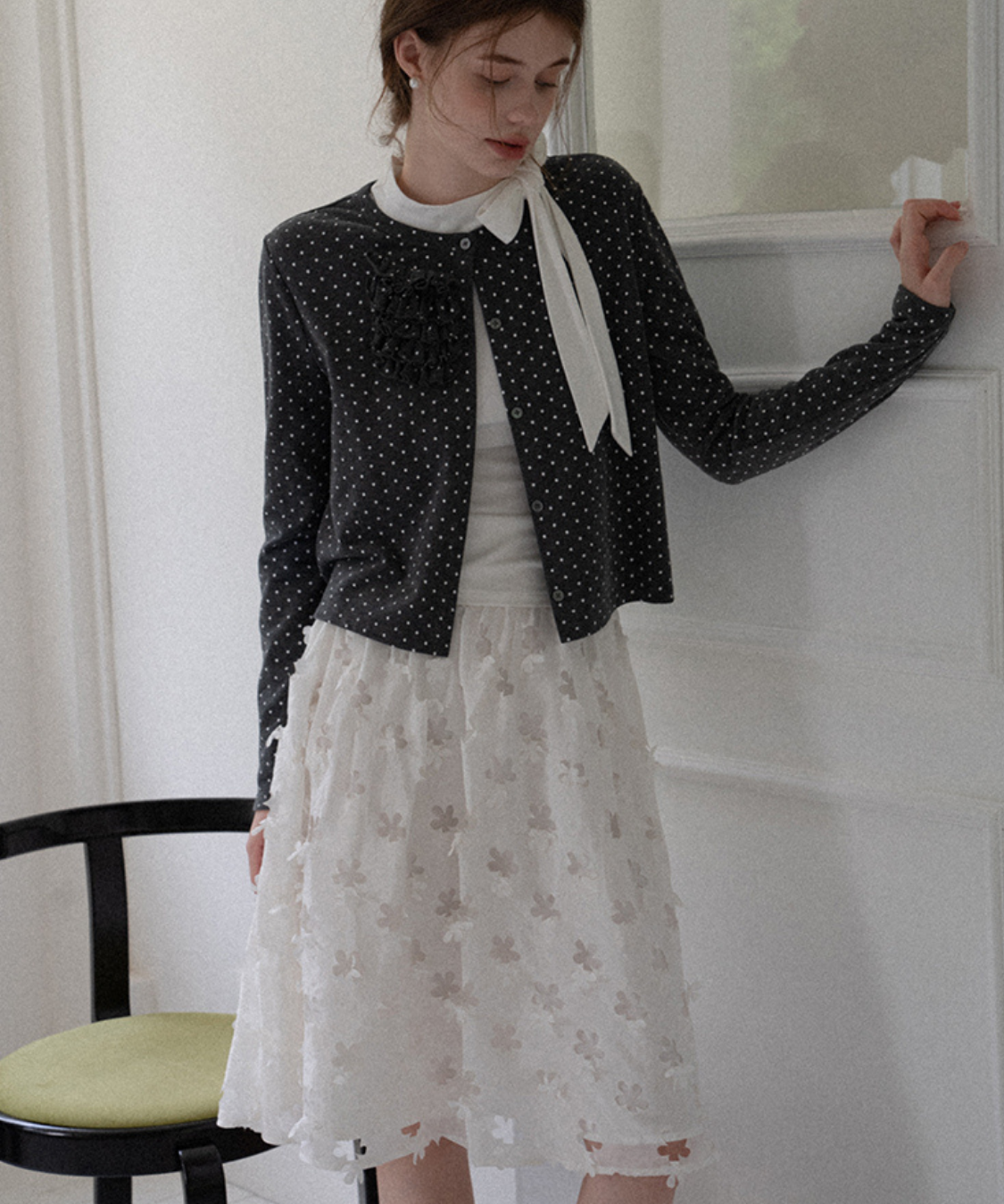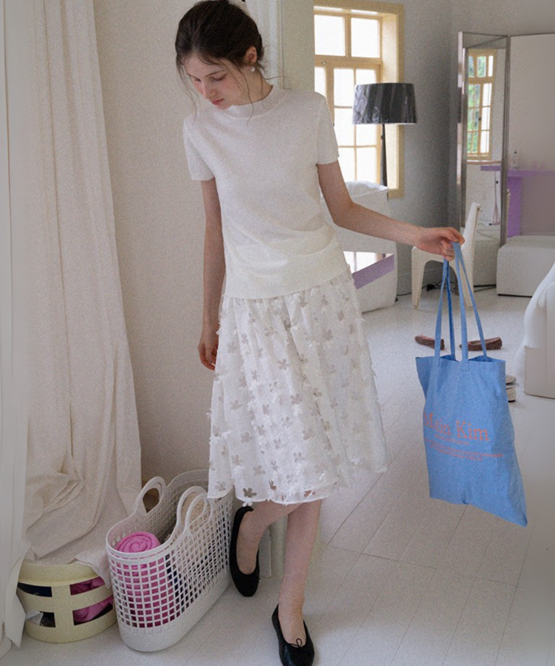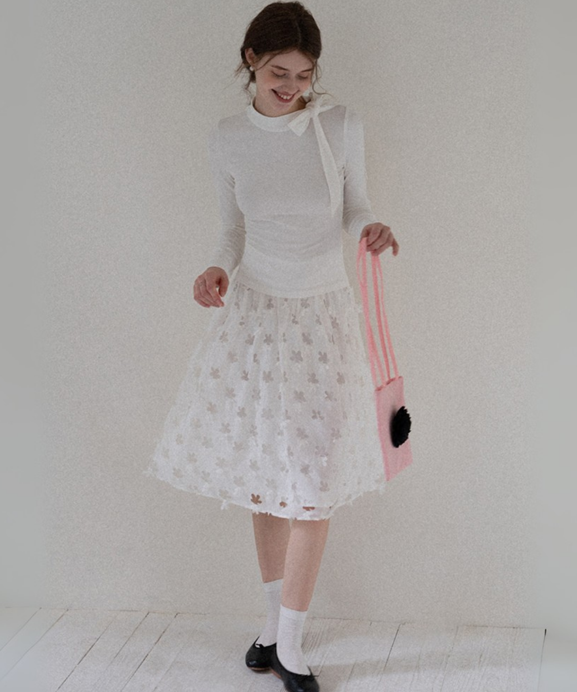 フラワーモチーフのカットワークが繊細で華やかな印象のスカートです。