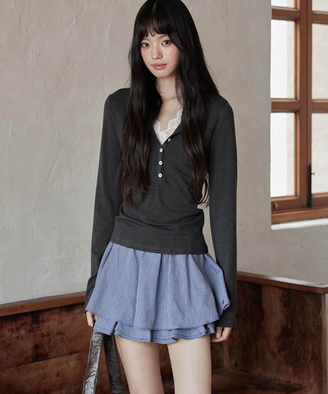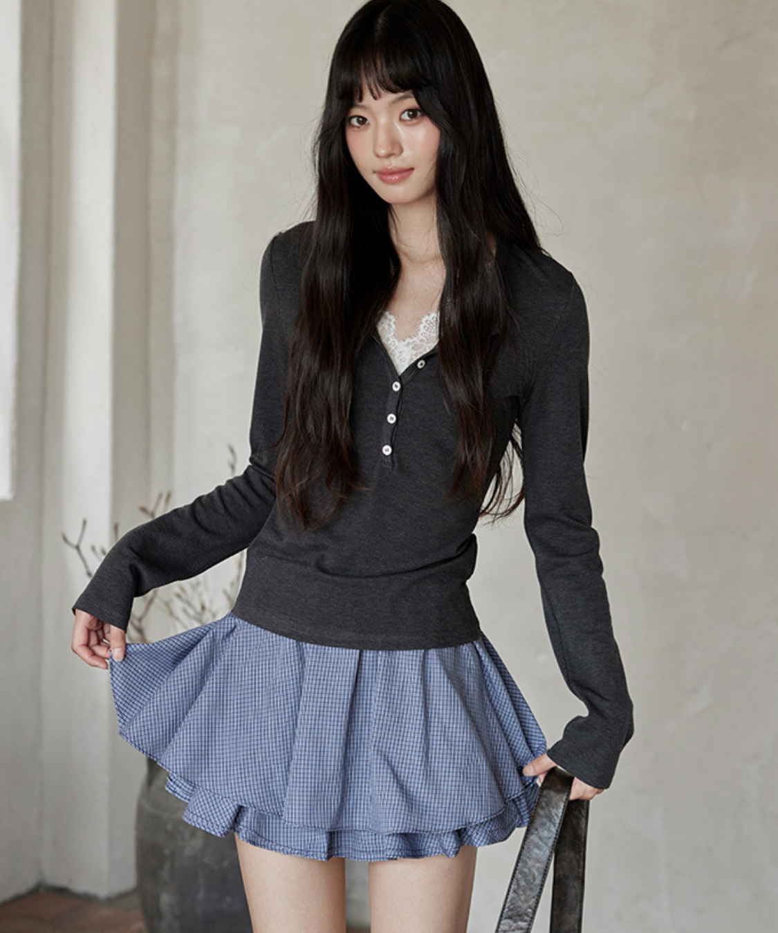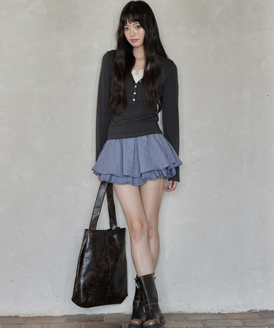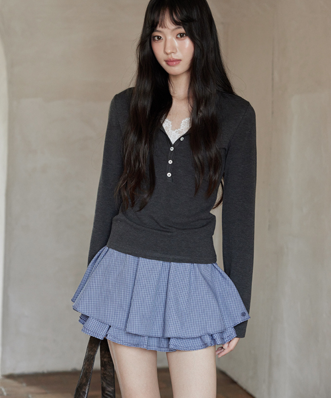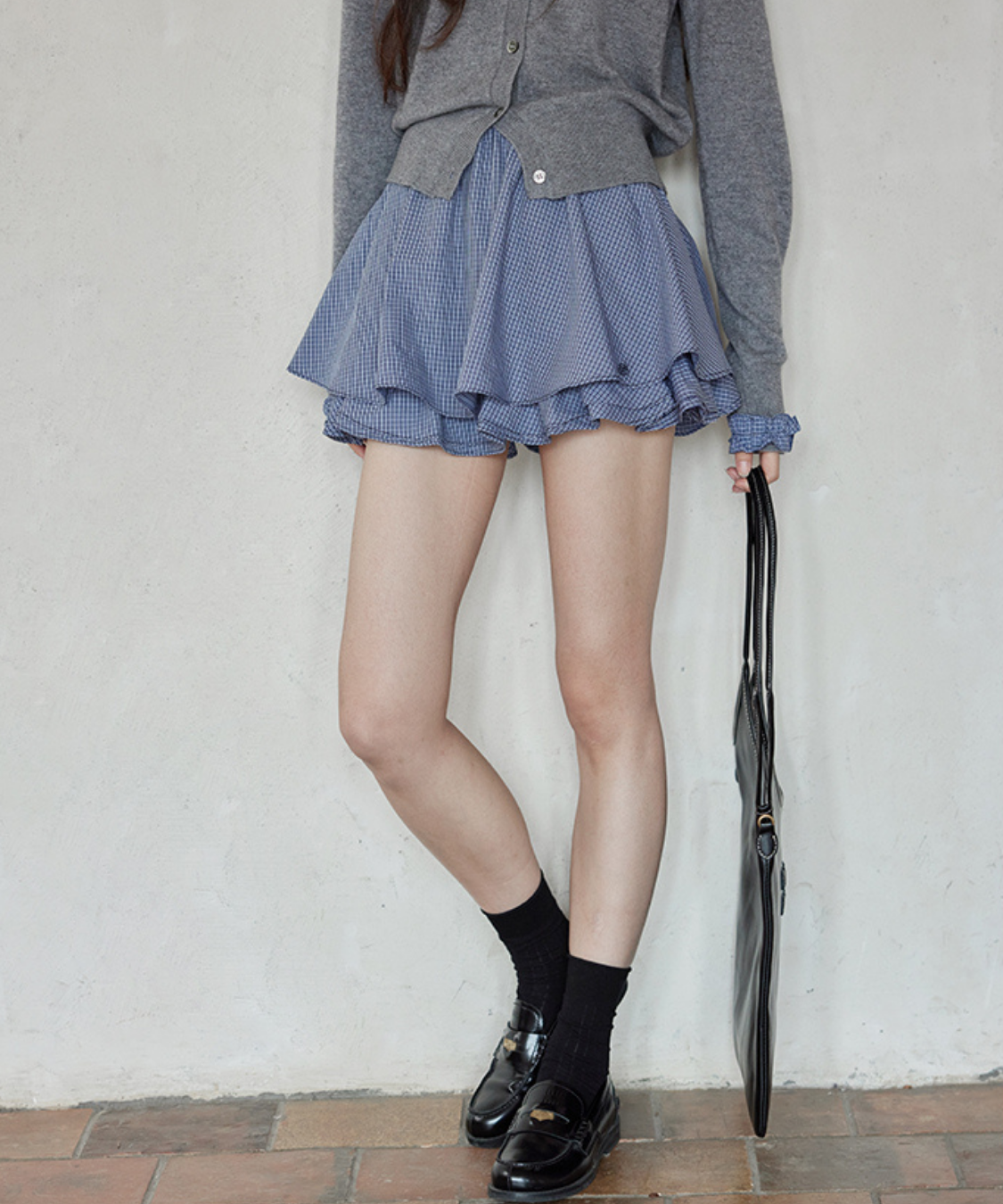 二段フリルがふんわりと広がるギンガムチェック柄スカートです。