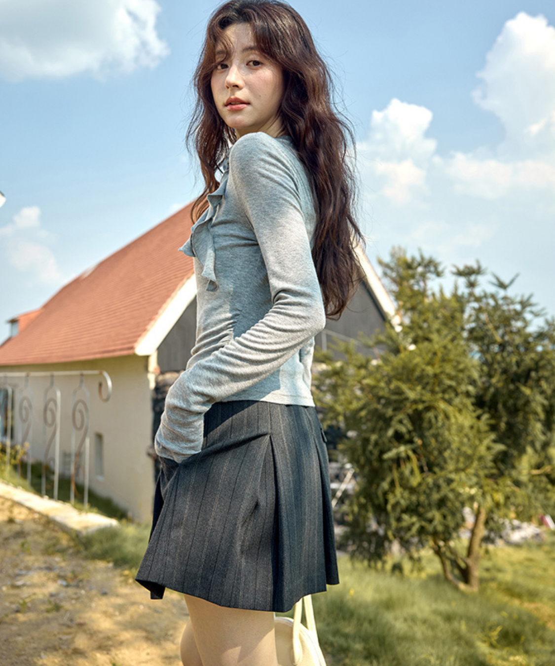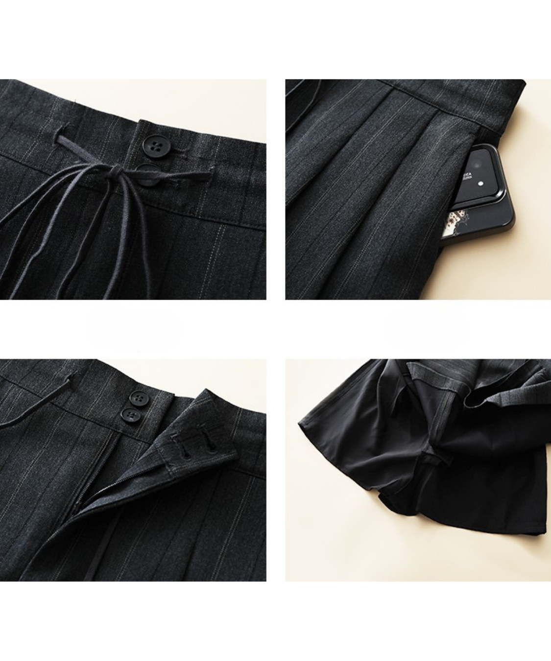 ピンストライプ柄が大人っぽい雰囲気を演出してくれるスカパンです。
