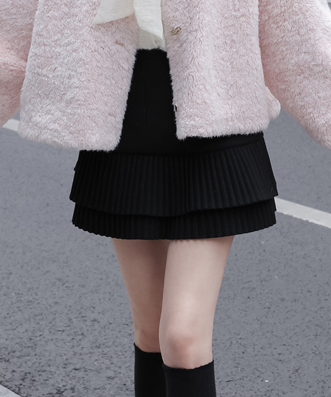 ティアードプリーツがふんわり揺れる、華やかなミニスカートです。