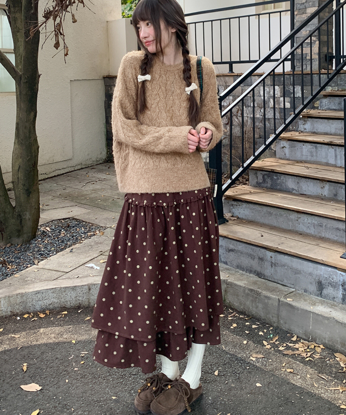 ニットやブラウスとの相性も抜群で、シーズンムードを高めてくれます◎