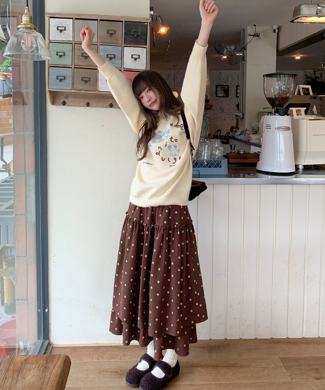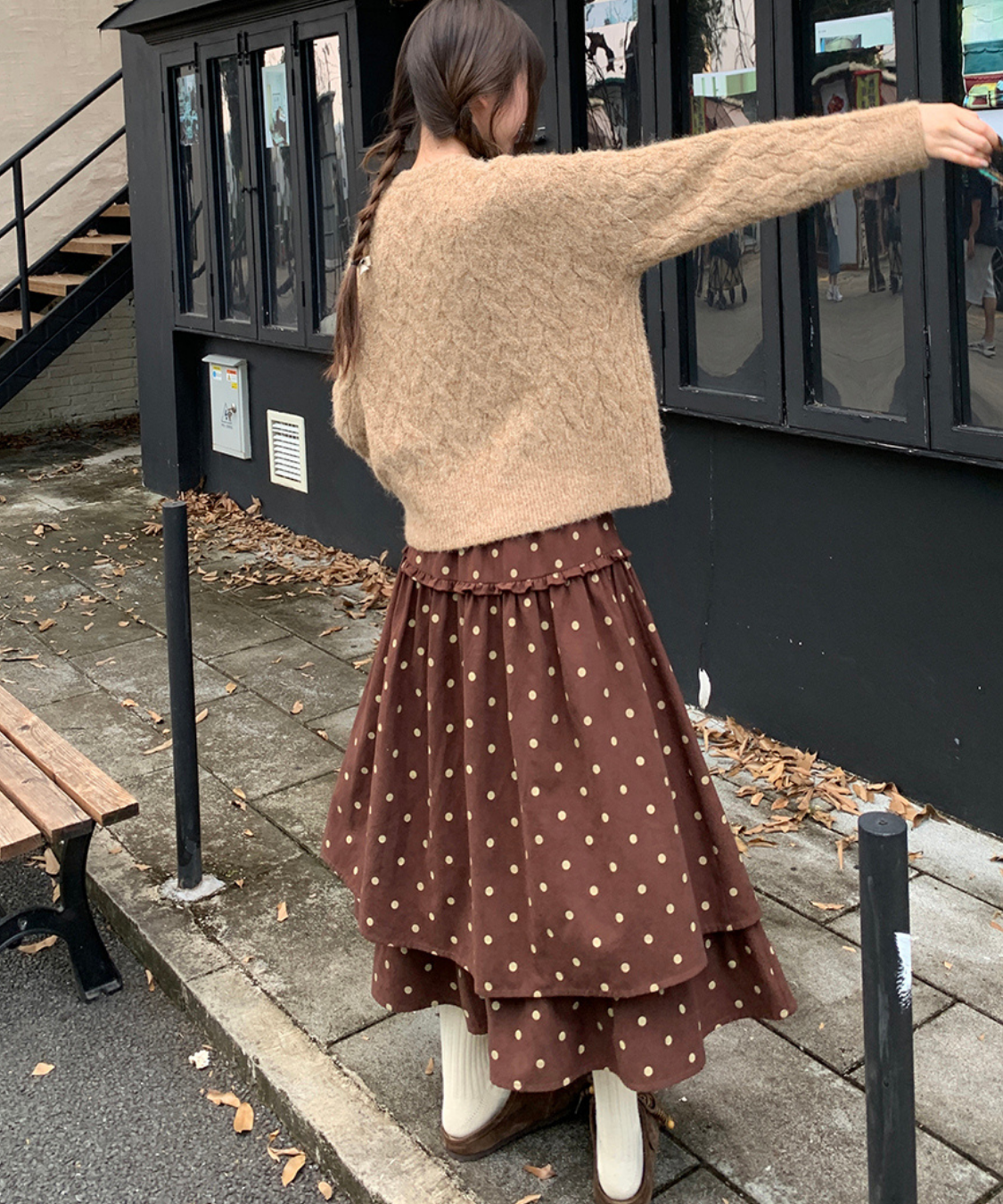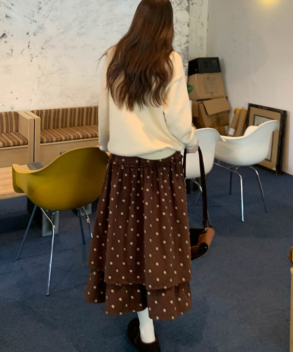 ボリューム感たっぷりのティアードデザインが魅力のドットスカートです。