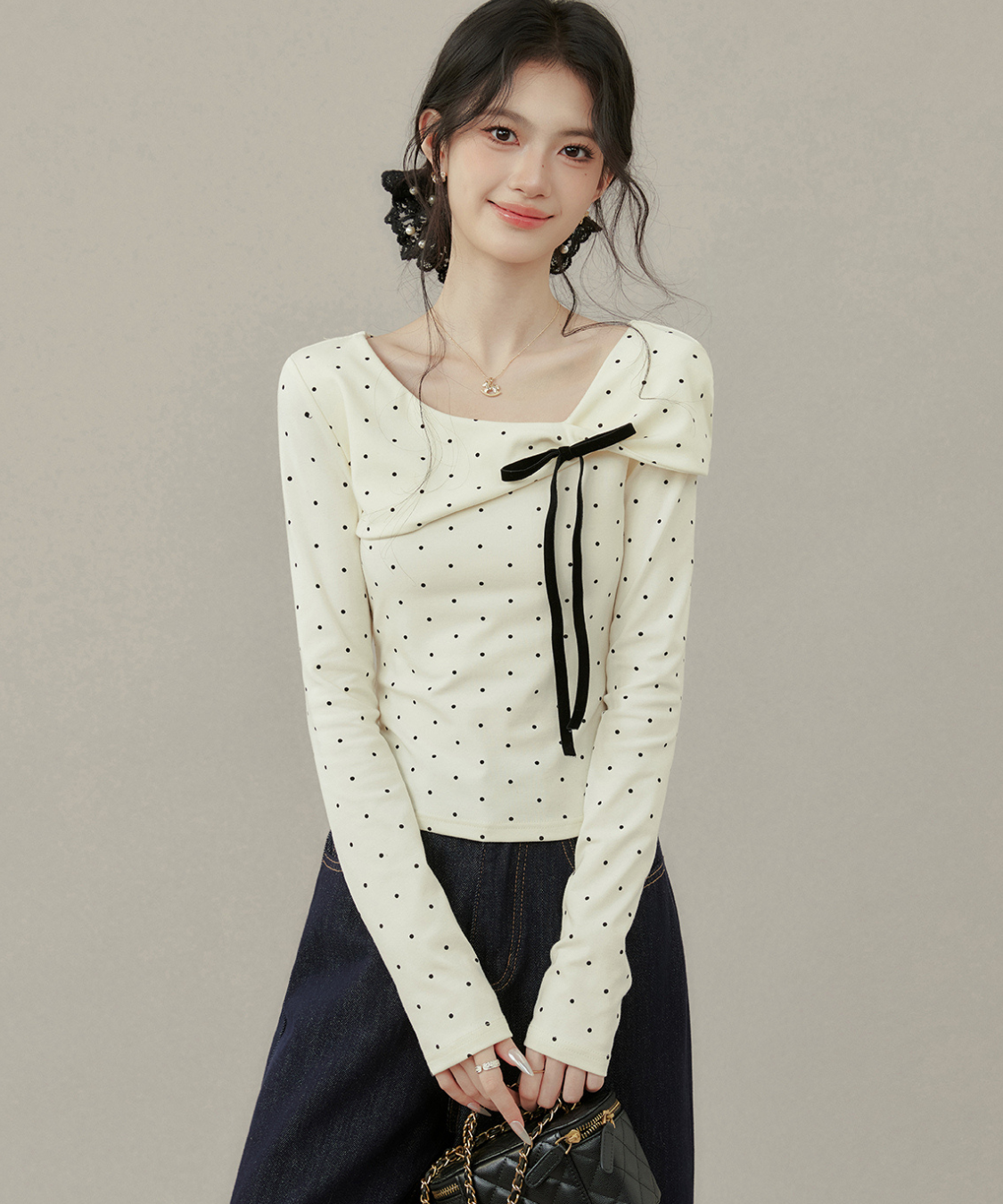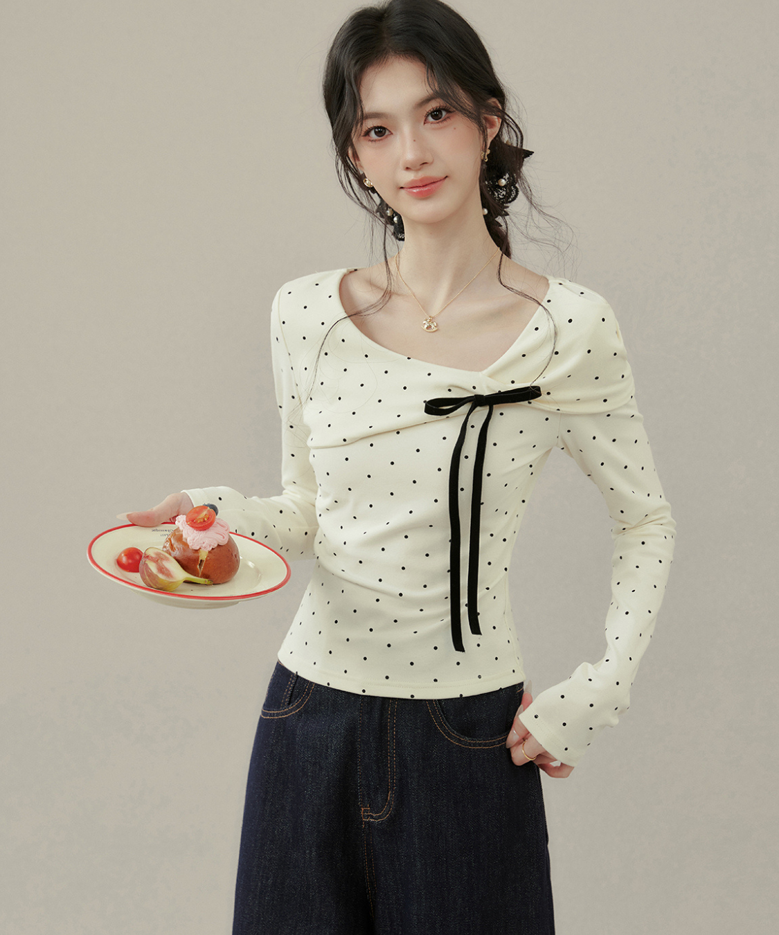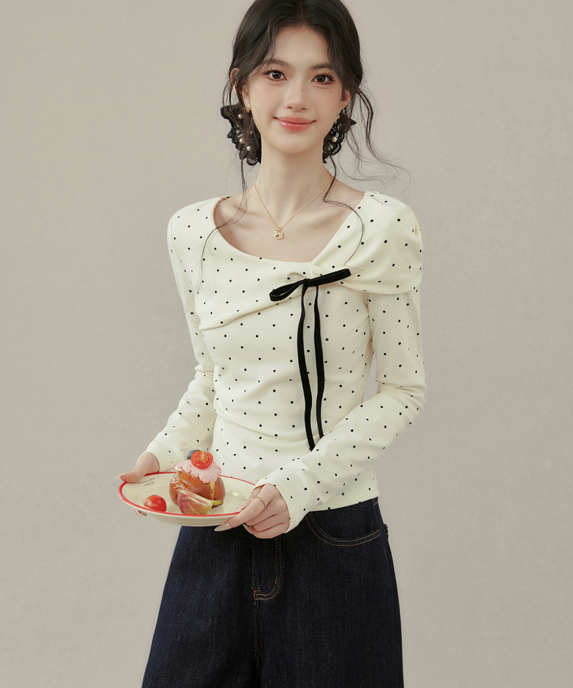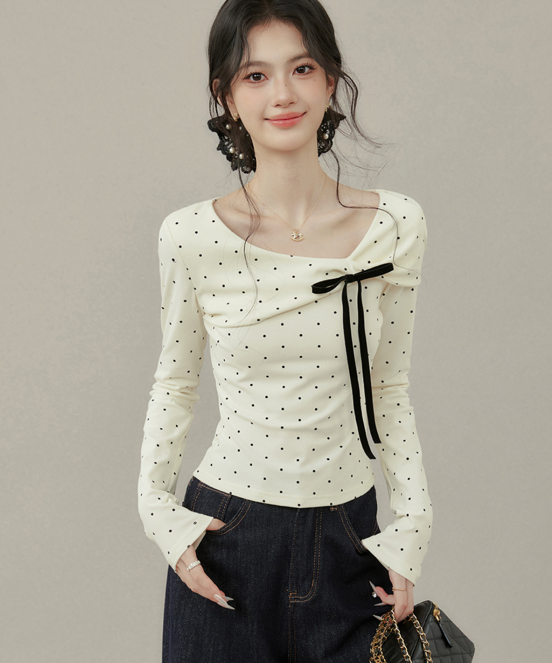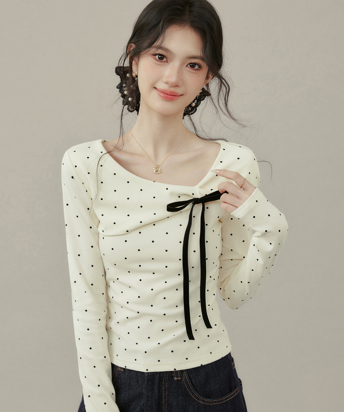 リボンとドットの組み合わせが最強に可愛い♡首元のアシメデザインで一気にこなれ感