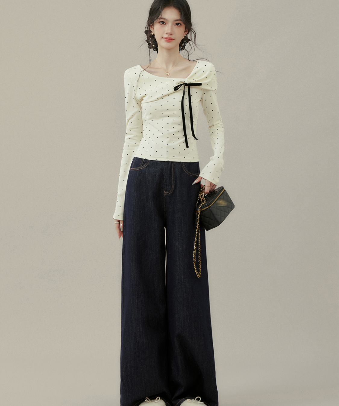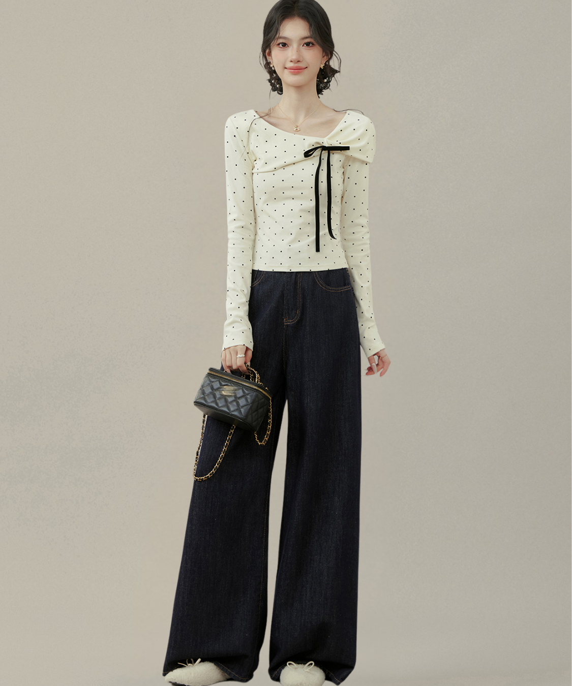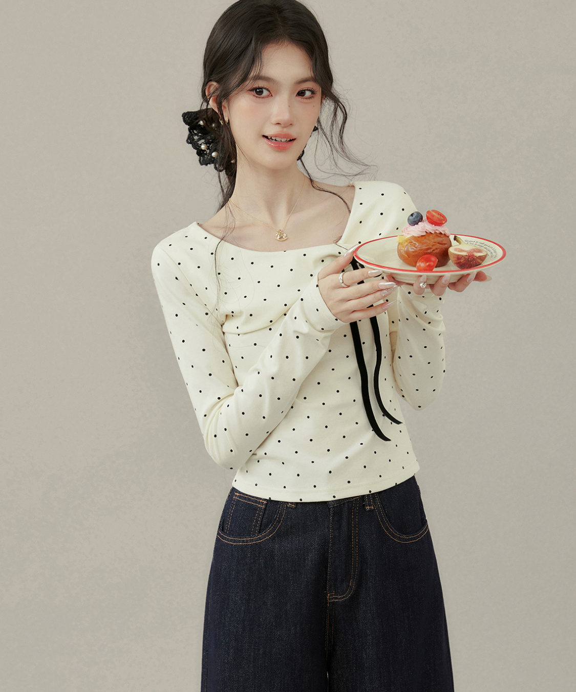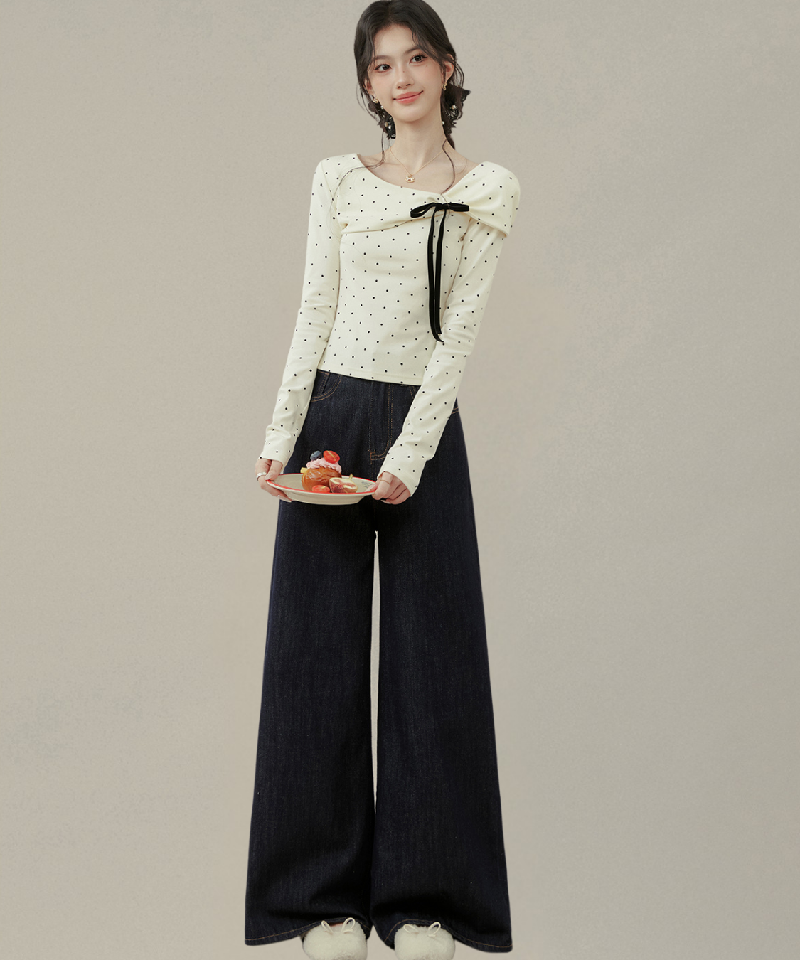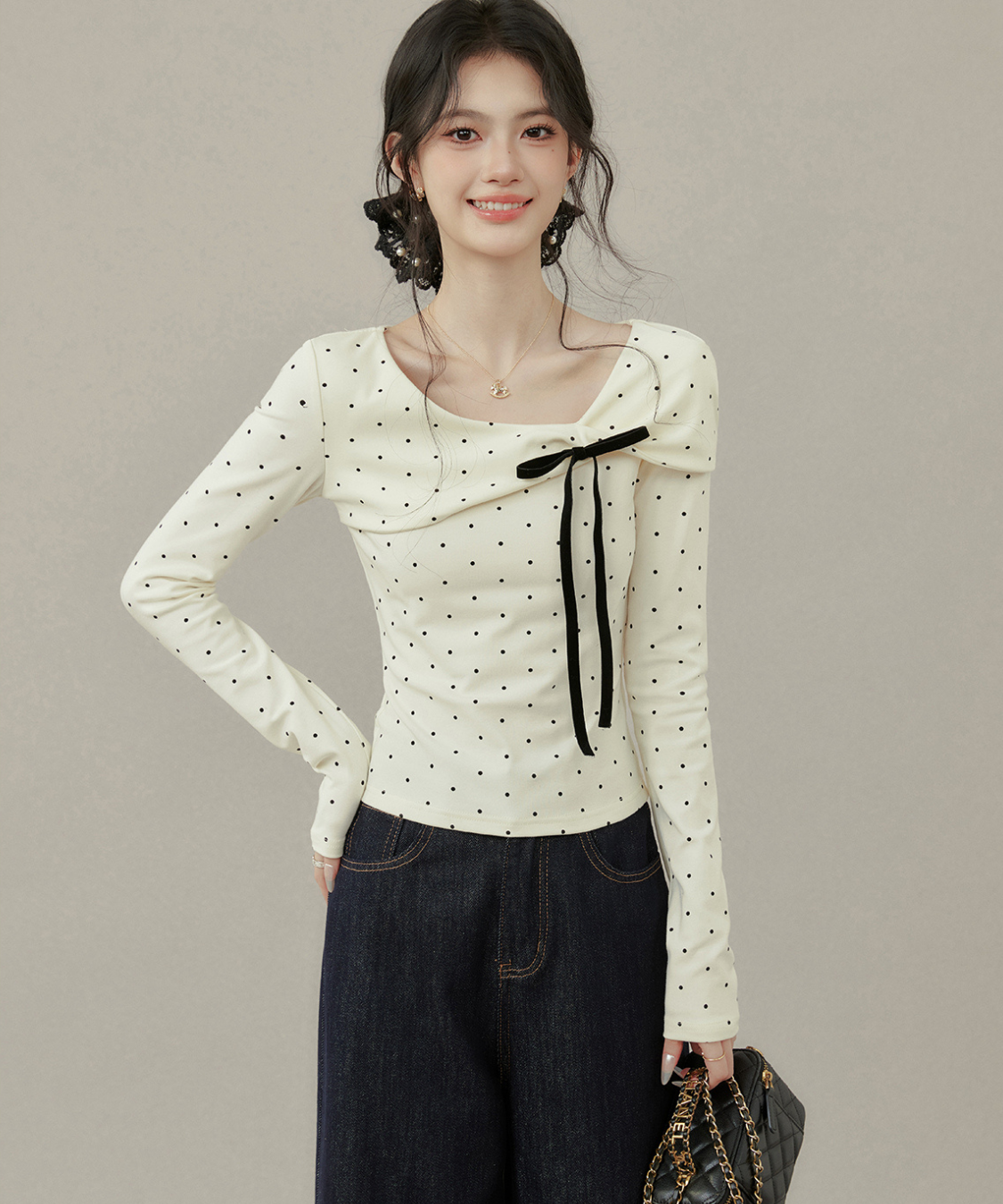 リボンとドットの組み合わせが最強に可愛い♡首元のアシメデザインで一気にこなれ感