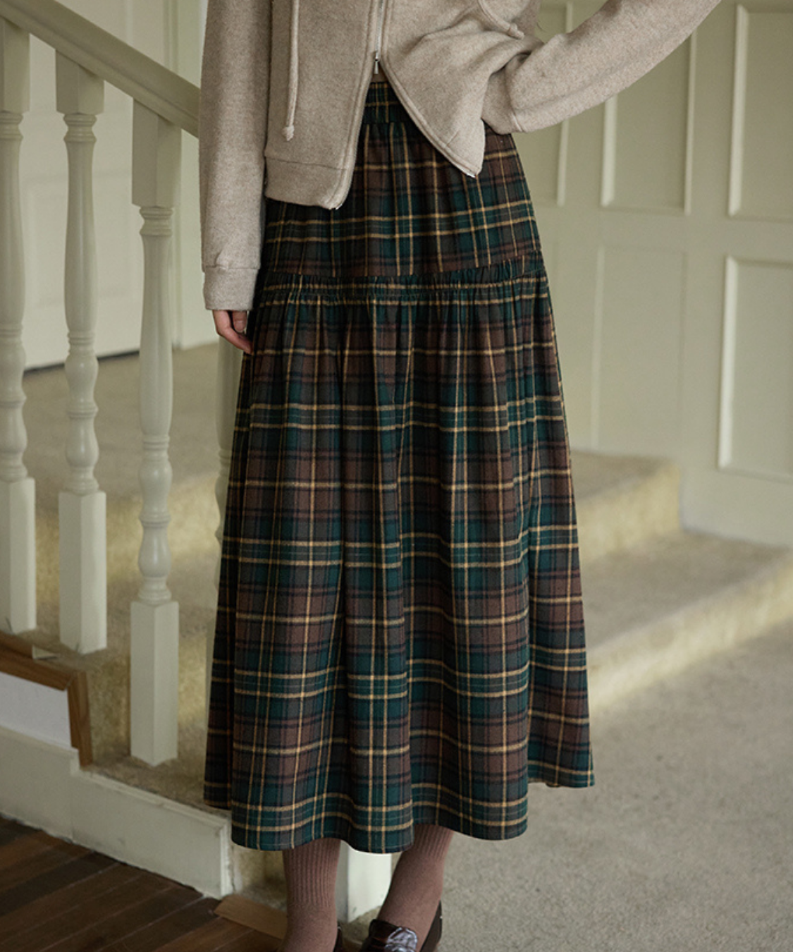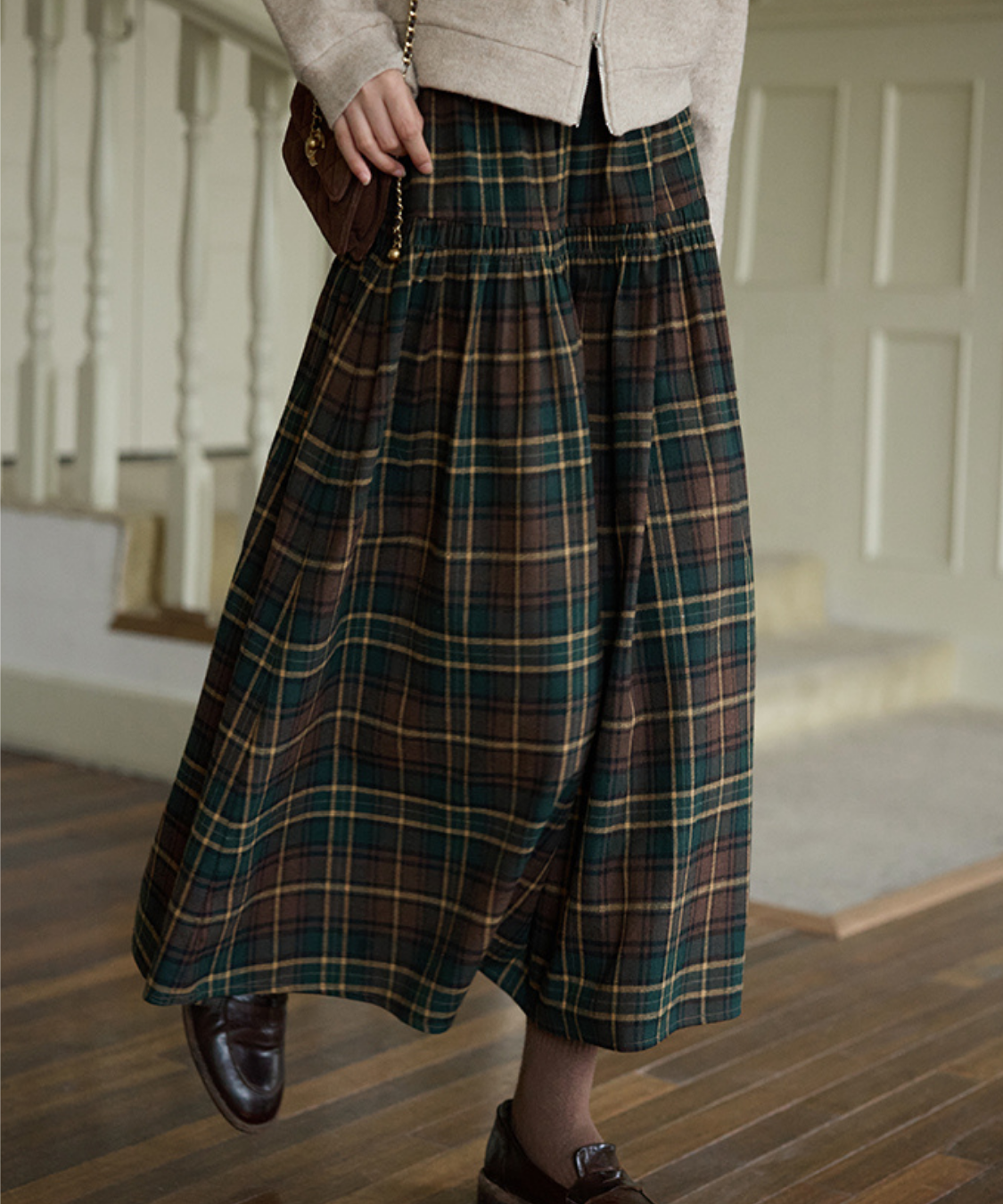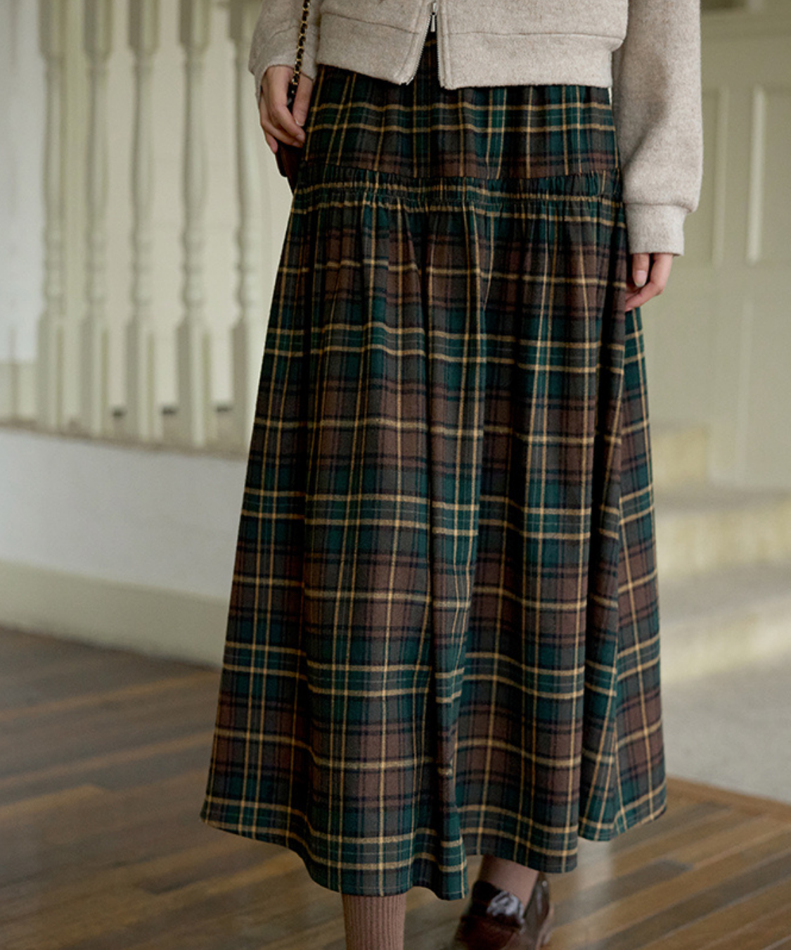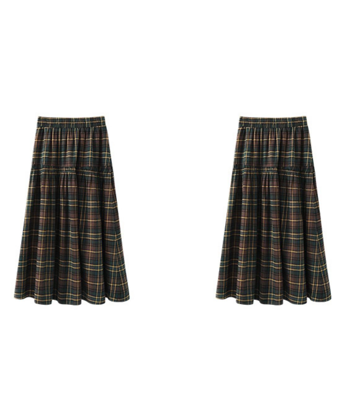 ウエスト切替チェックロングスカート