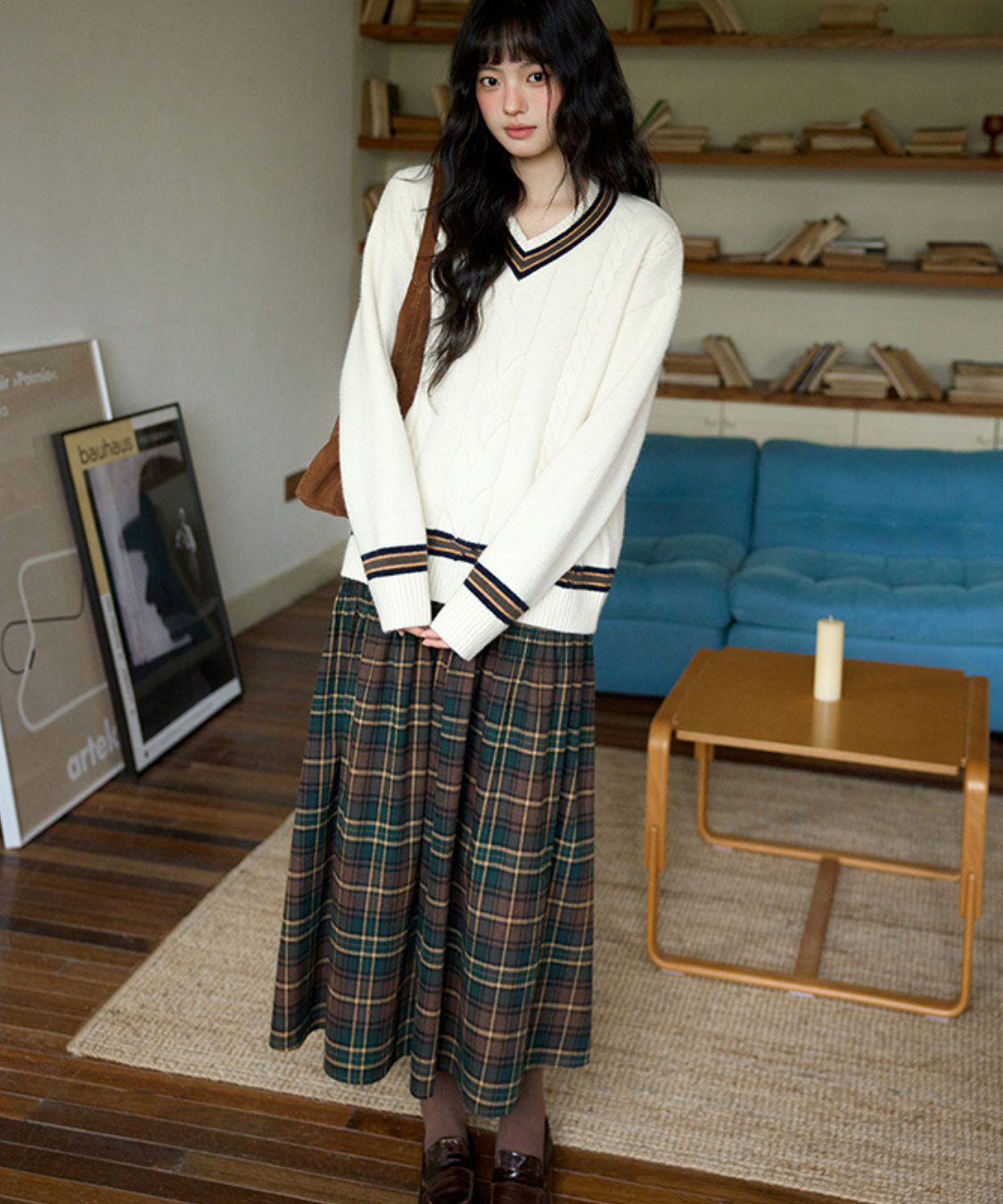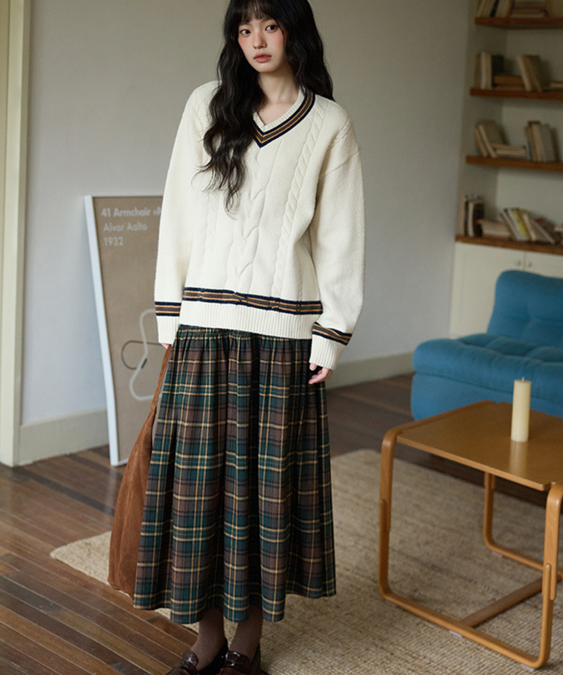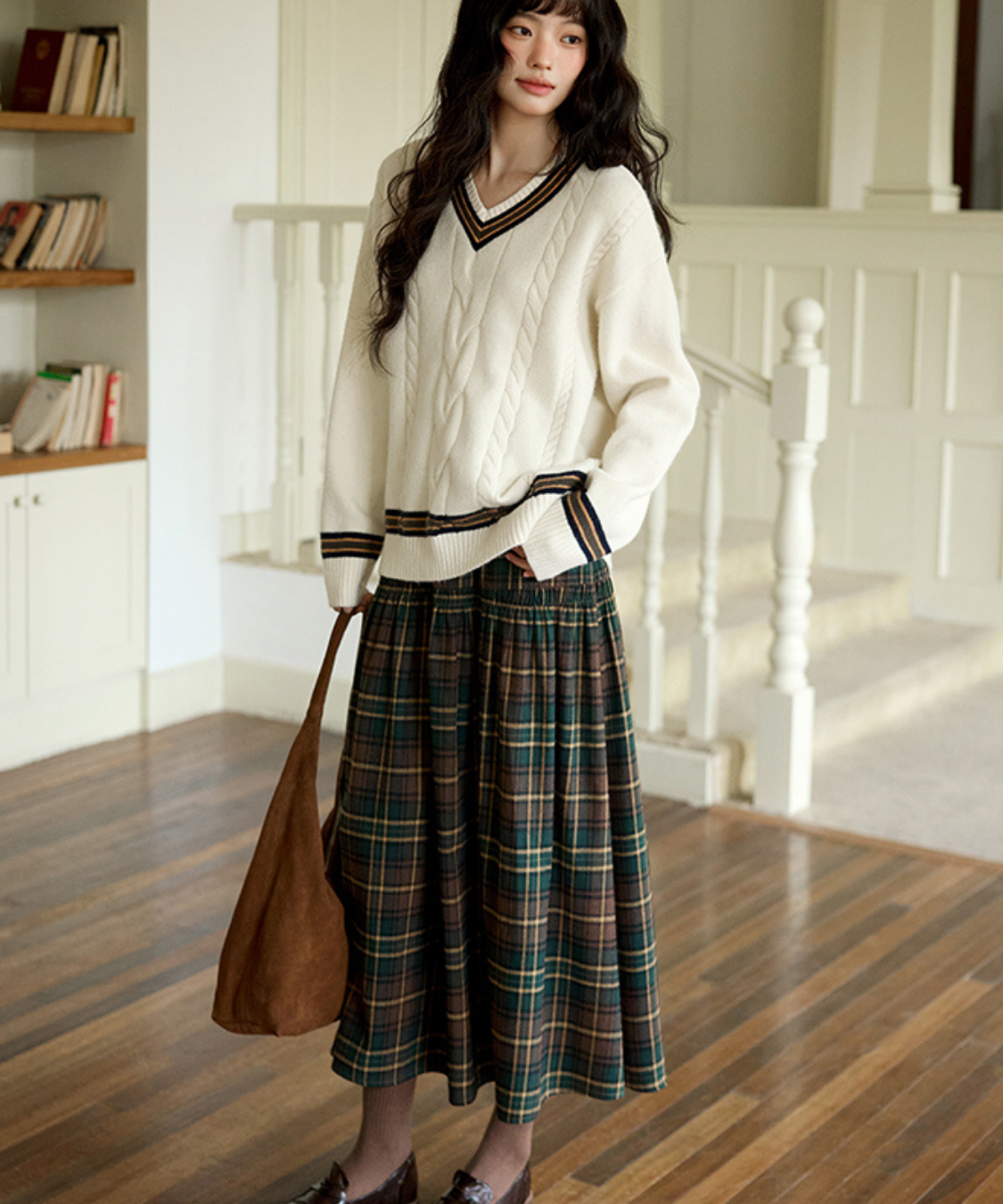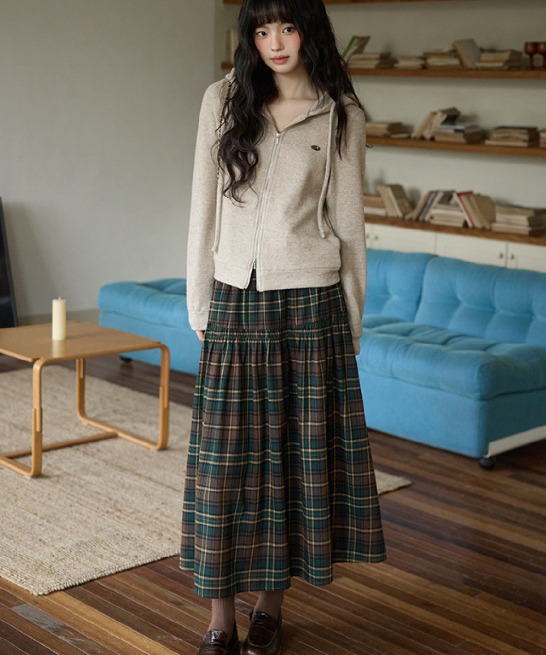 ウエスト切替チェックロングスカート