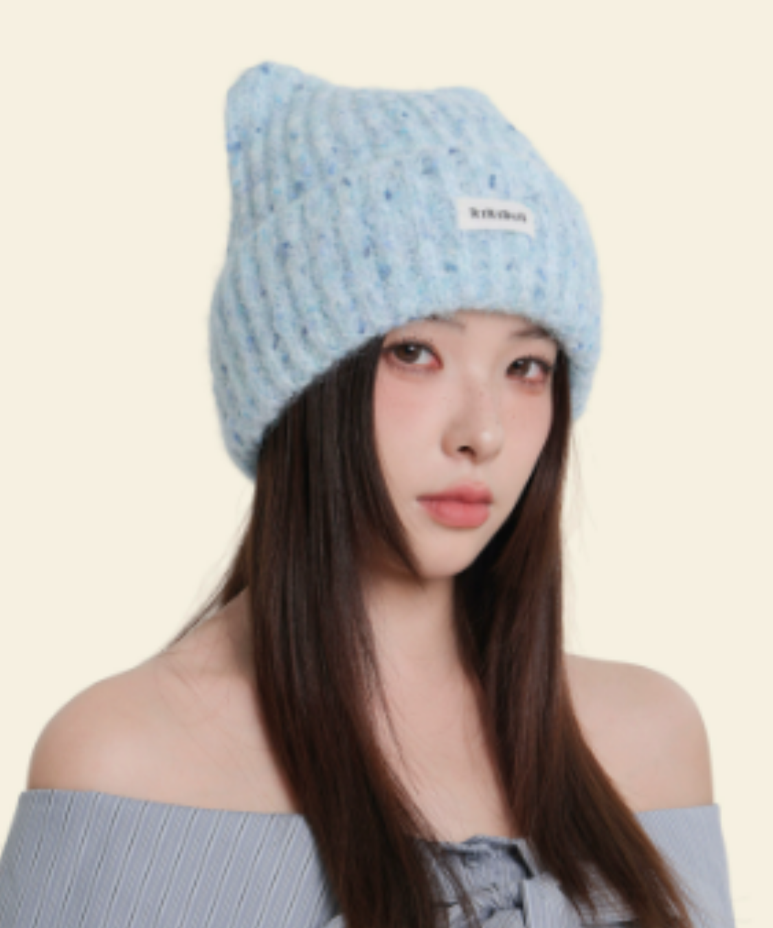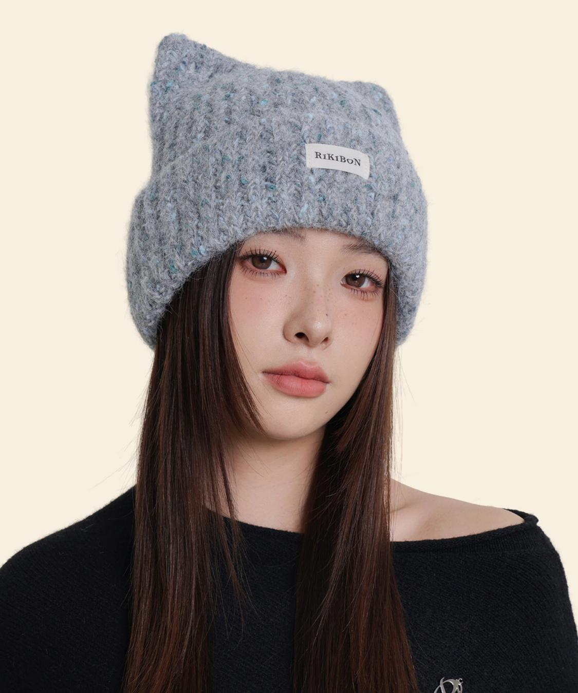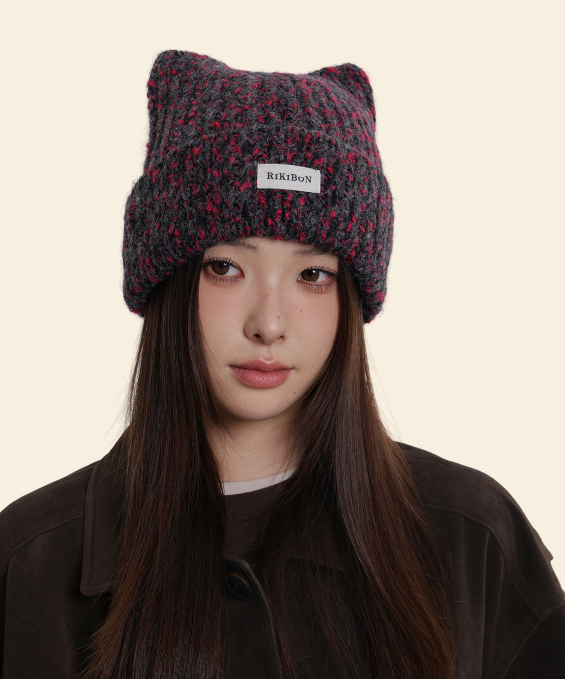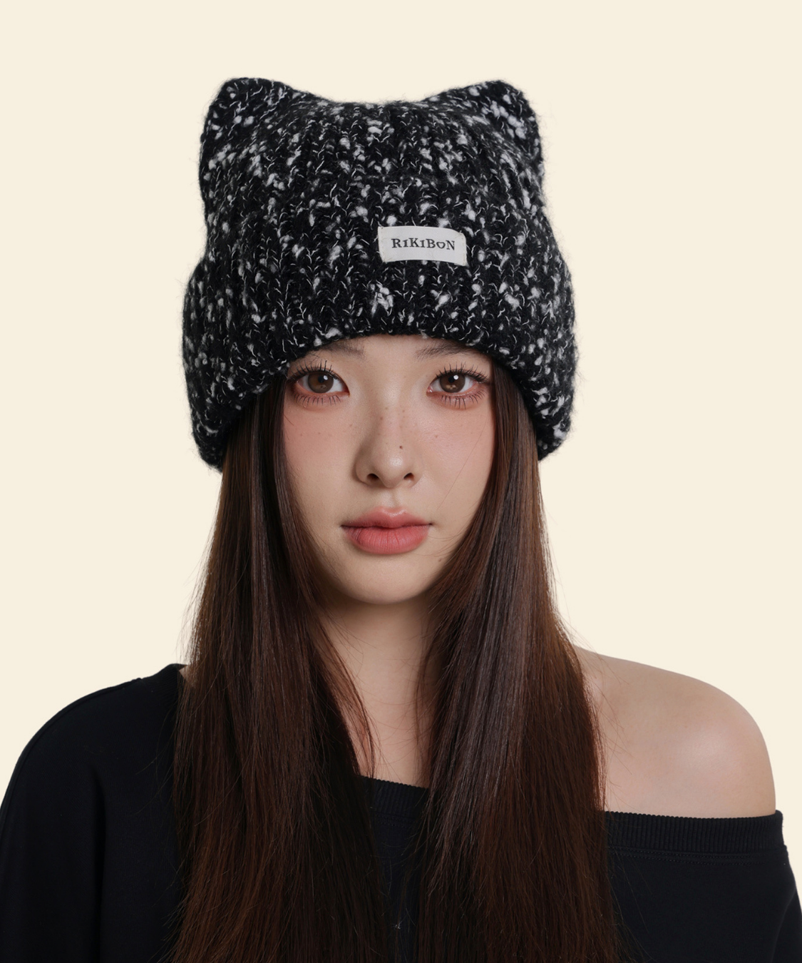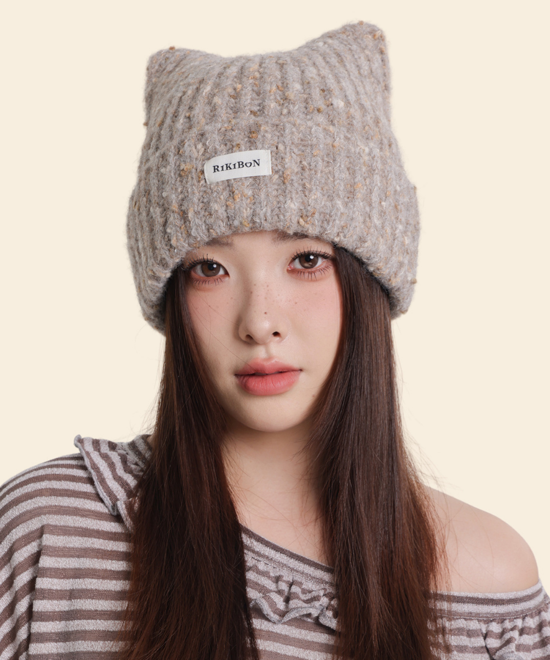 猫耳のようなシルエットが愛らしい、遊び心たっぷりのニットビーニーです。