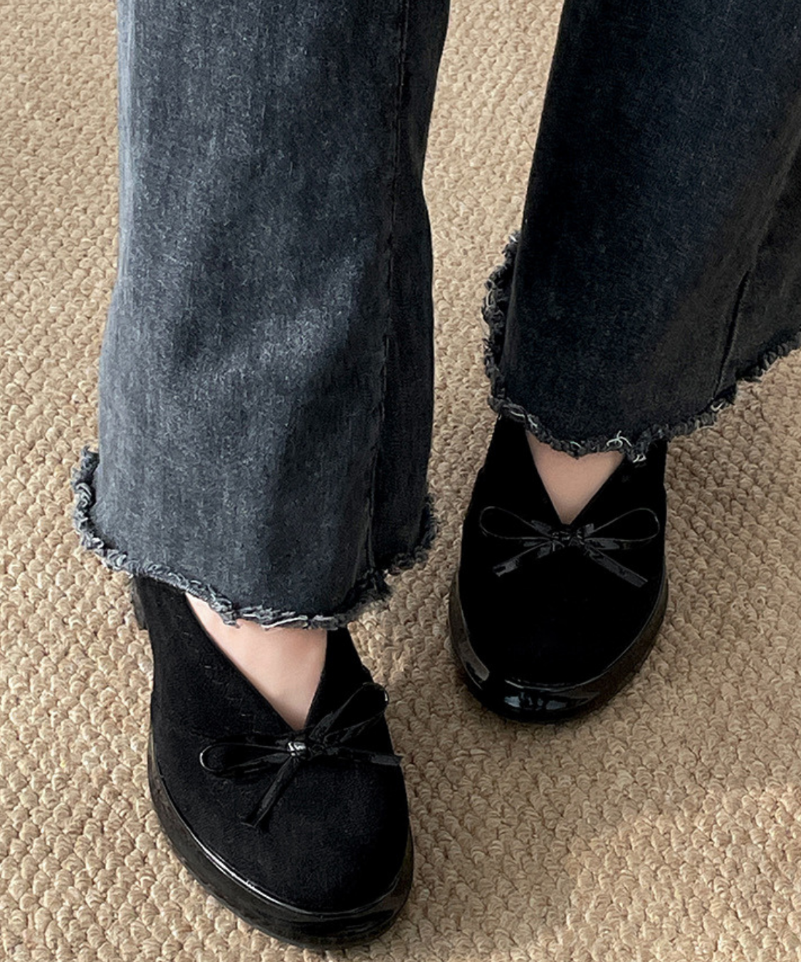 ラウンドトゥの柔らかなフォルムにリボンが愛らしいアクセントになります♡