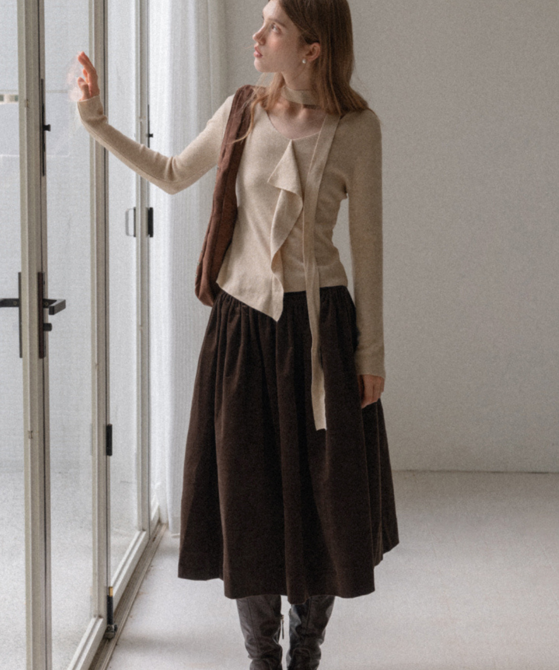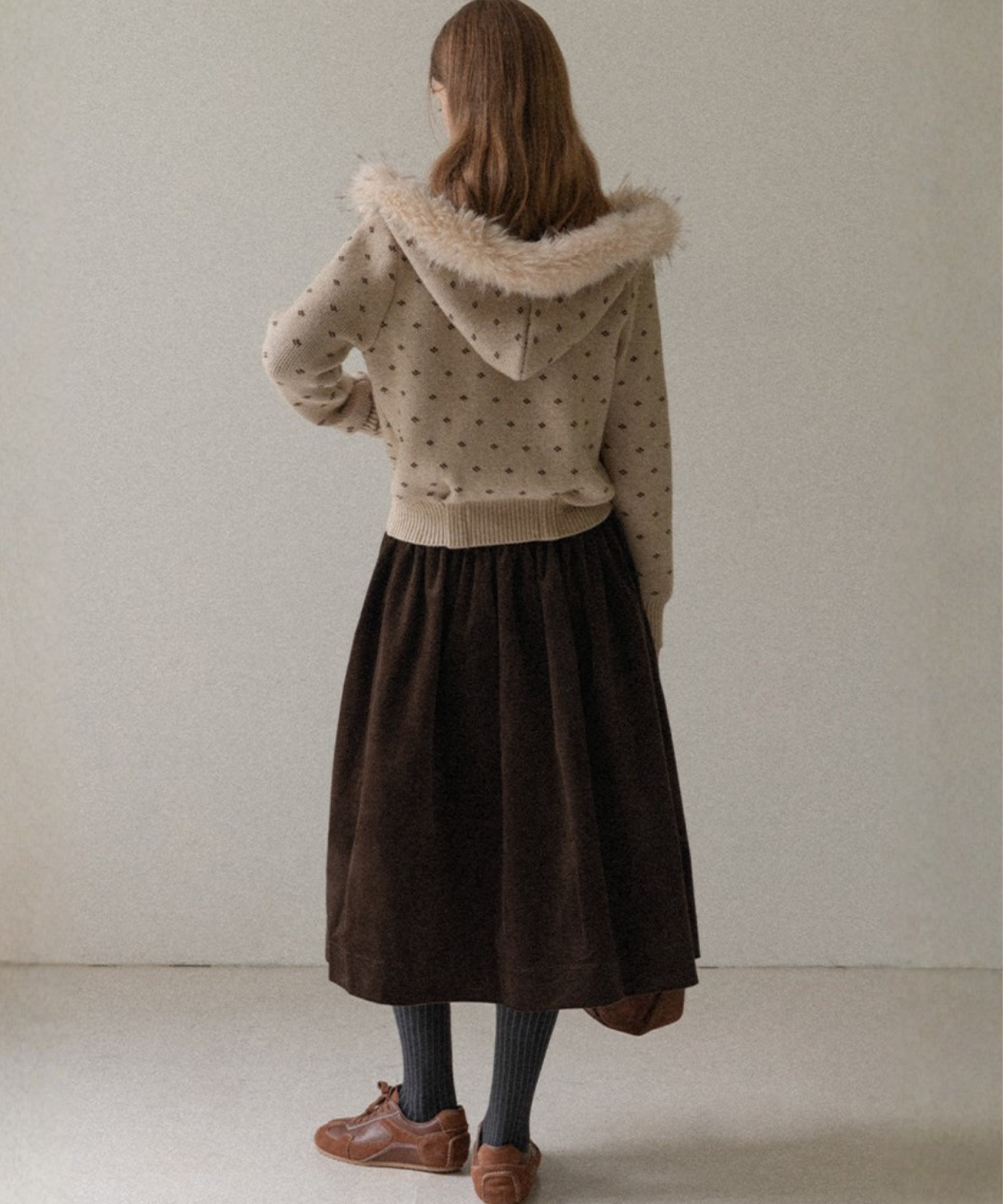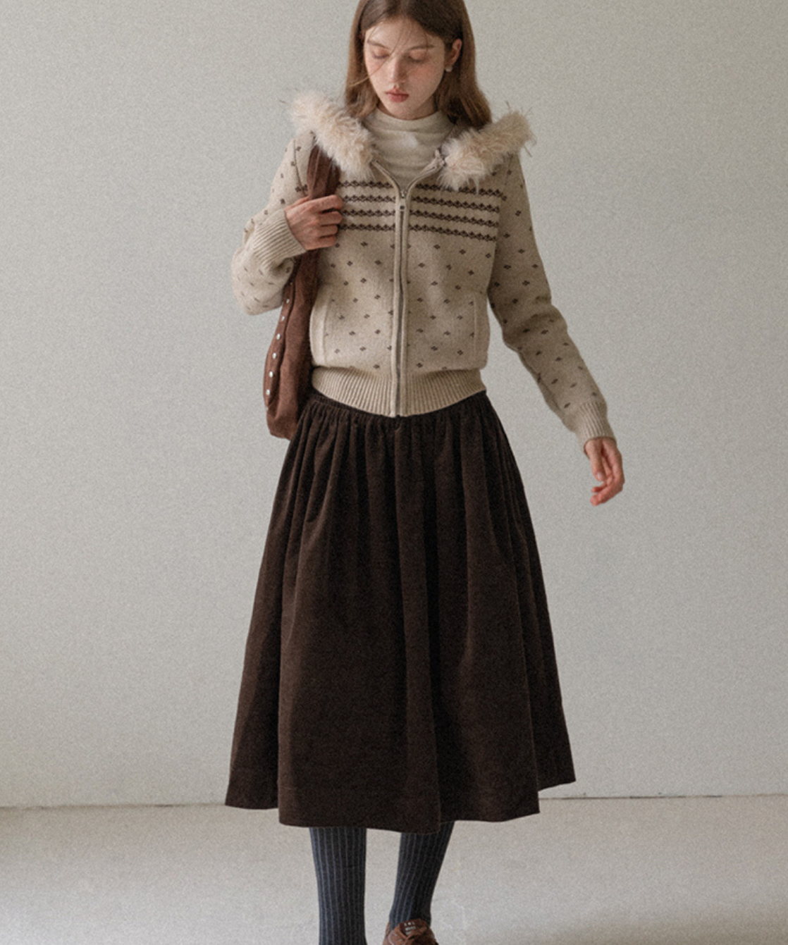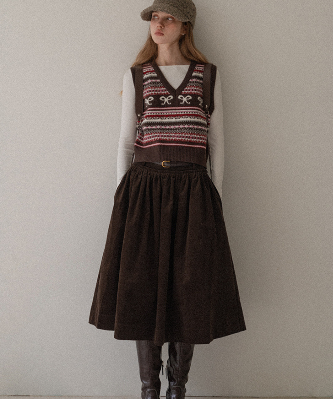 ふんわり広がるギャザーシルエットが魅力の、コーデュロイ素材のスカートです。