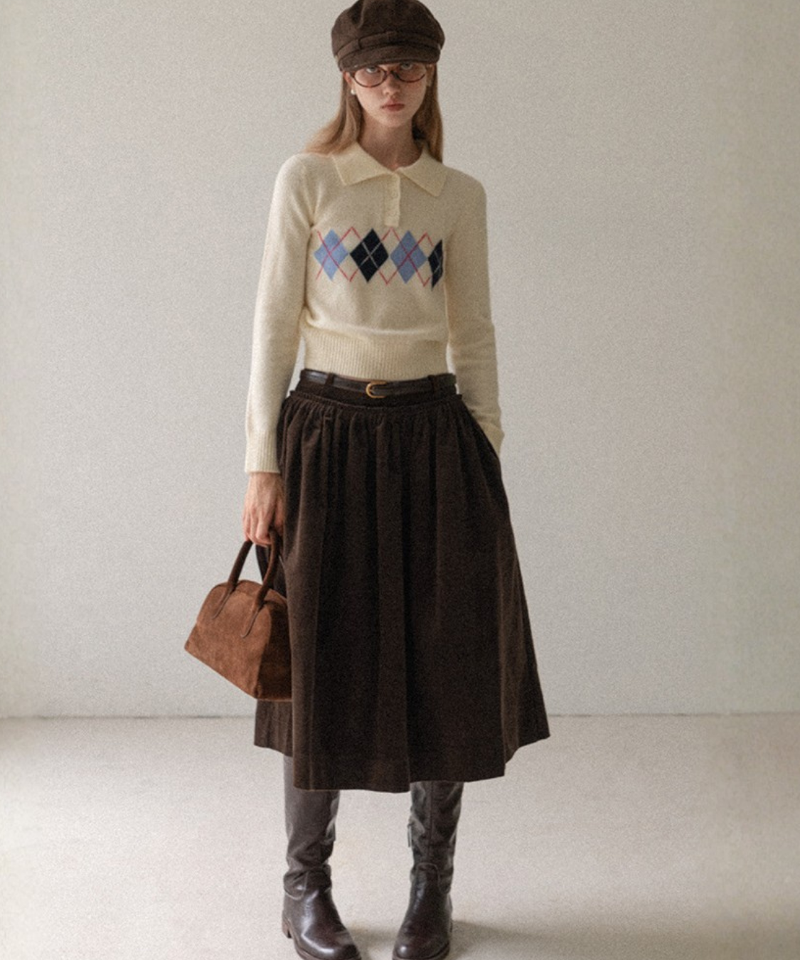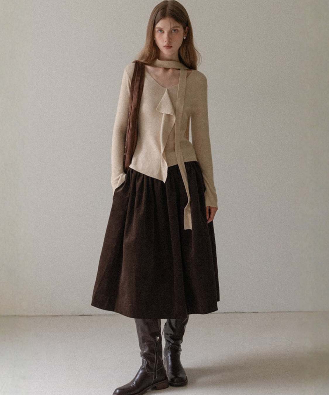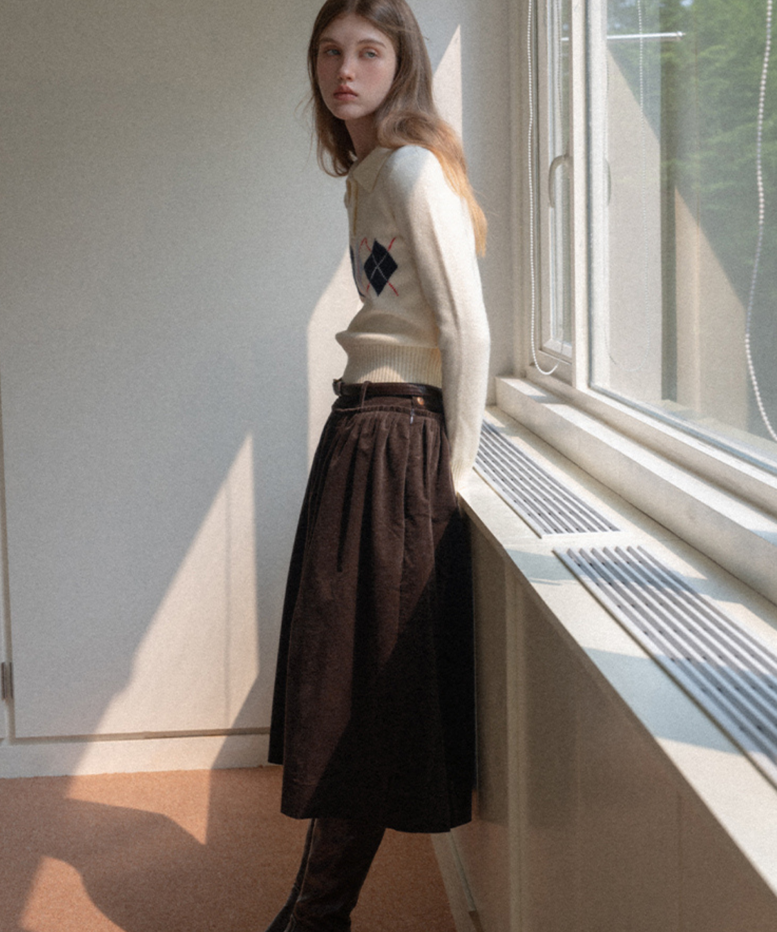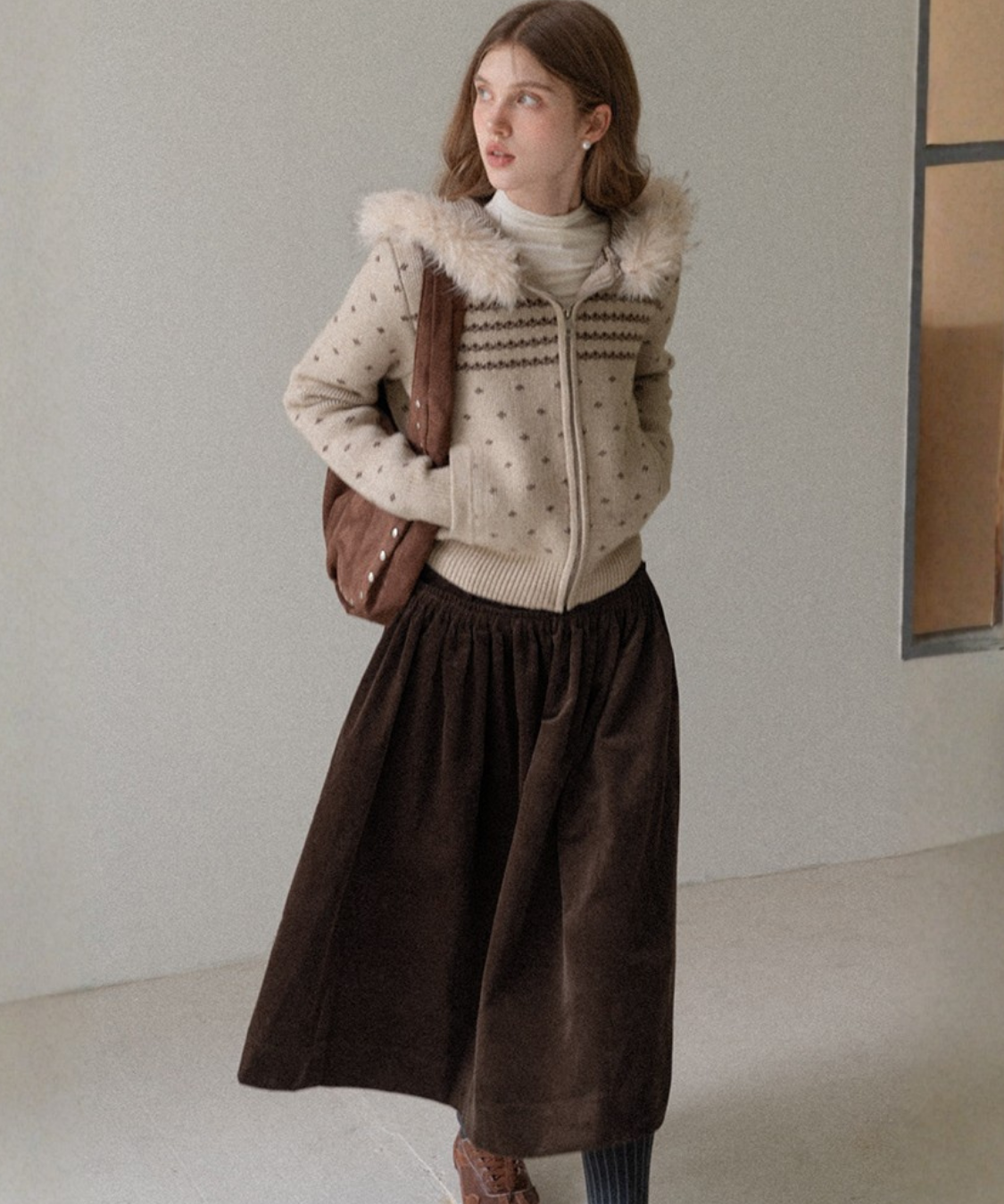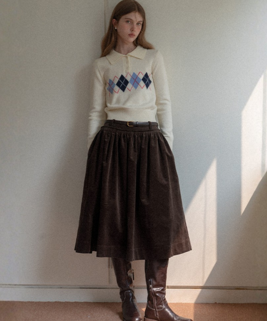 ふんわり広がるギャザーシルエットが魅力の、コーデュロイ素材のスカートです。