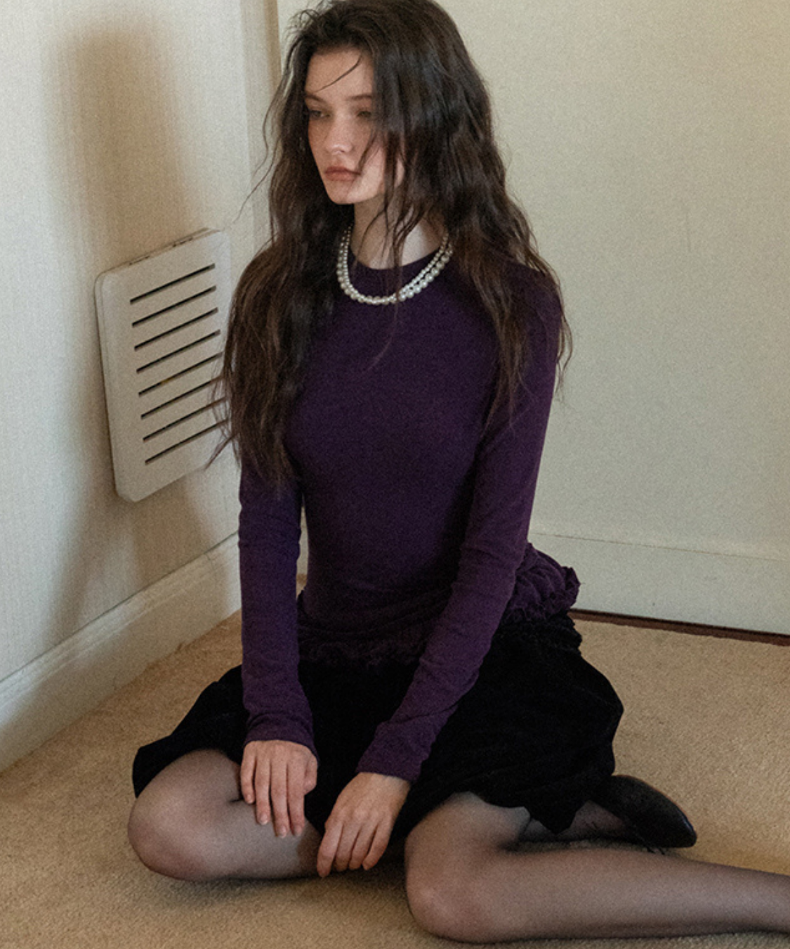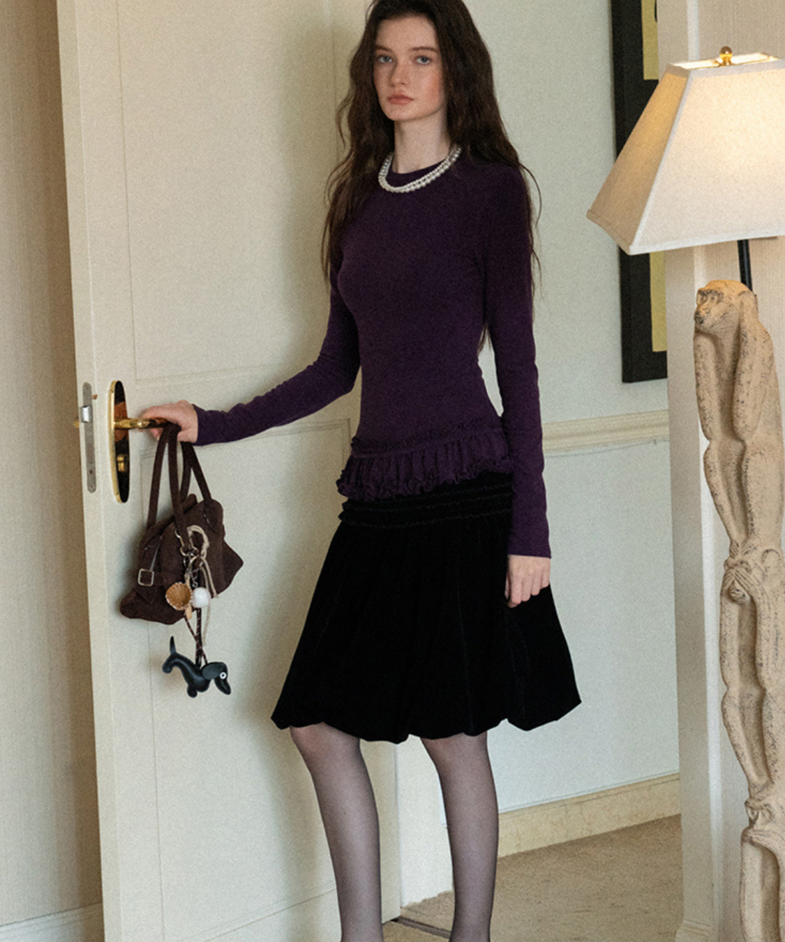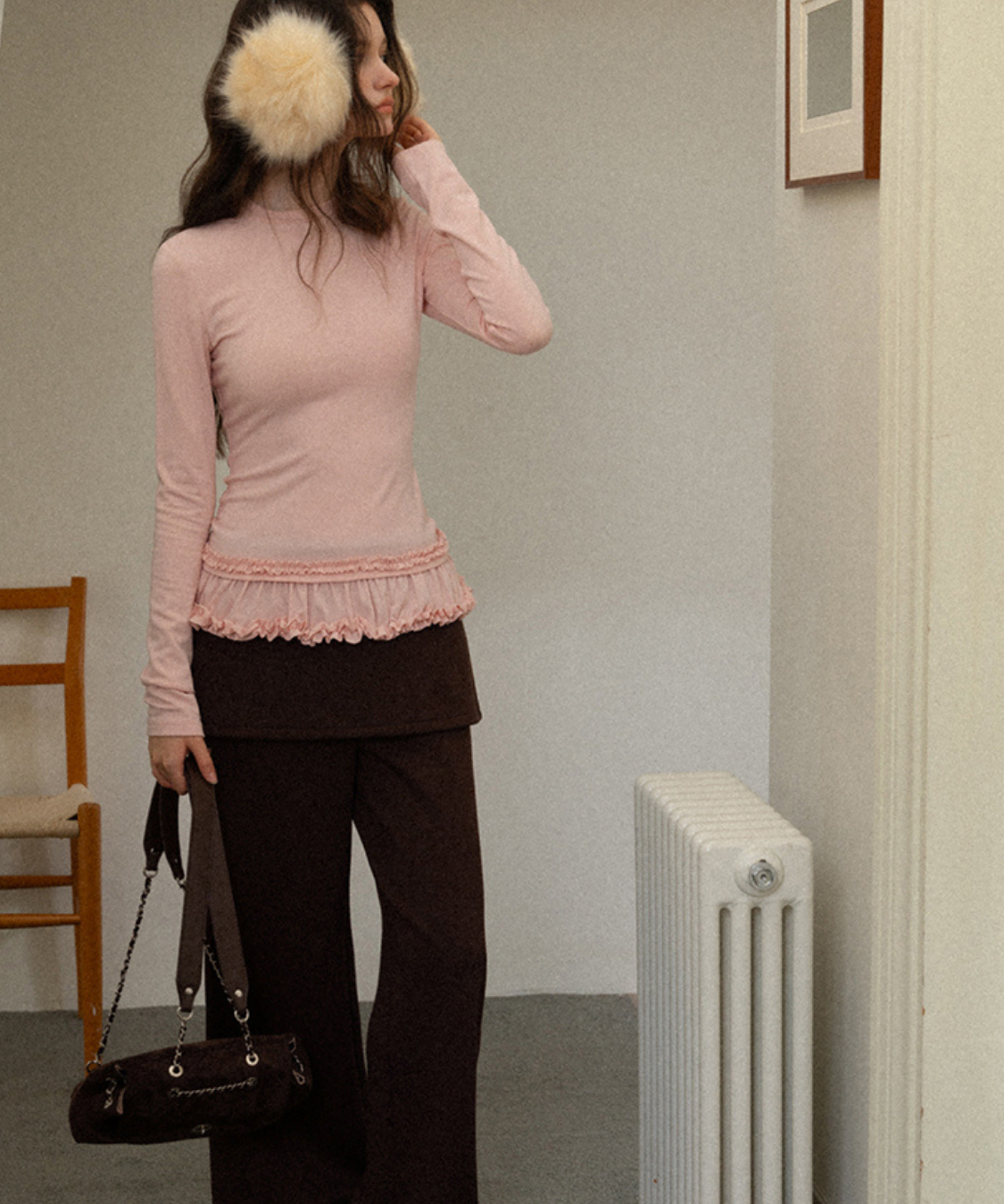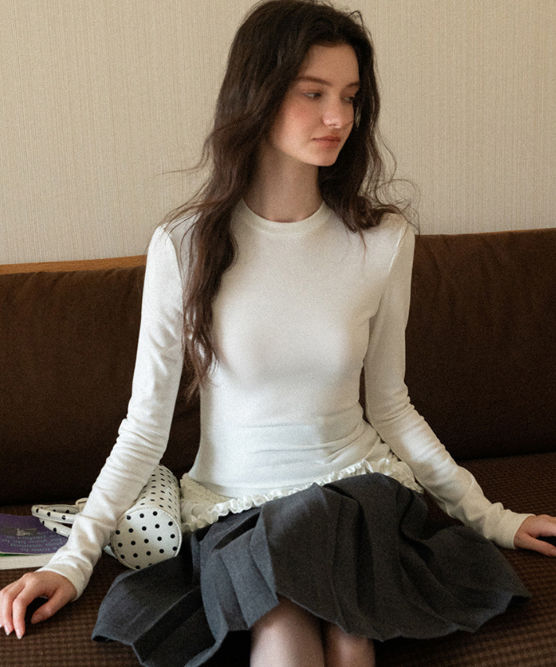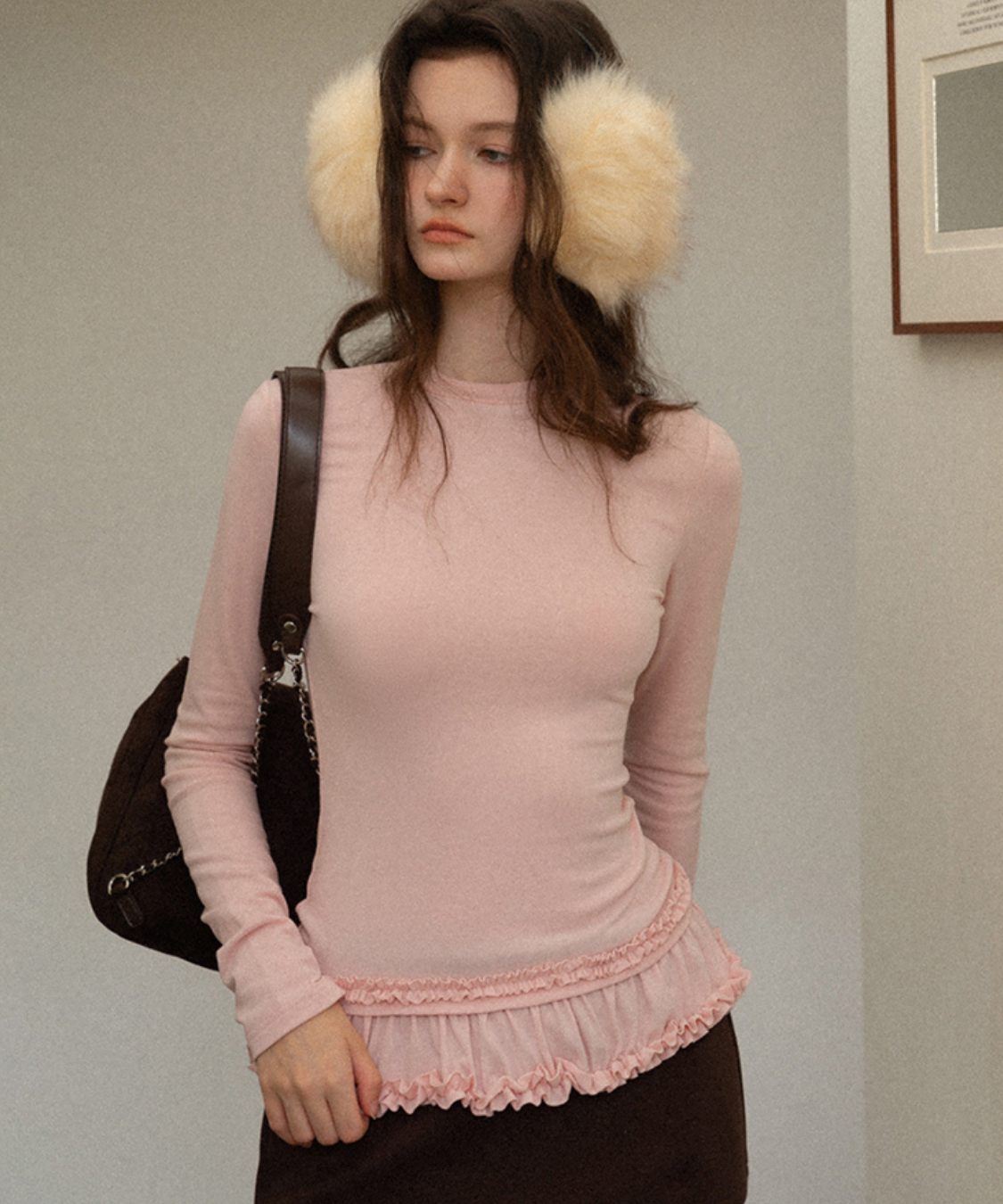 裾のダブルフリルが目を引く、フェミニンムードたっぷりのカットソーです。