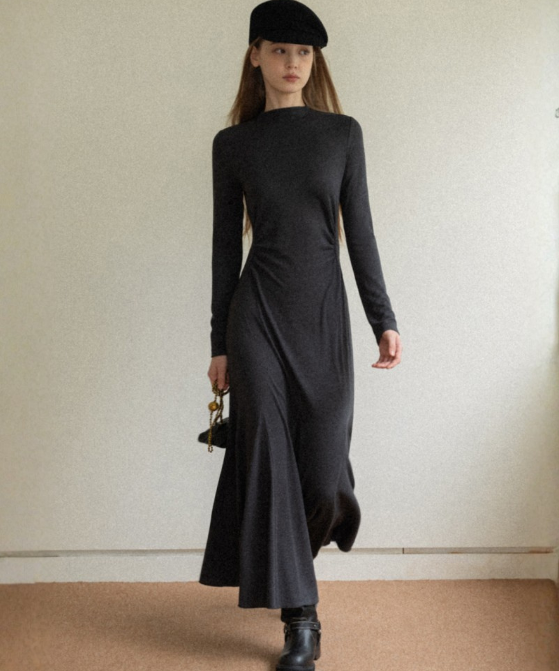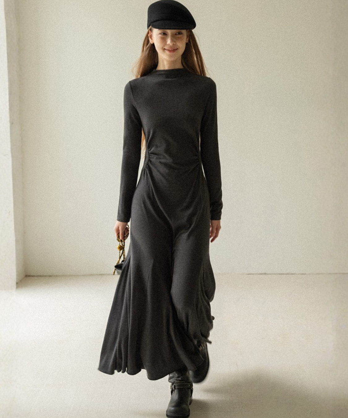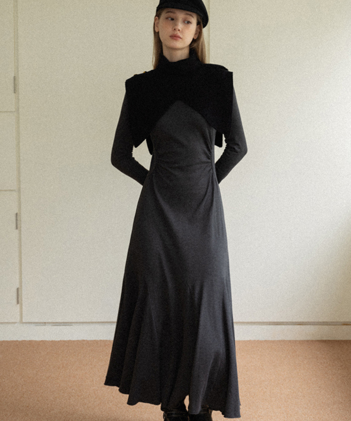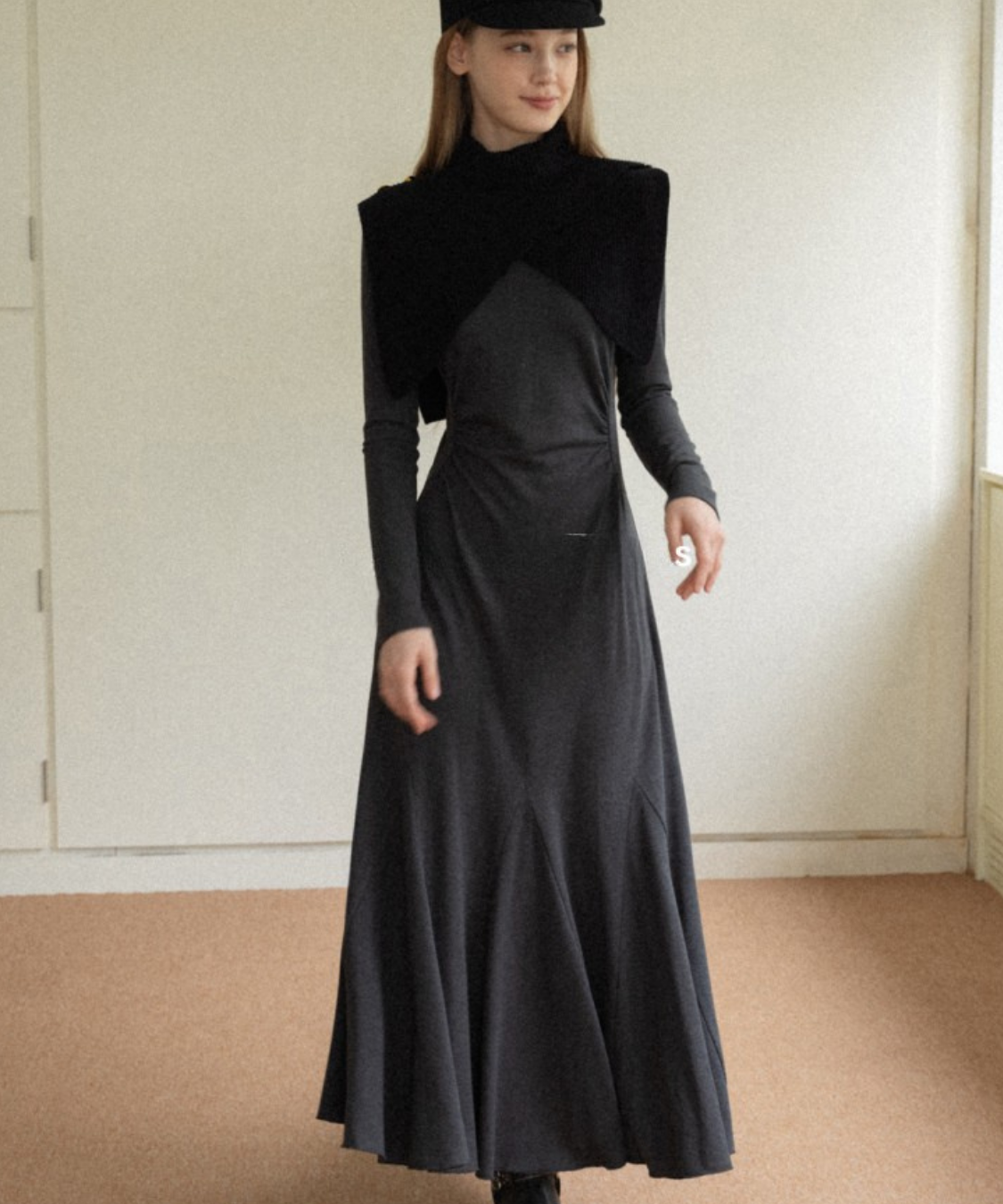 ウエストのドレープが立体感を生み、女性らしいくびれを自然に演出してくれます♡
