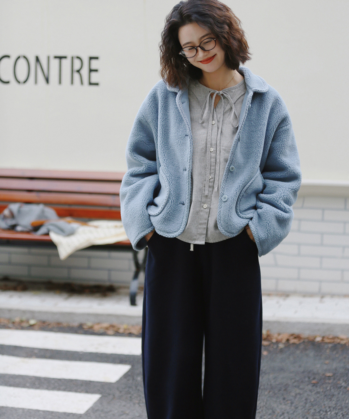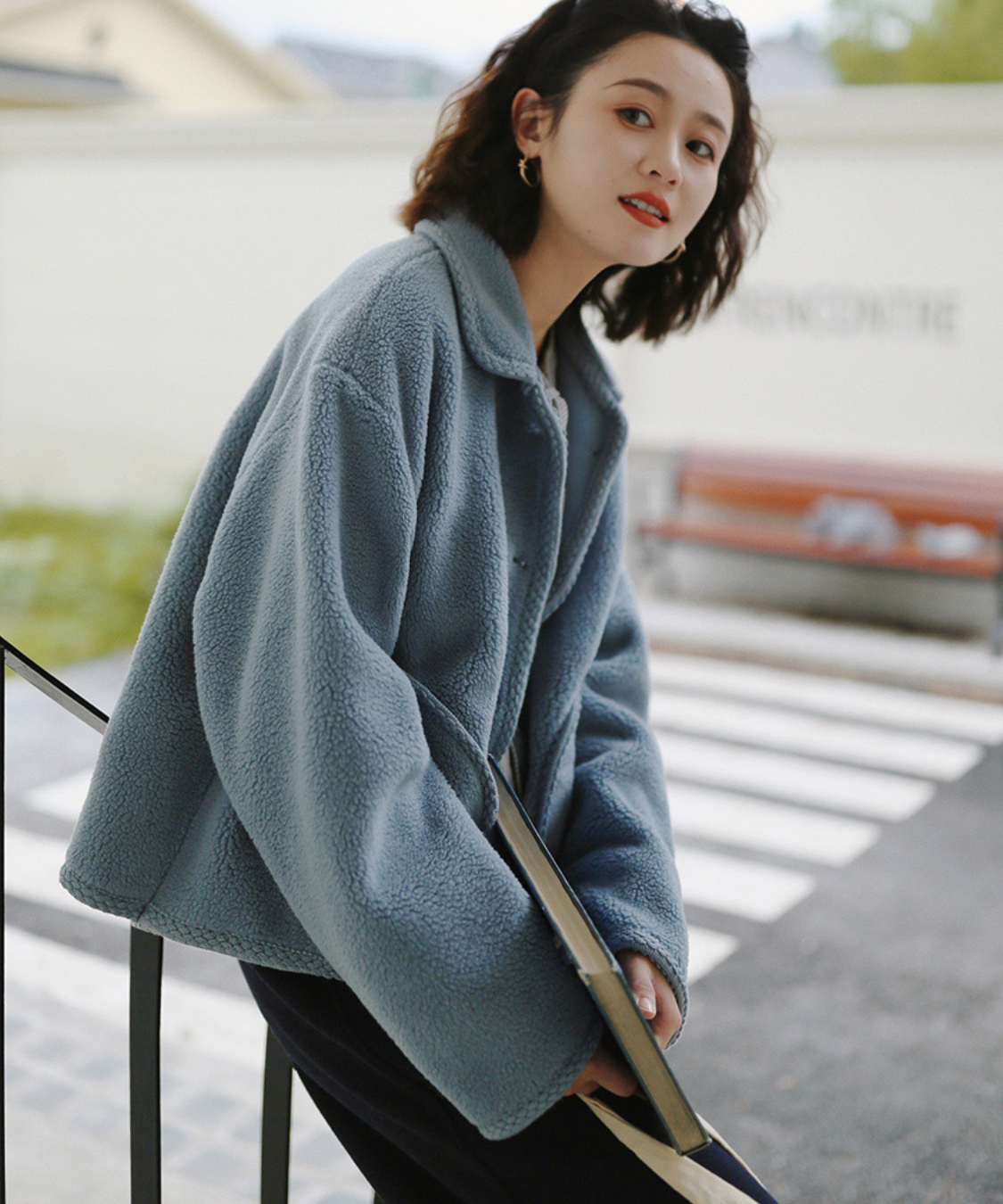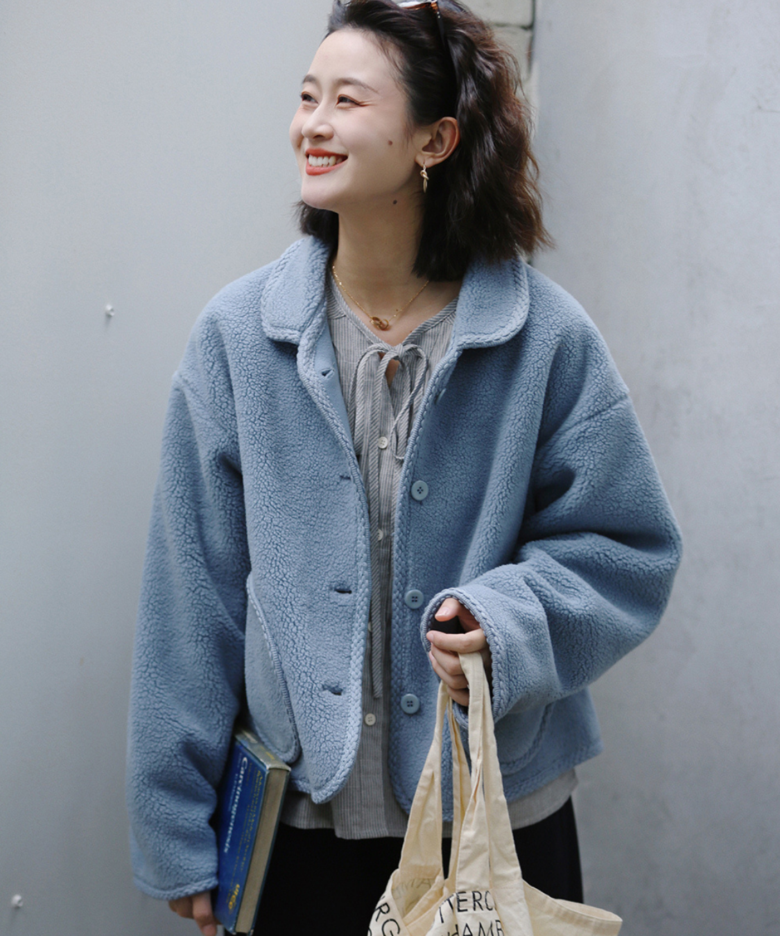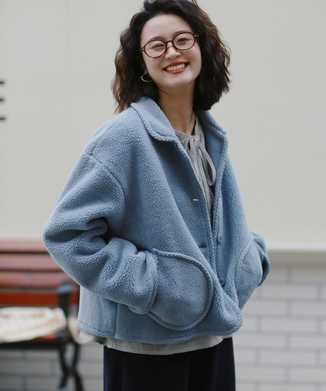 もこもことしたボア素材がシーズンムードたっぷりのショートジャケットです。