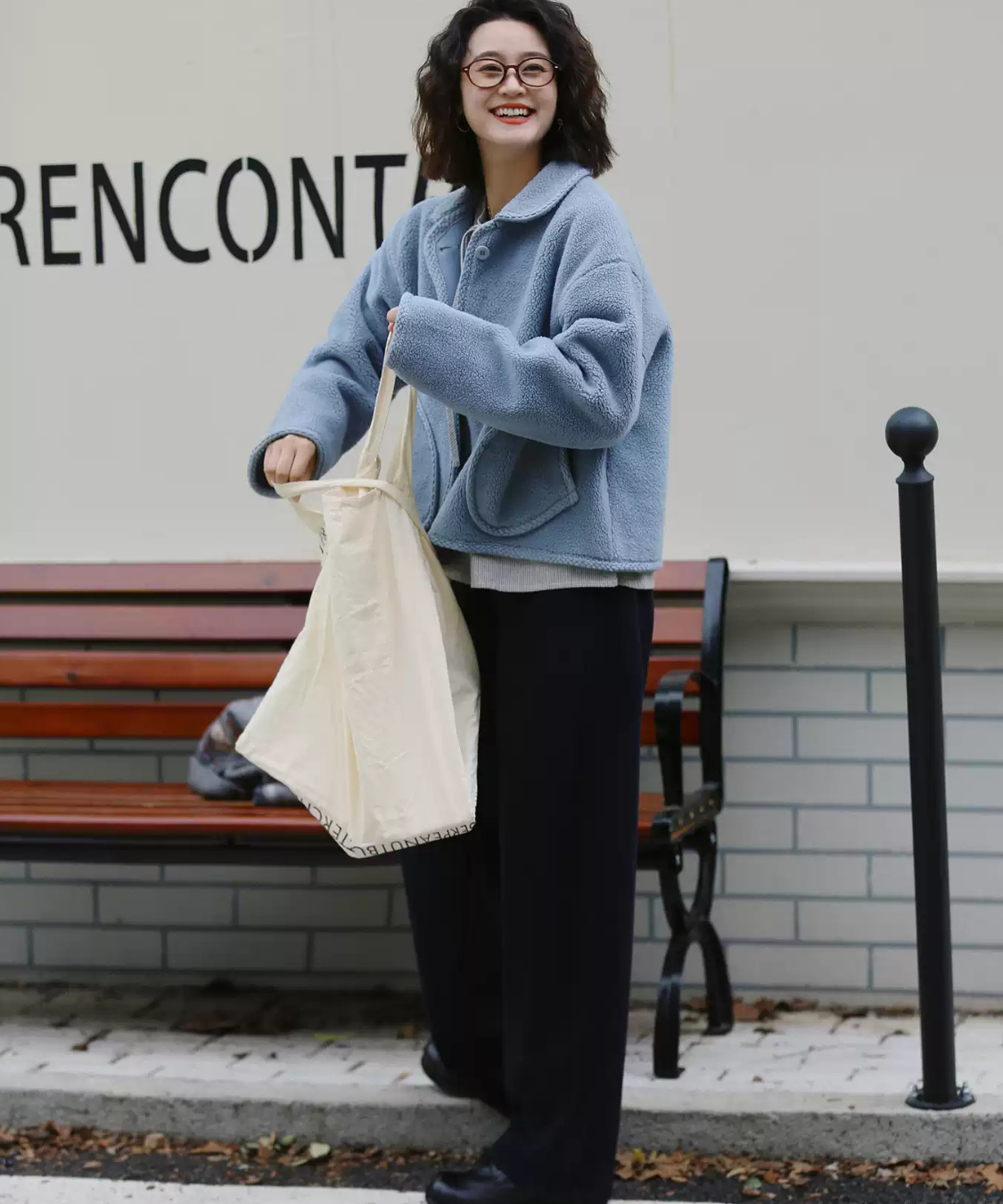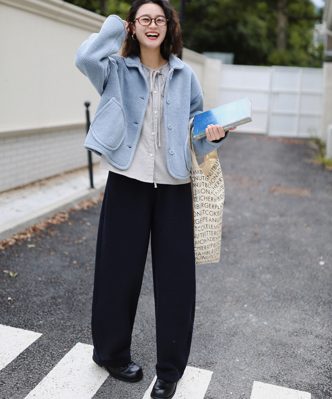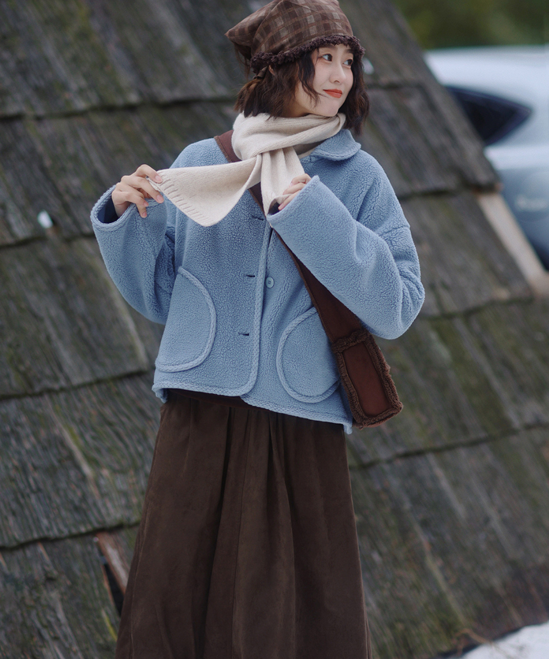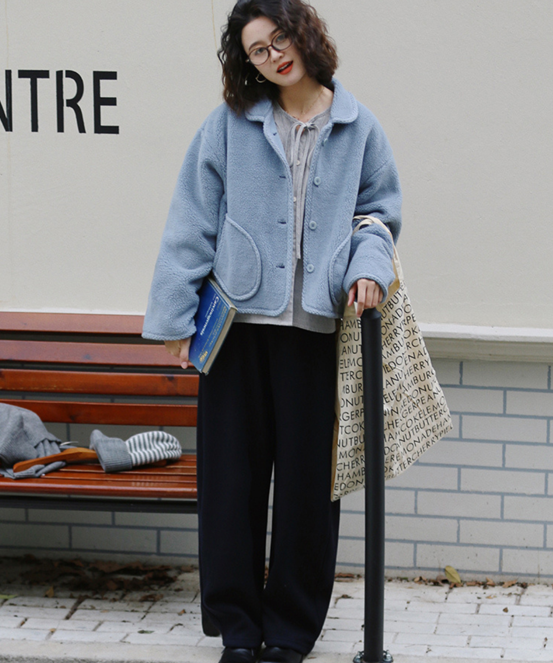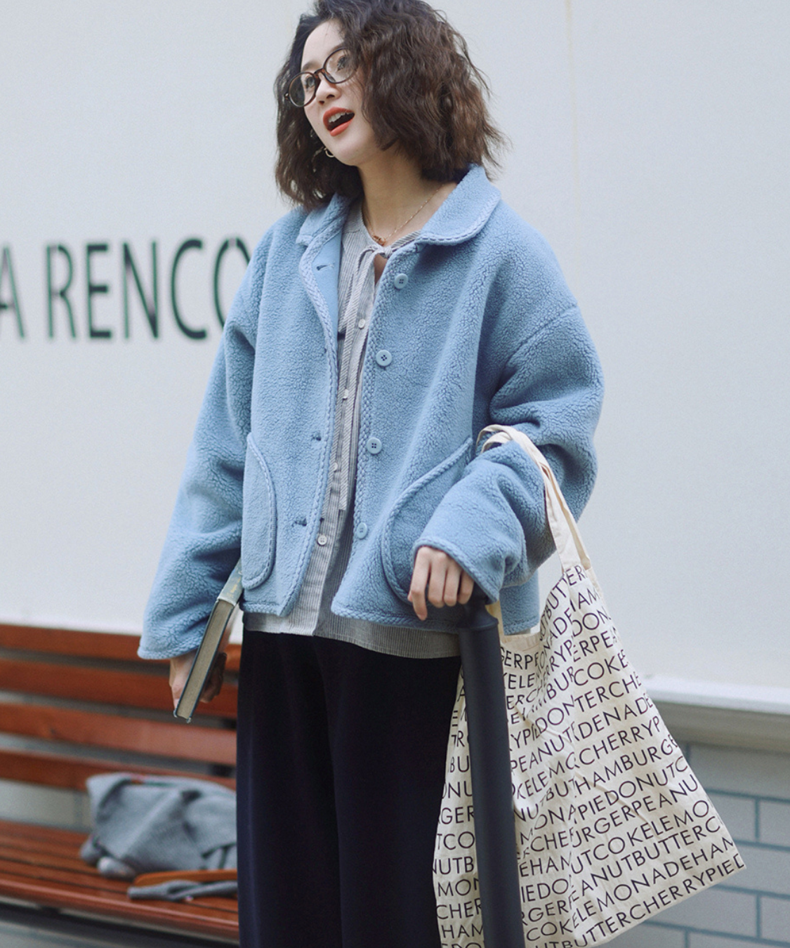 もこもことしたボア素材がシーズンムードたっぷりのショートジャケットです。