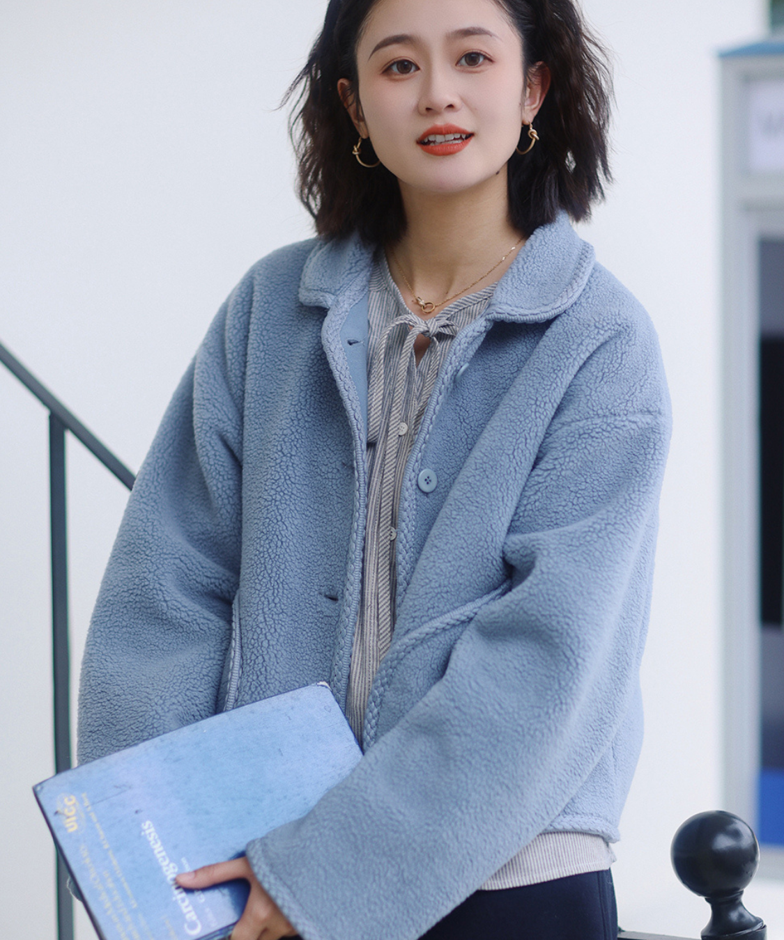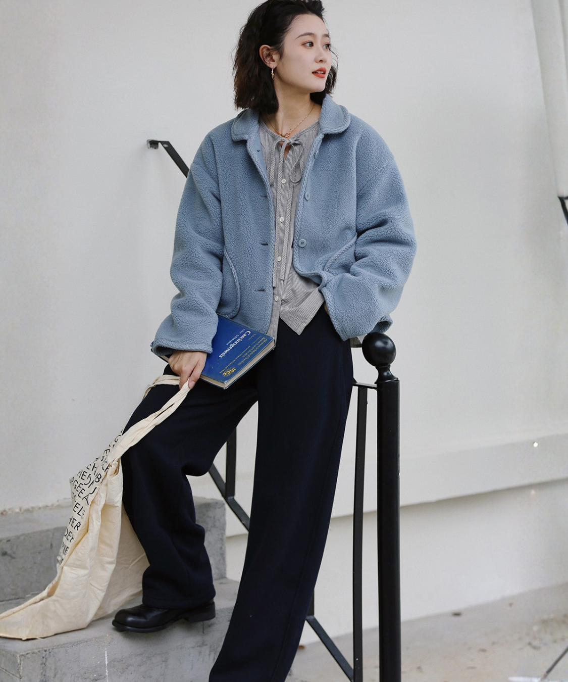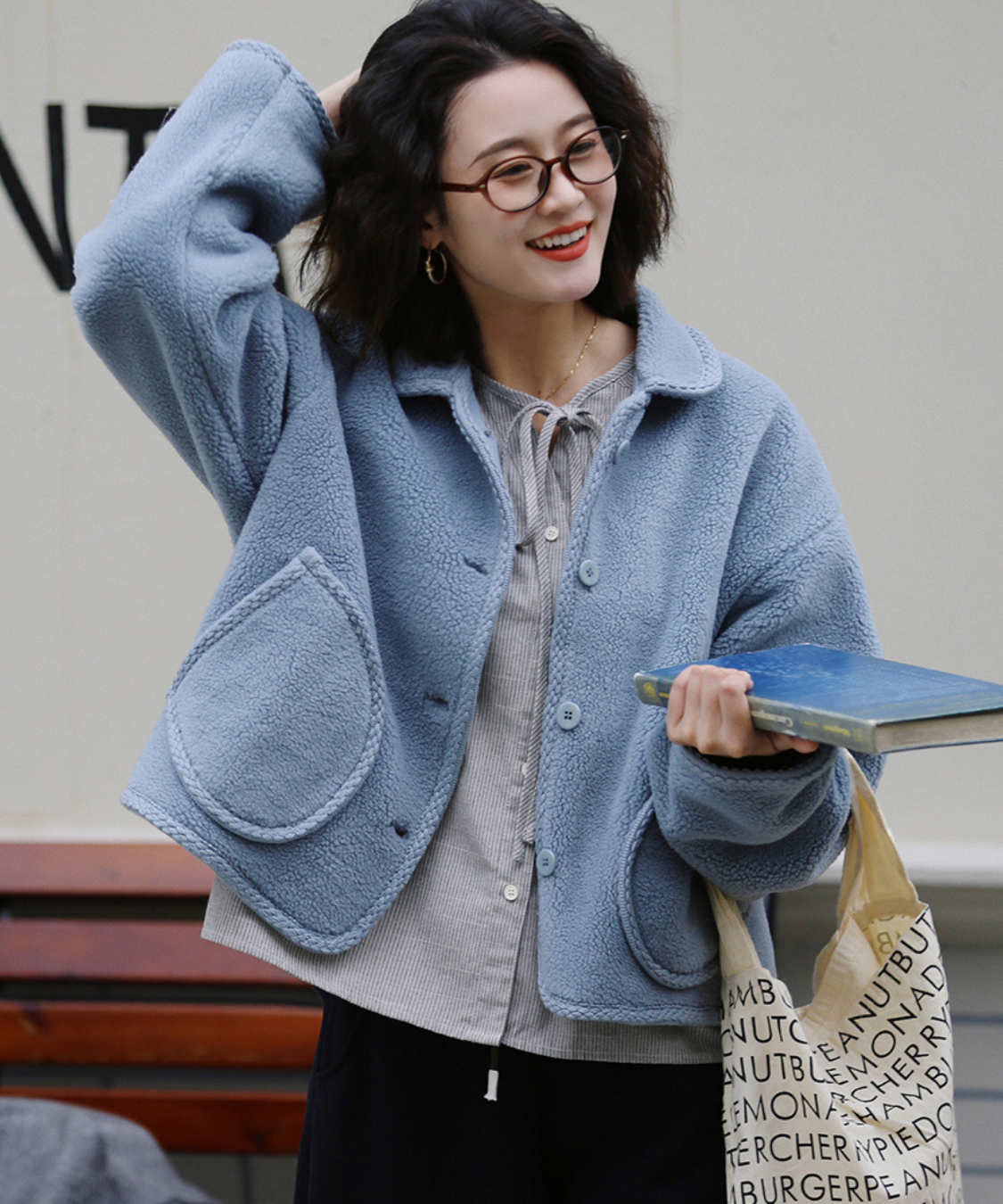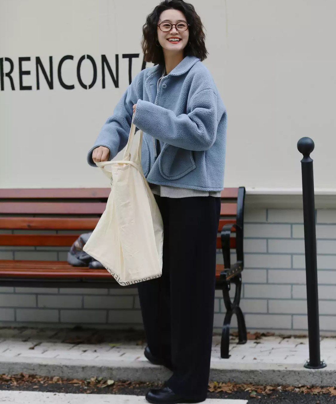 もこもことしたボア素材がシーズンムードたっぷりのショートジャケットです。