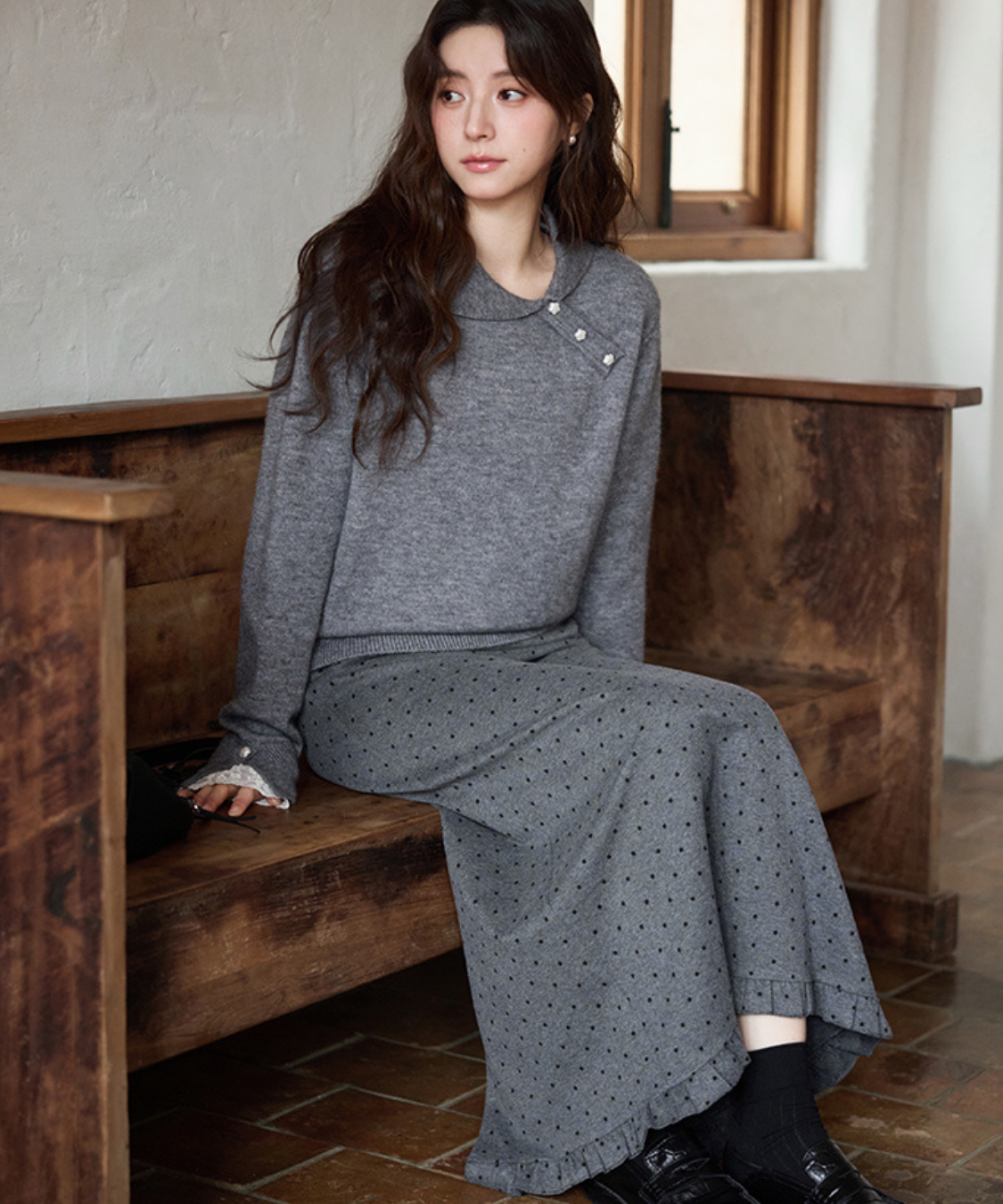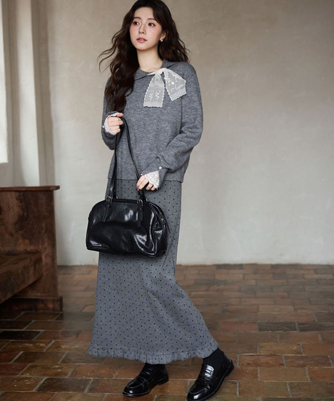 落ち着いたトーンで甘すぎず、大人ガーリーな着こなしが叶います◎