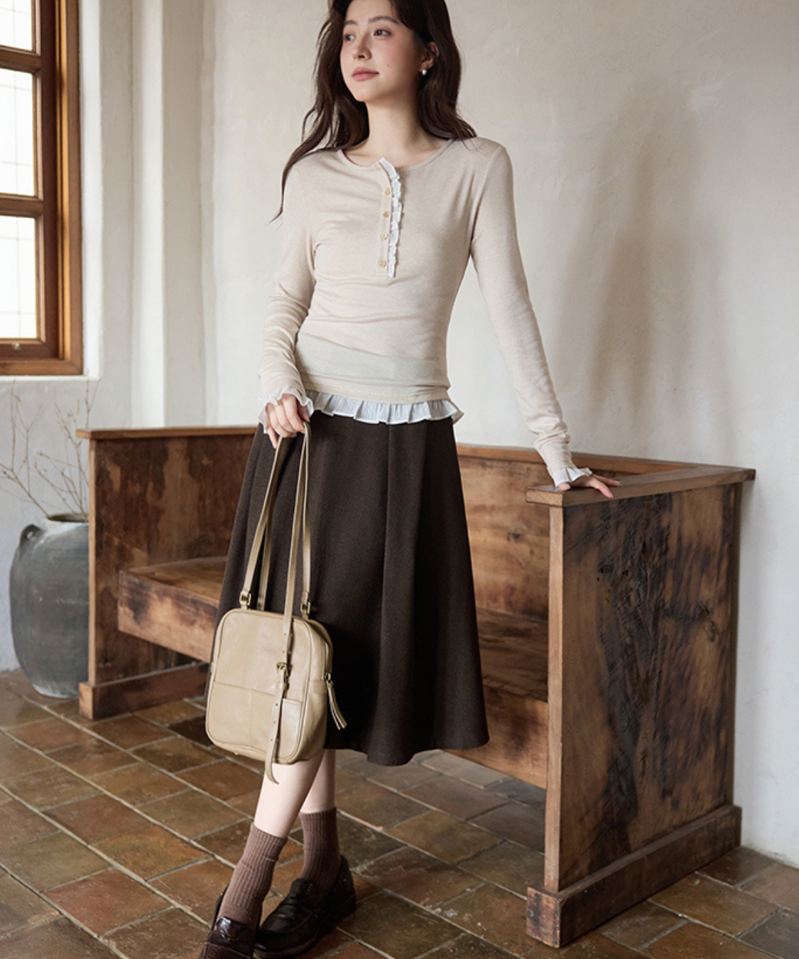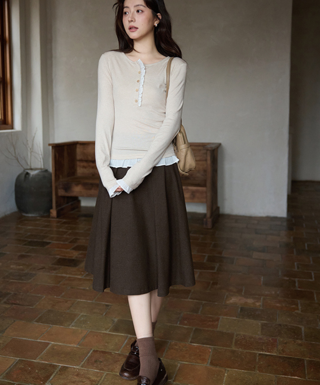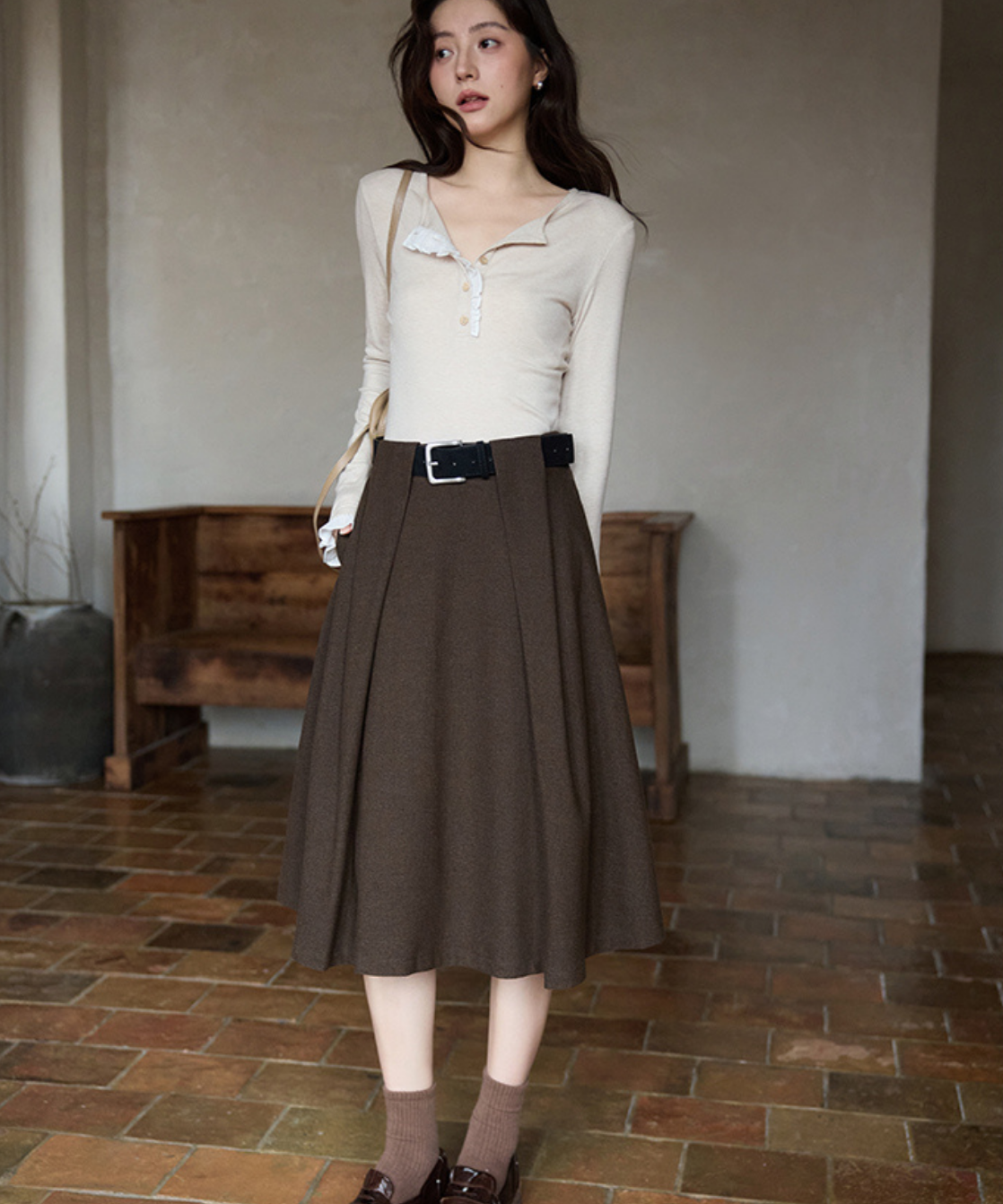 タックが生み出す立体感と揺れ感が上品なミディ丈スカートです。
