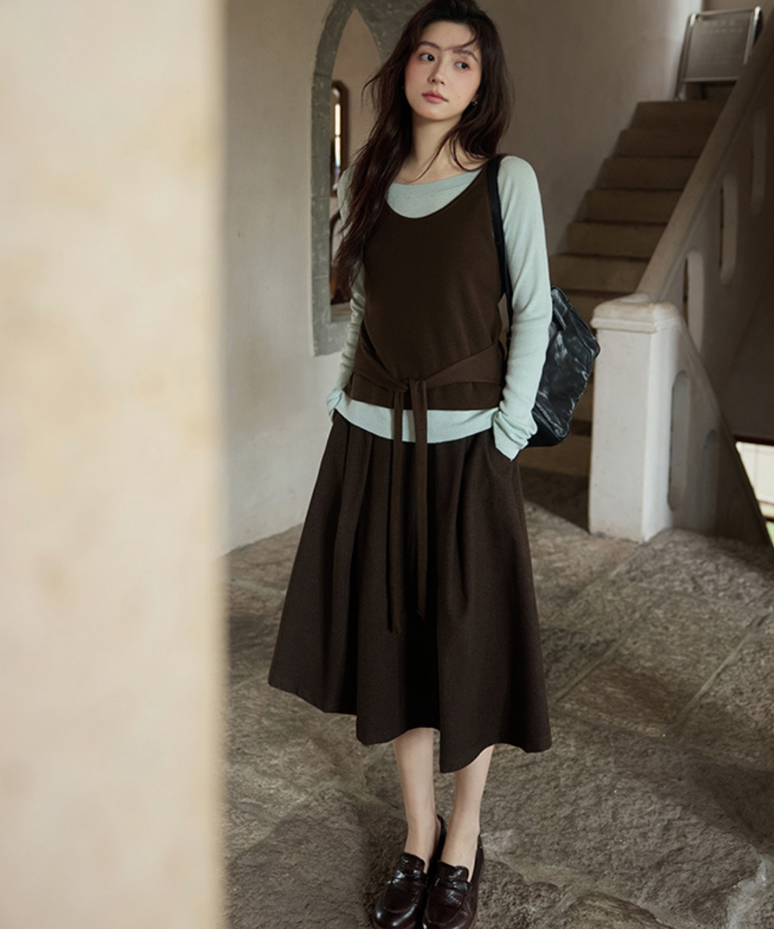 付属のベルトでウエストマークでき、メリハリのあるシルエットに仕上がります♡