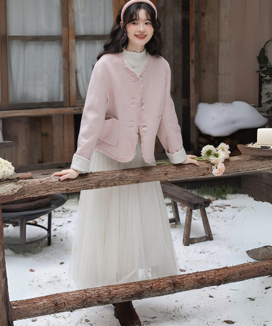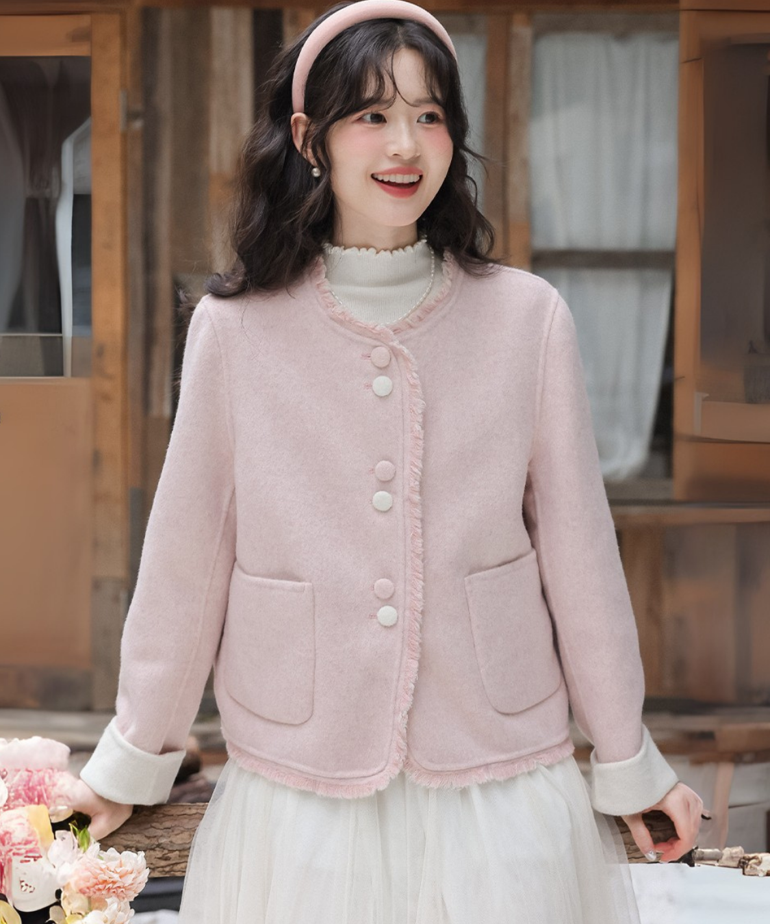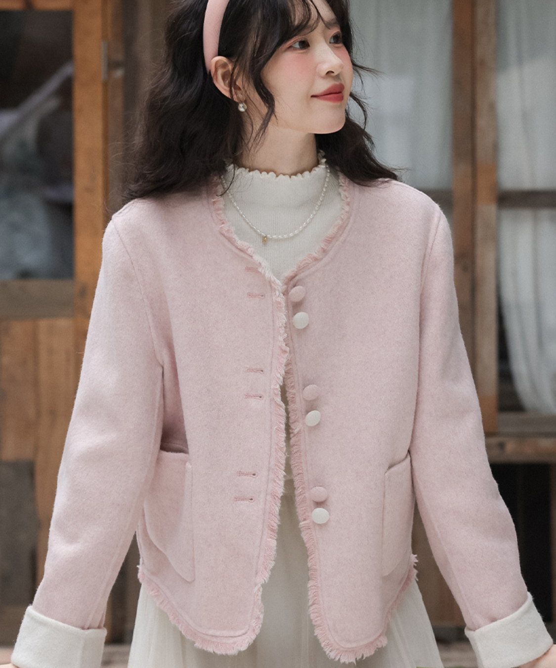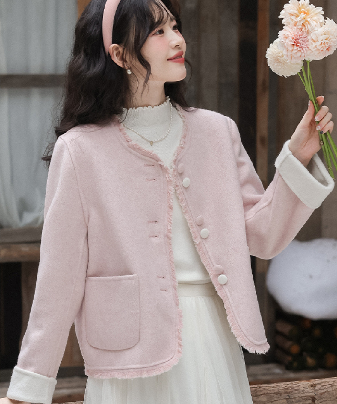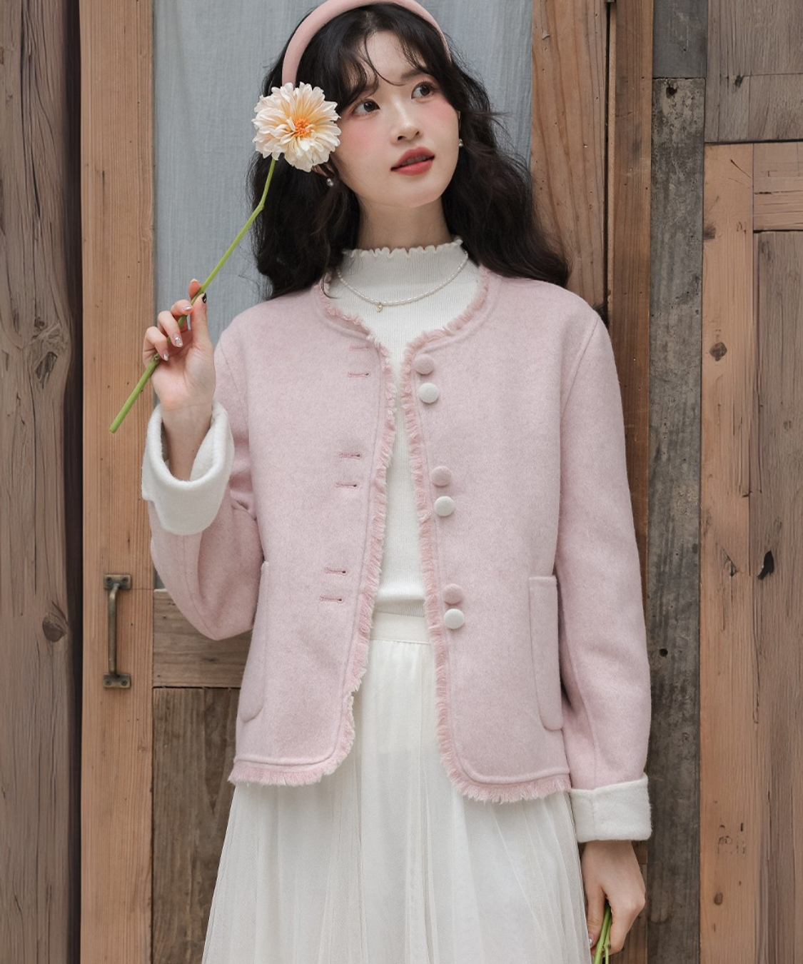 フリンジのあしらいが柔らかなニュアンスをプラスするフェミニンジャケットです。
