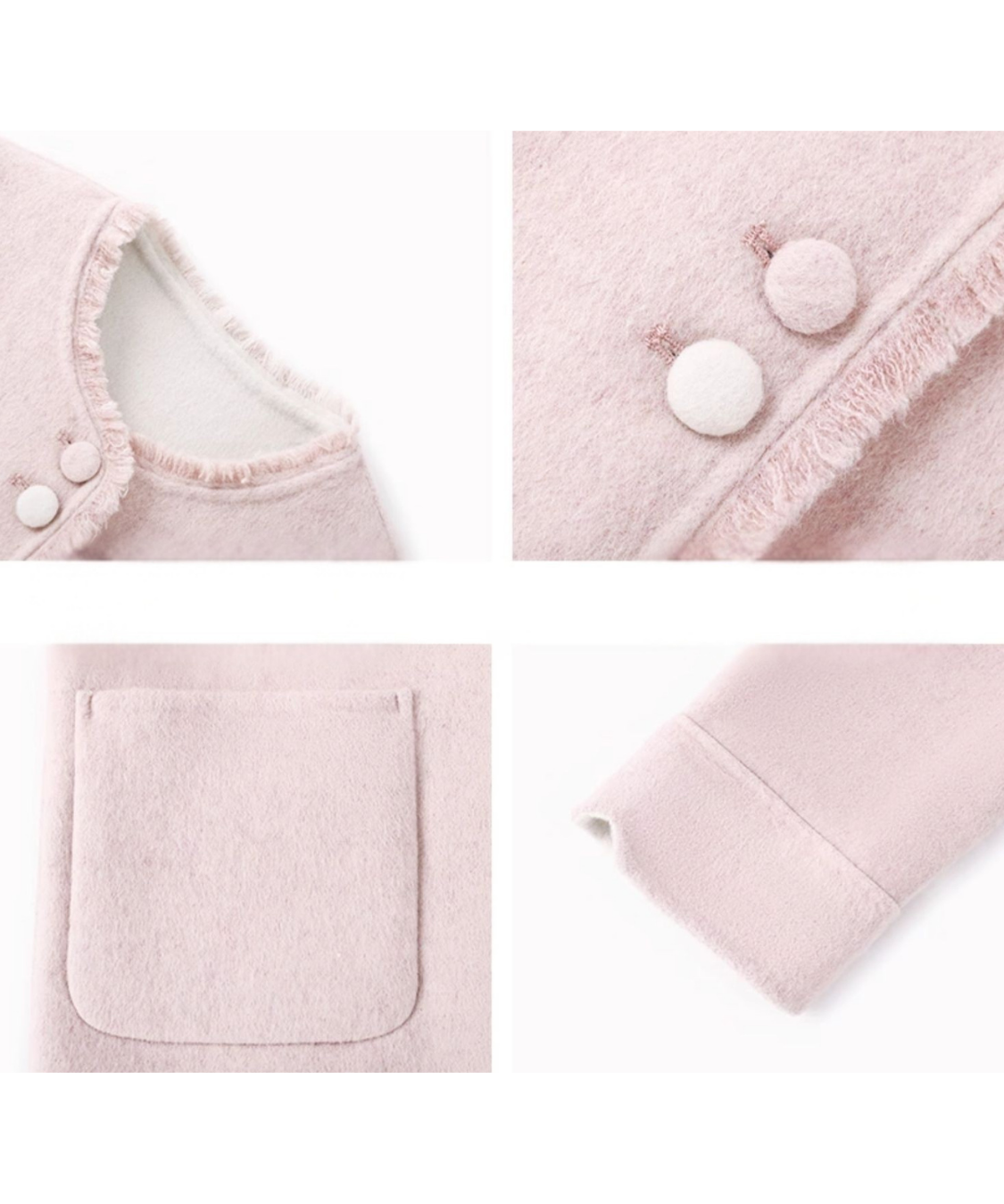 くるみボタンと配色の袖口がポイントになり、愛らしい印象を引き立てます♡