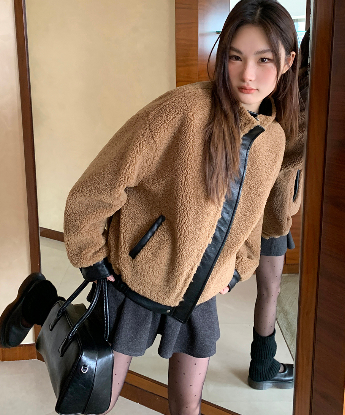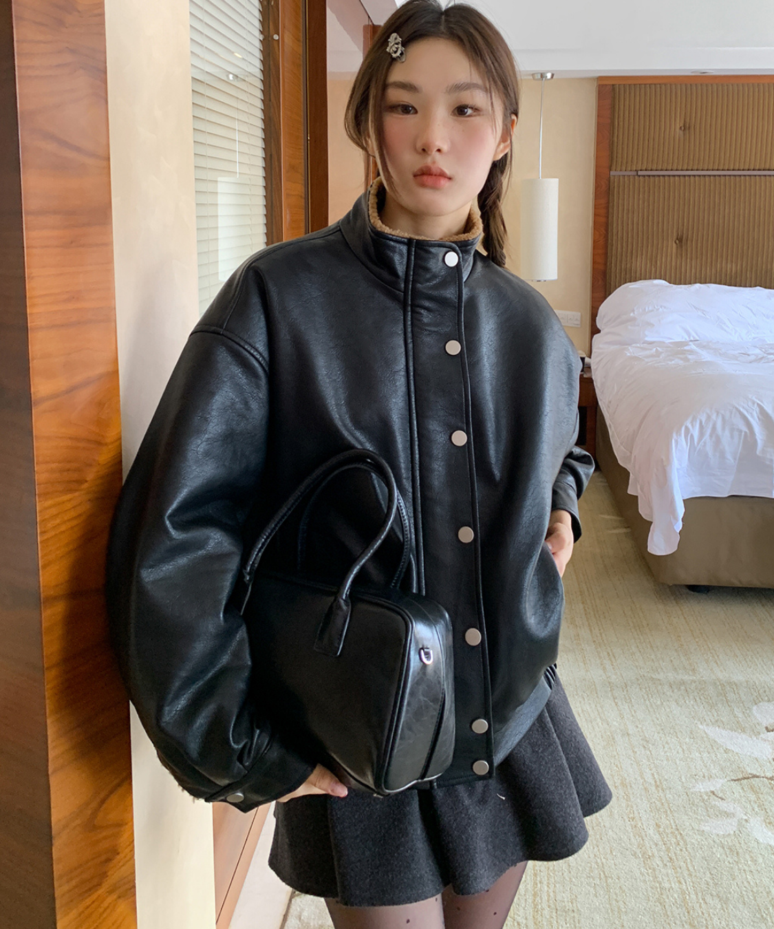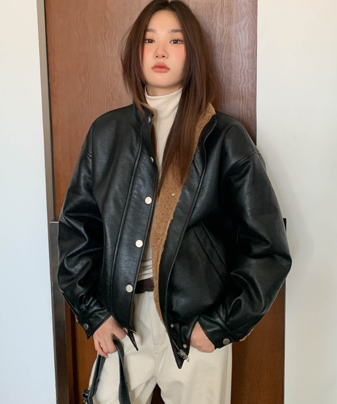 ボアのもこもこ感とレザー調のクールさが両方楽しめて得した気分!