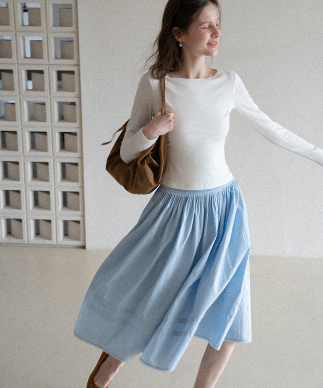 ミモレ丈で上品さがありながら、軽やかな着心地でデイリーに活躍してくれます♡