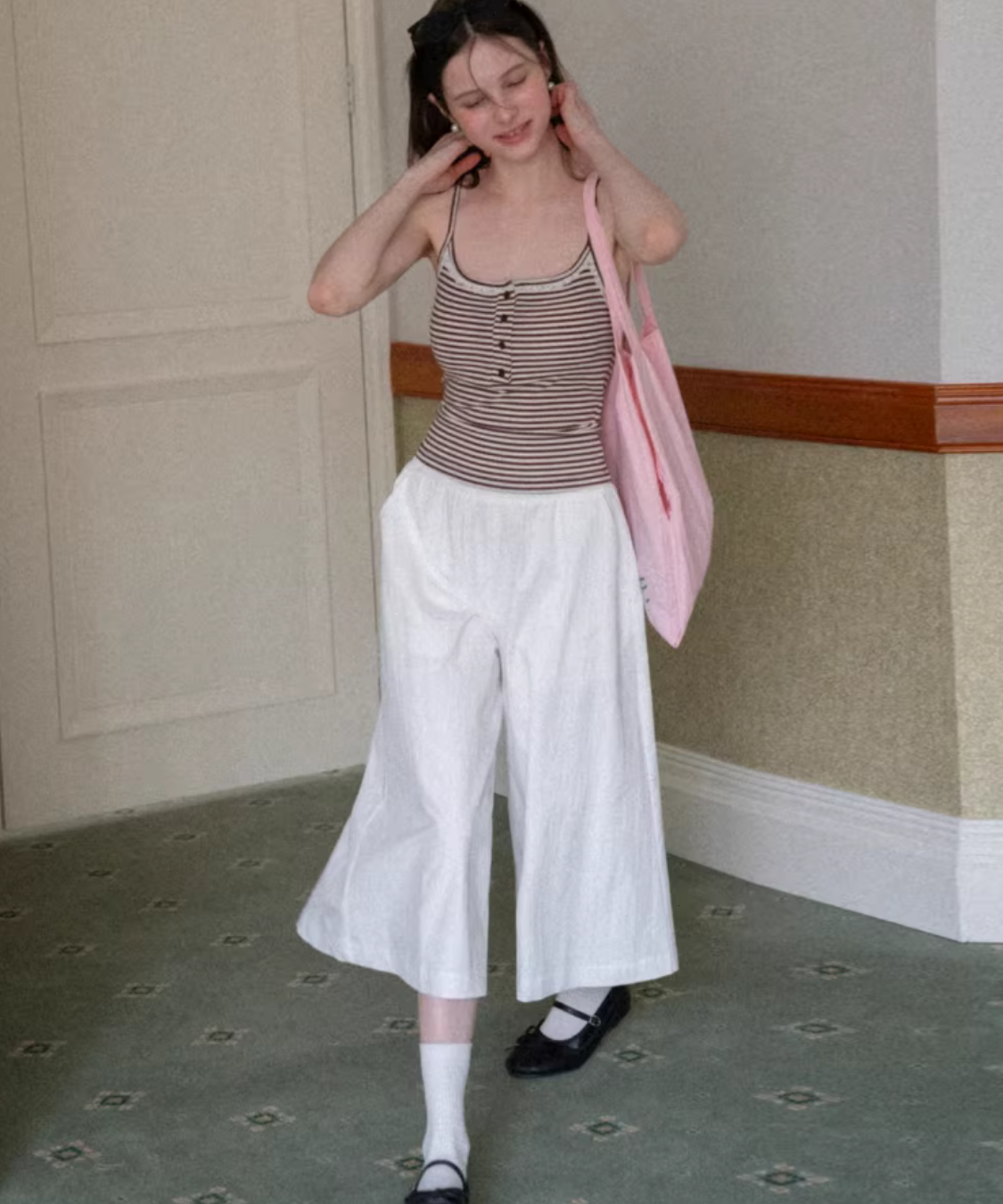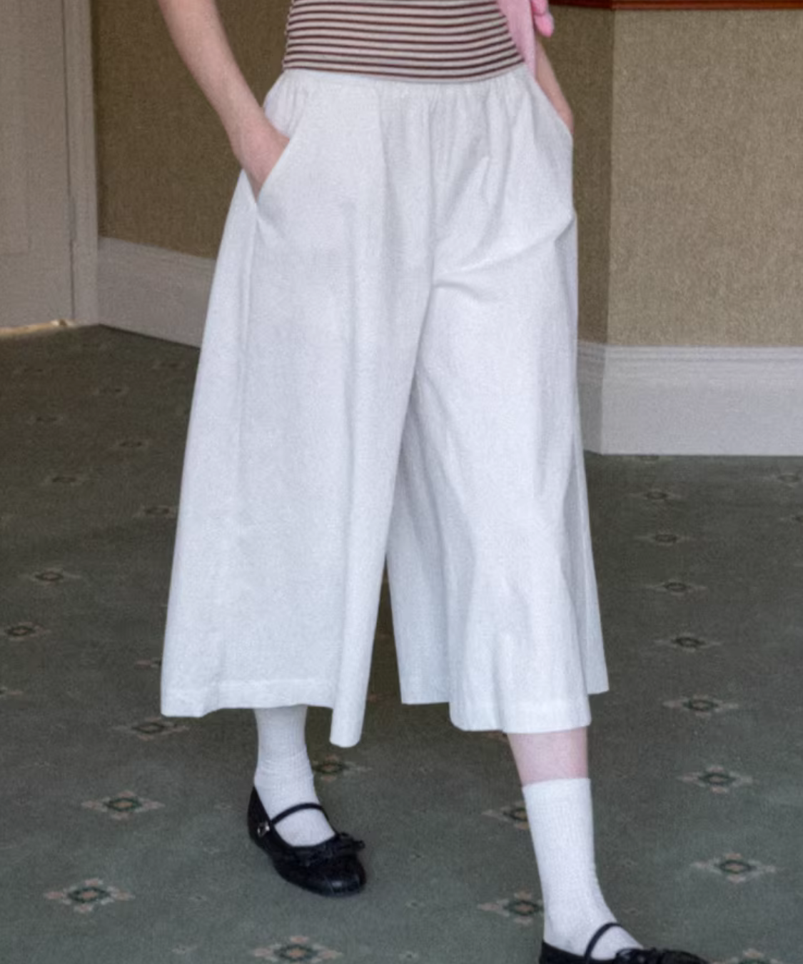 ウエストゴムタックガウチョパンツ