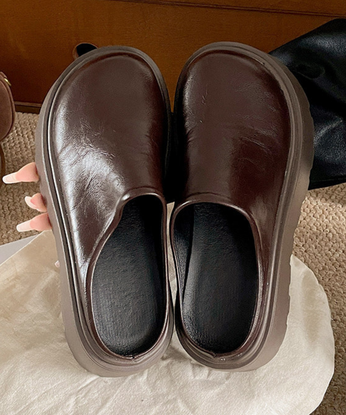 プラットフォームフェイクレザーサボ