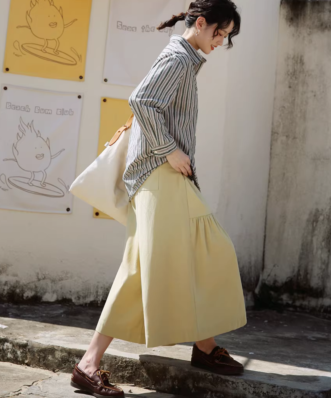 脚のラインを拾いにくく、リラックスしながらきれい見えが叶うのが嬉しいです◎