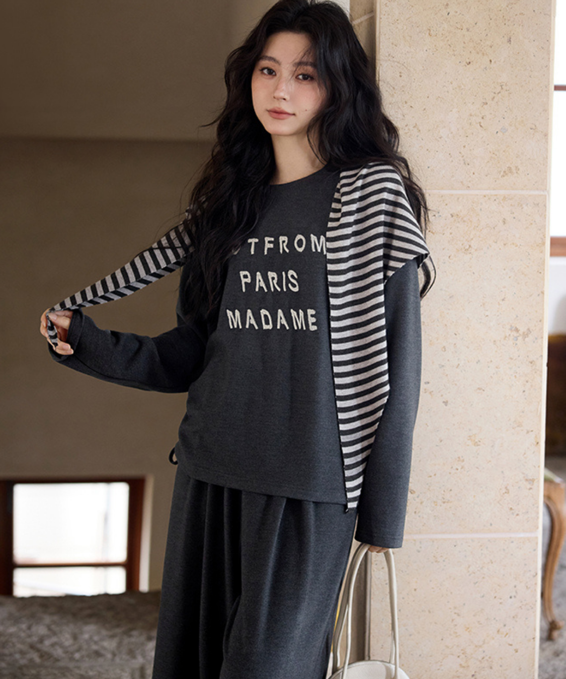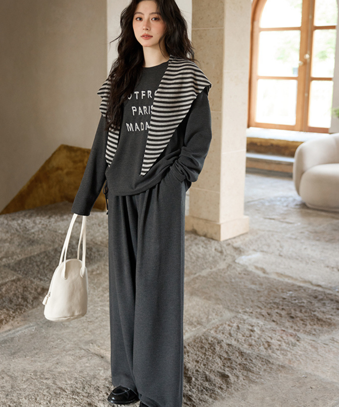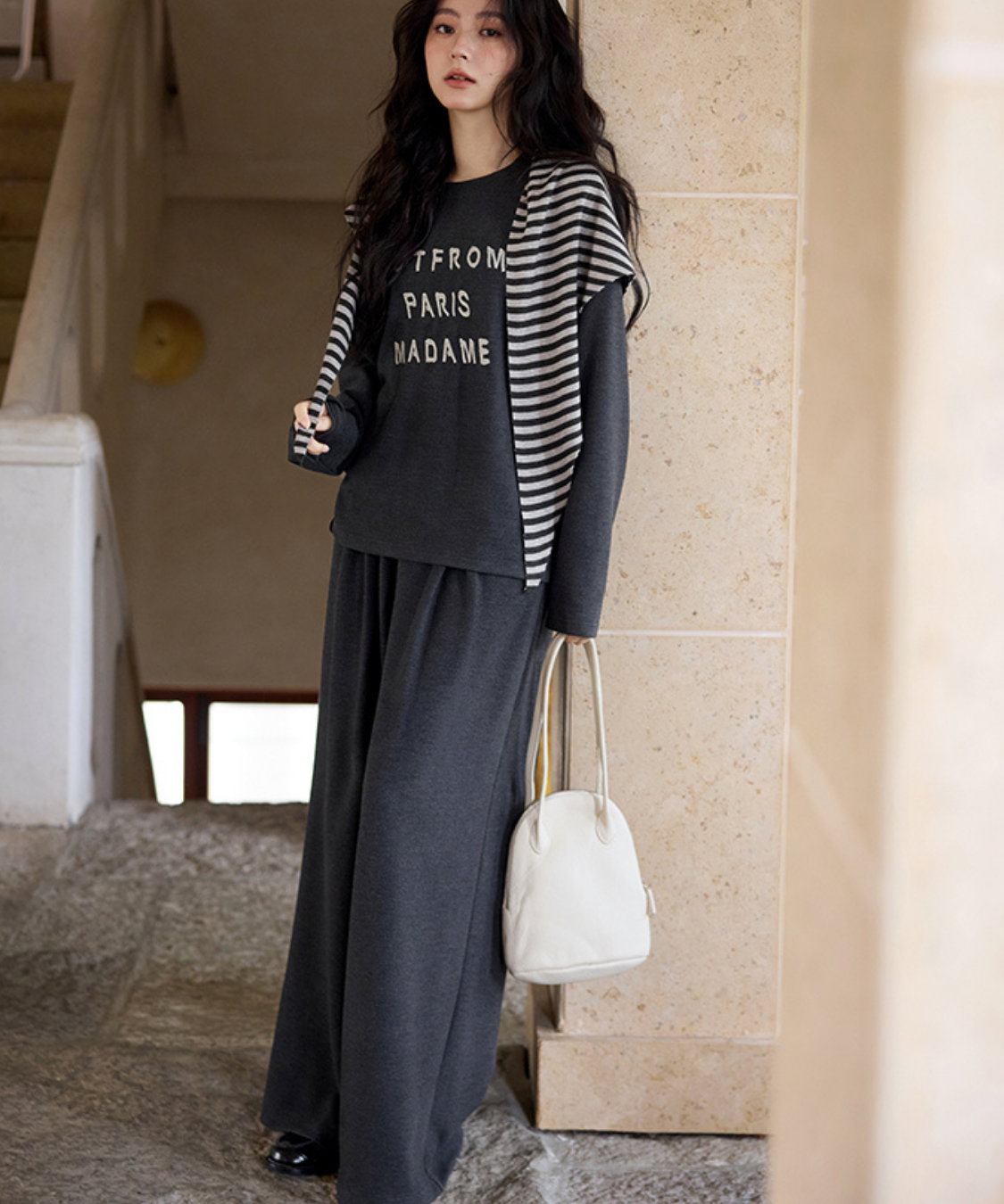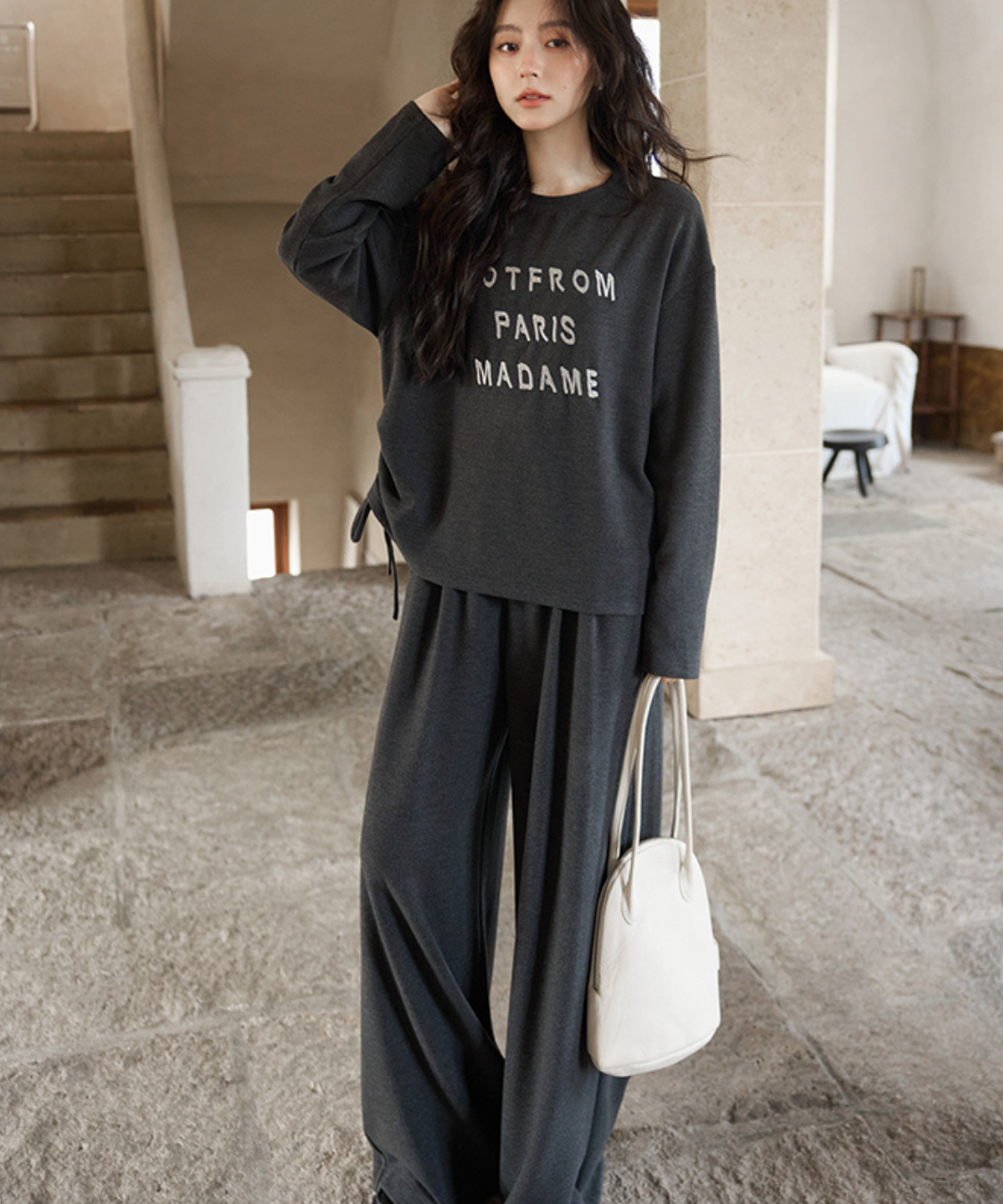 ショール付きロゴトップス+ワイドパンツ 2点セット