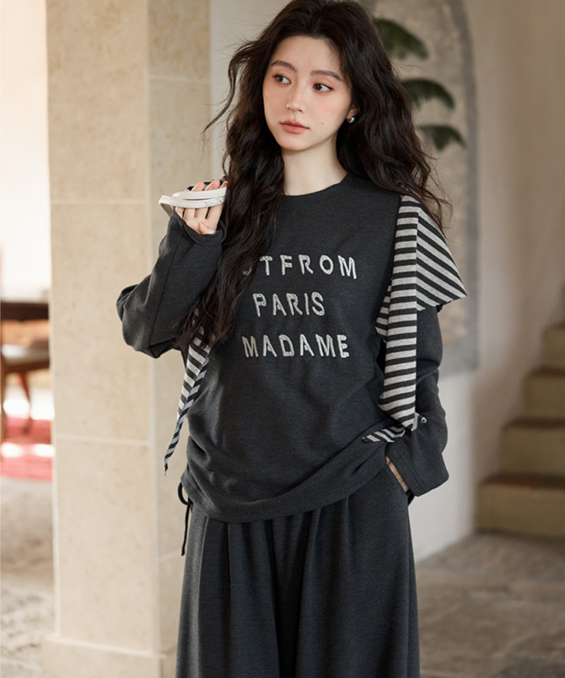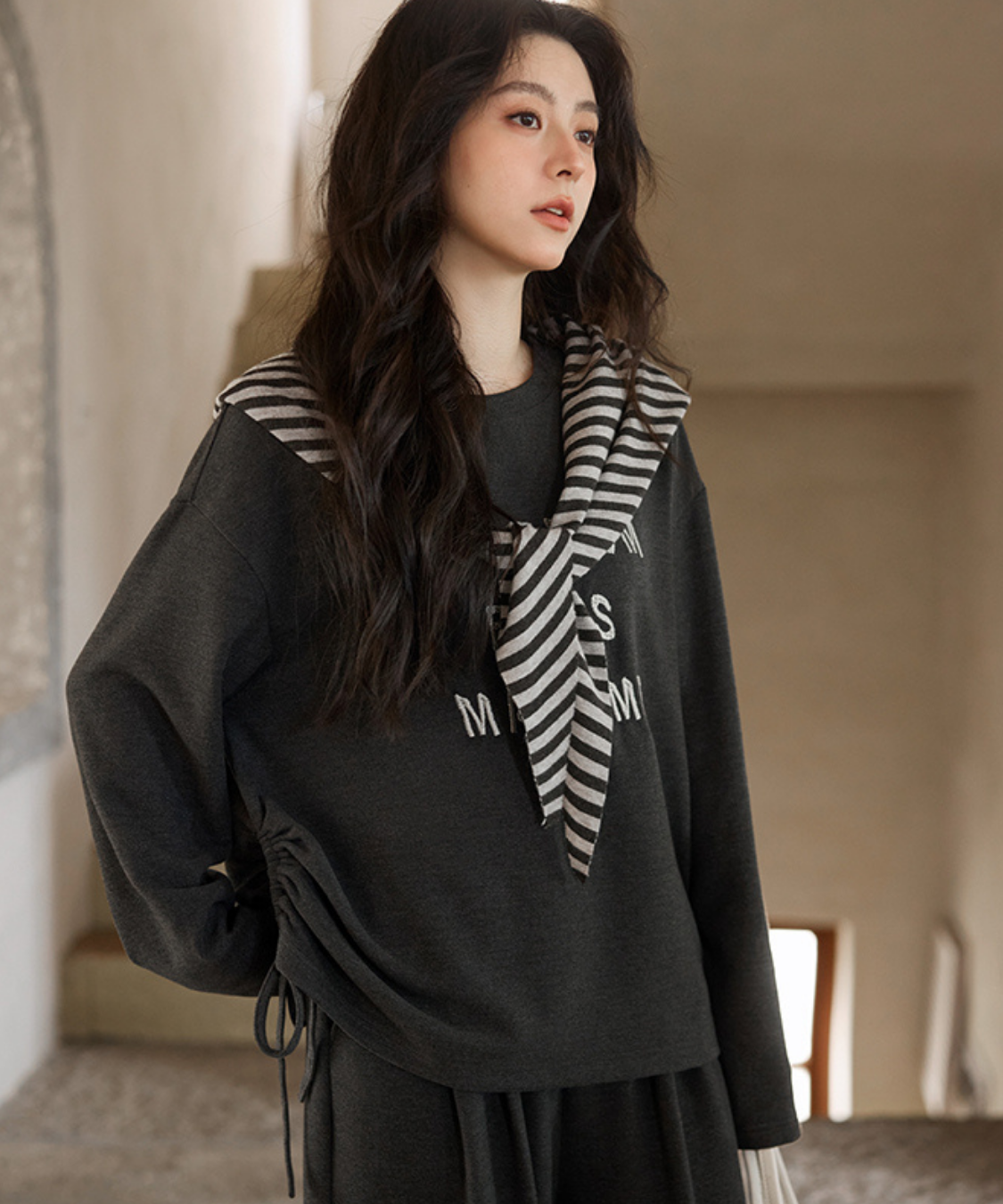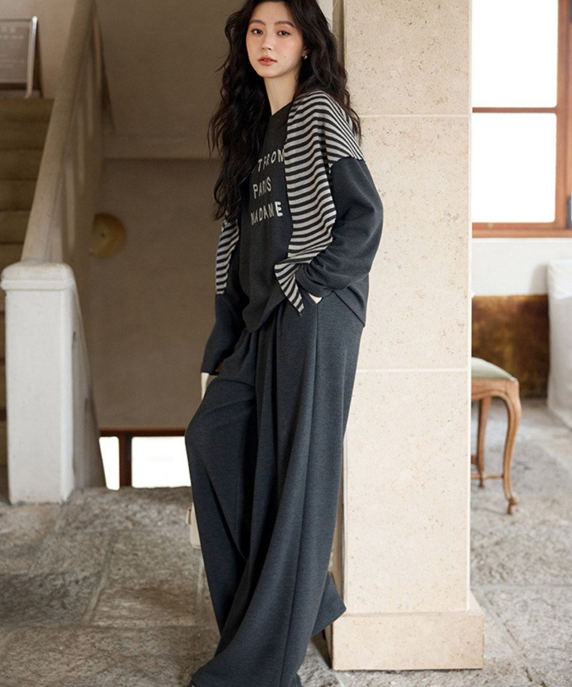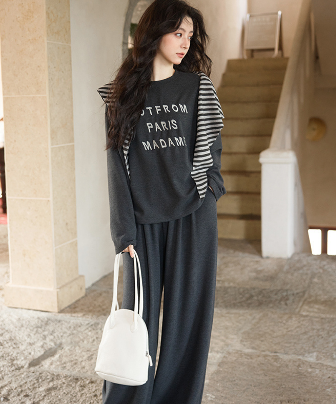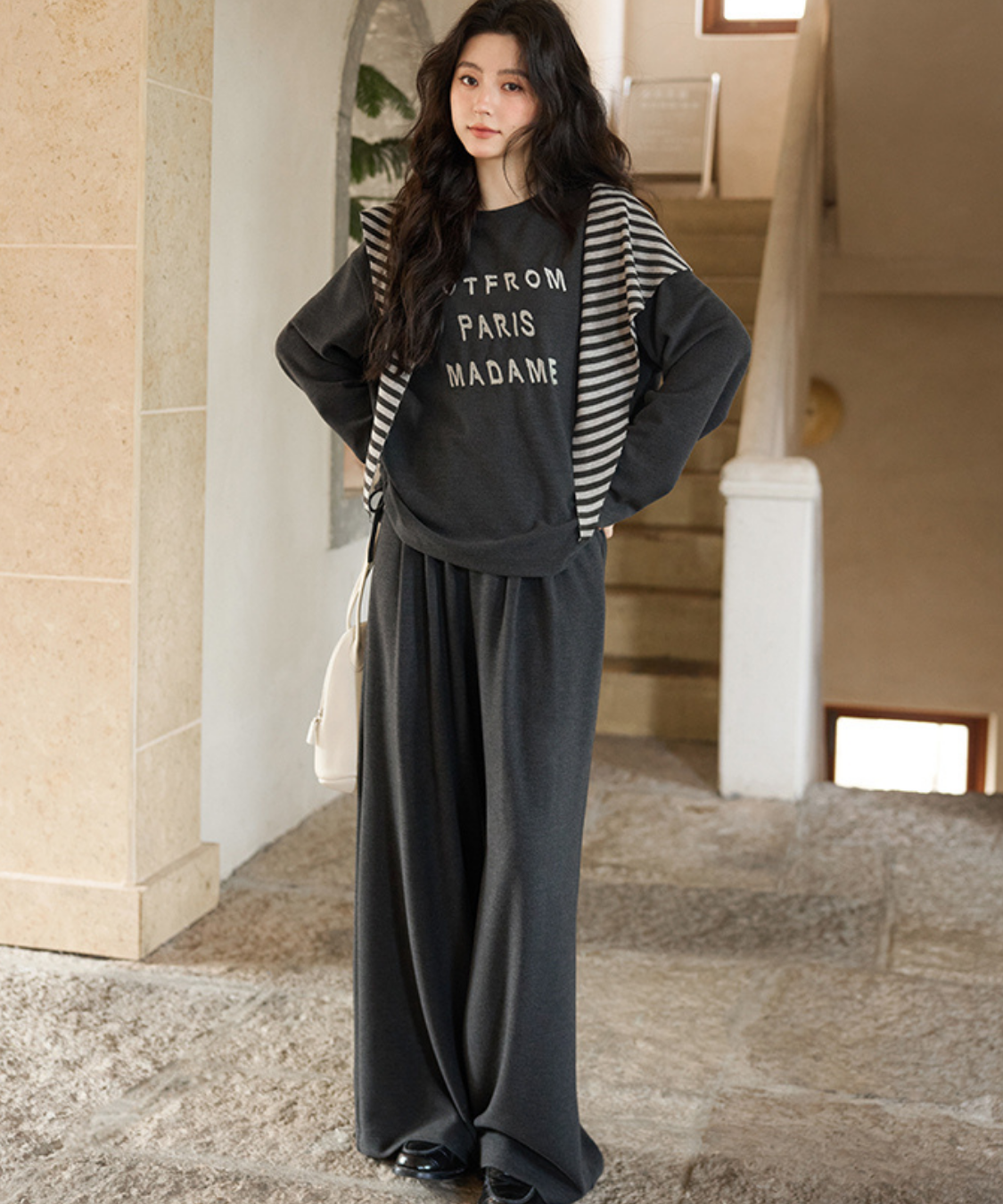 ショール付きロゴトップス+ワイドパンツ 2点セット