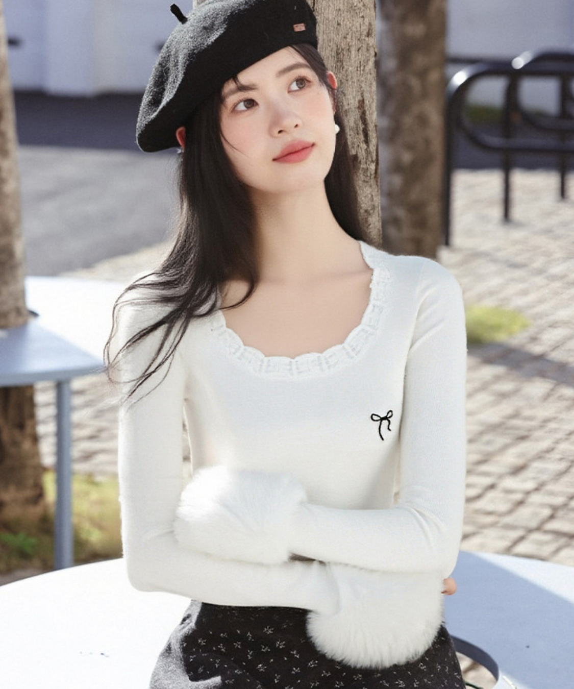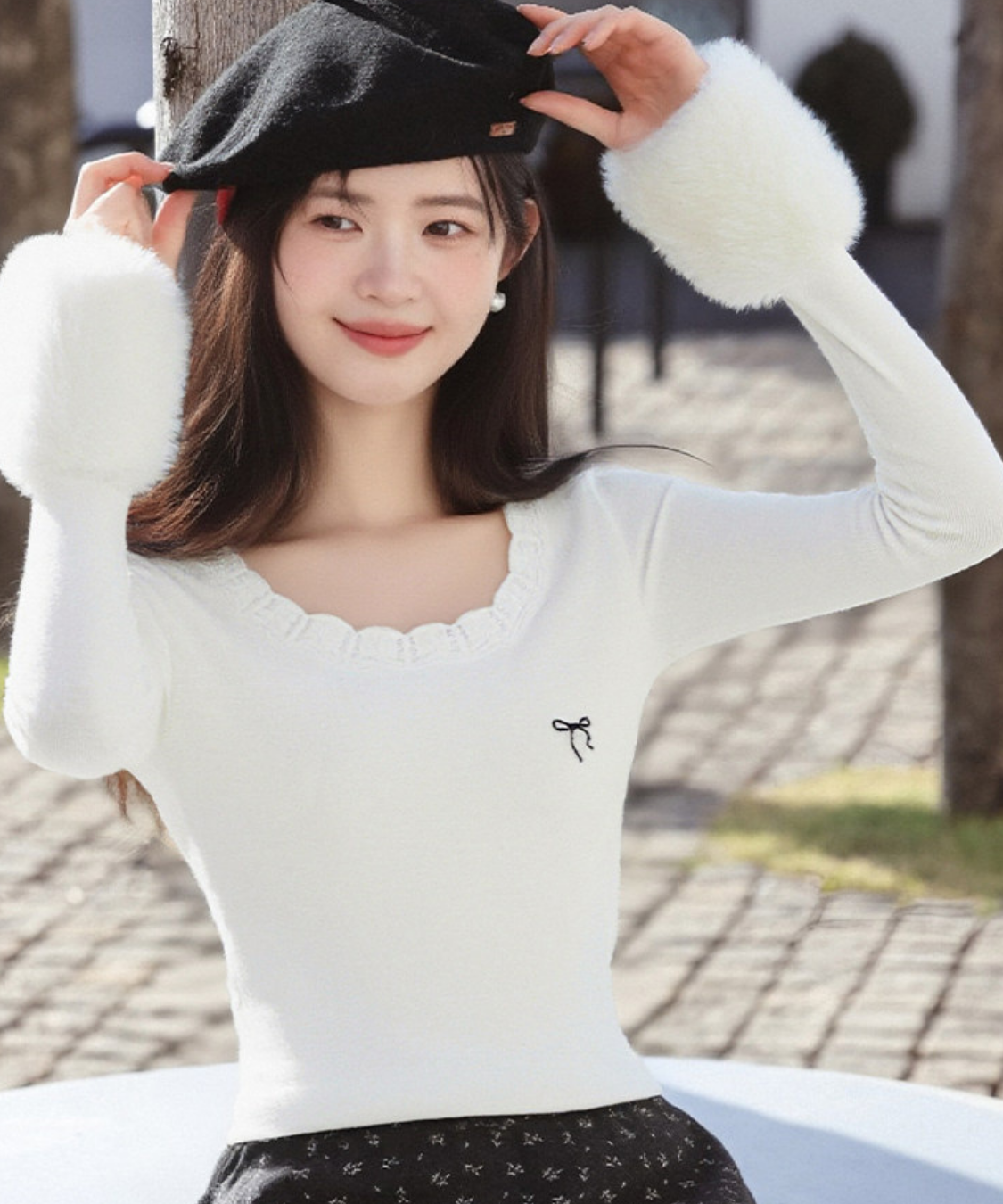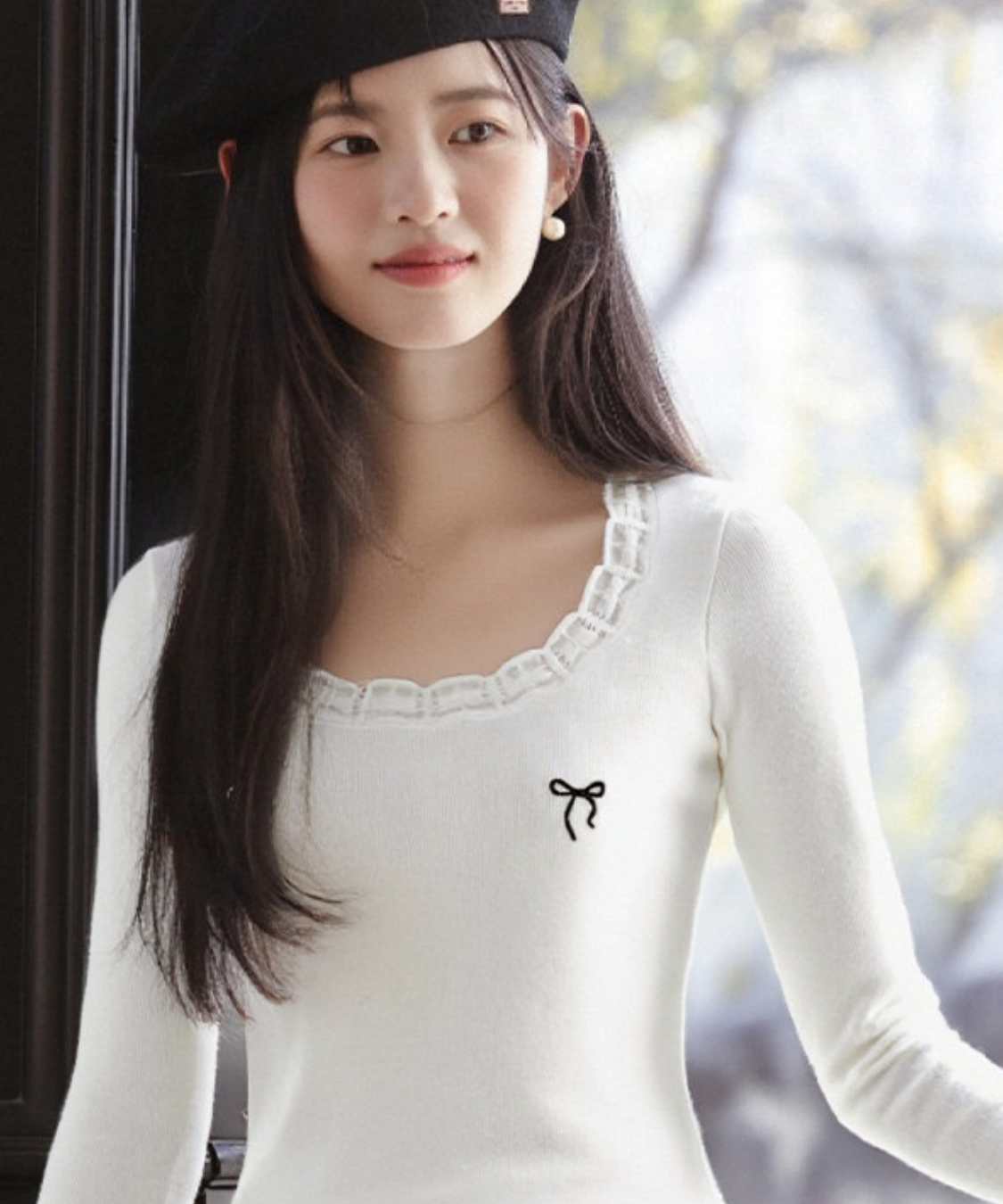 リボンのさりげないアクセントが、フェミニンな雰囲気を引き立ててくれます♡