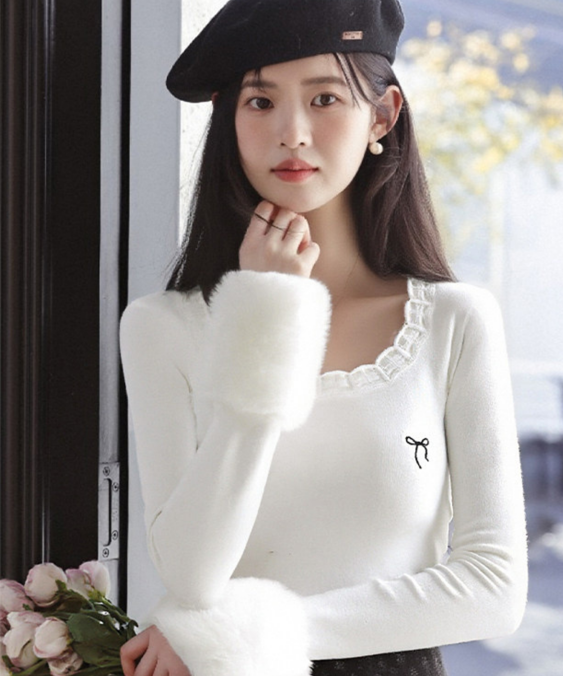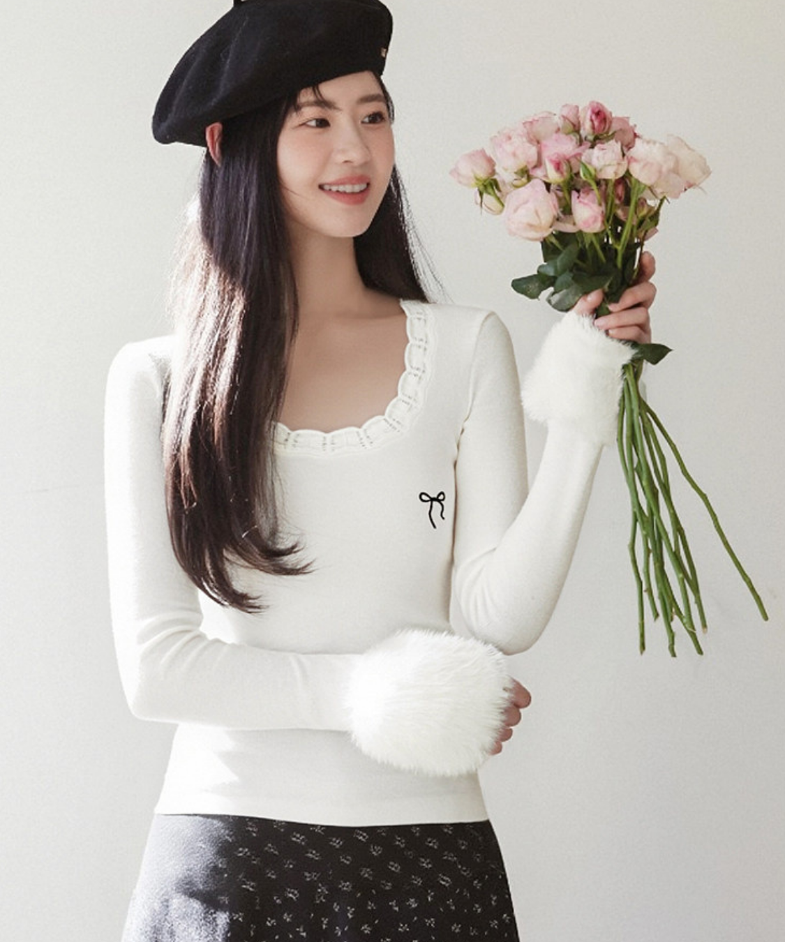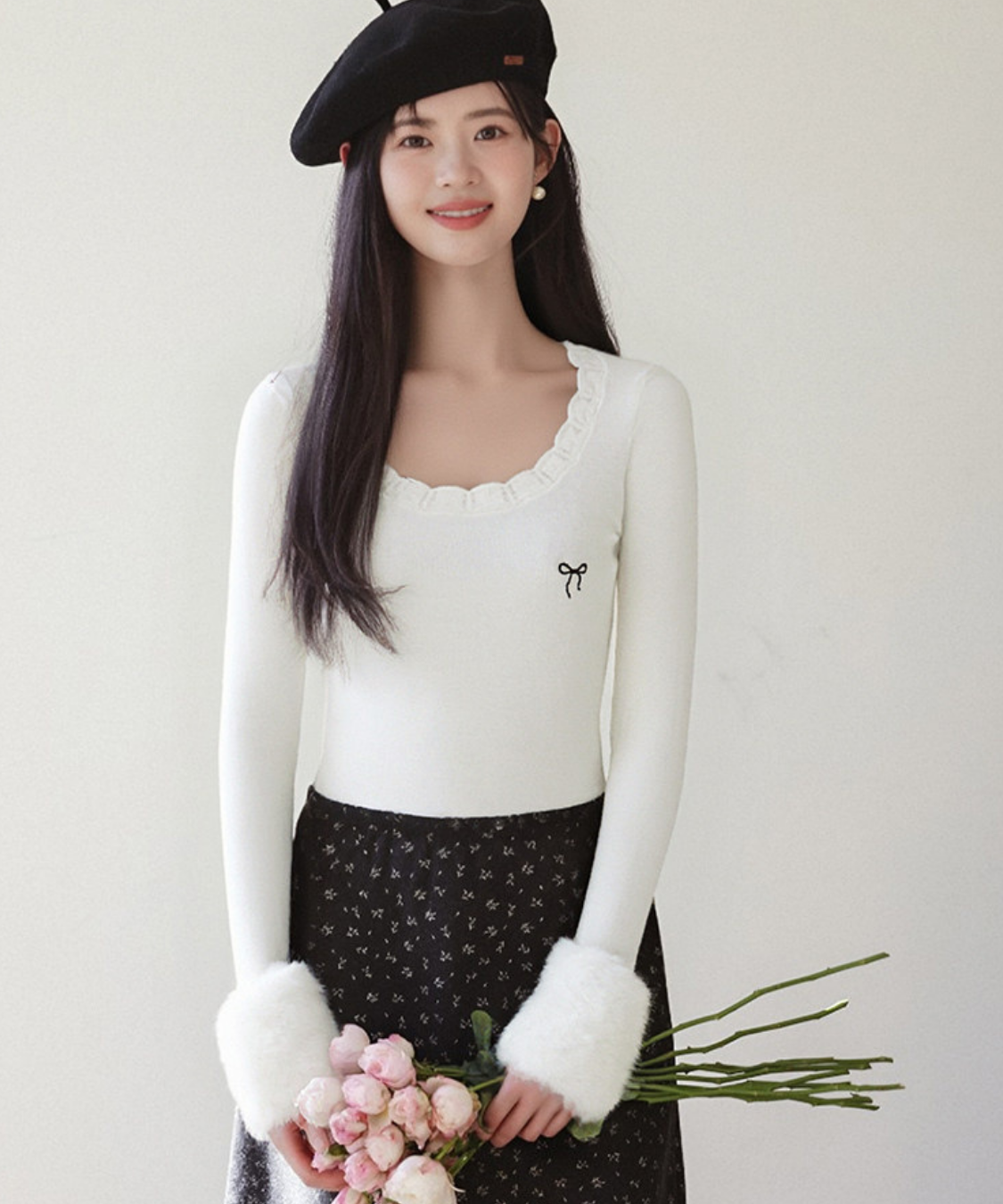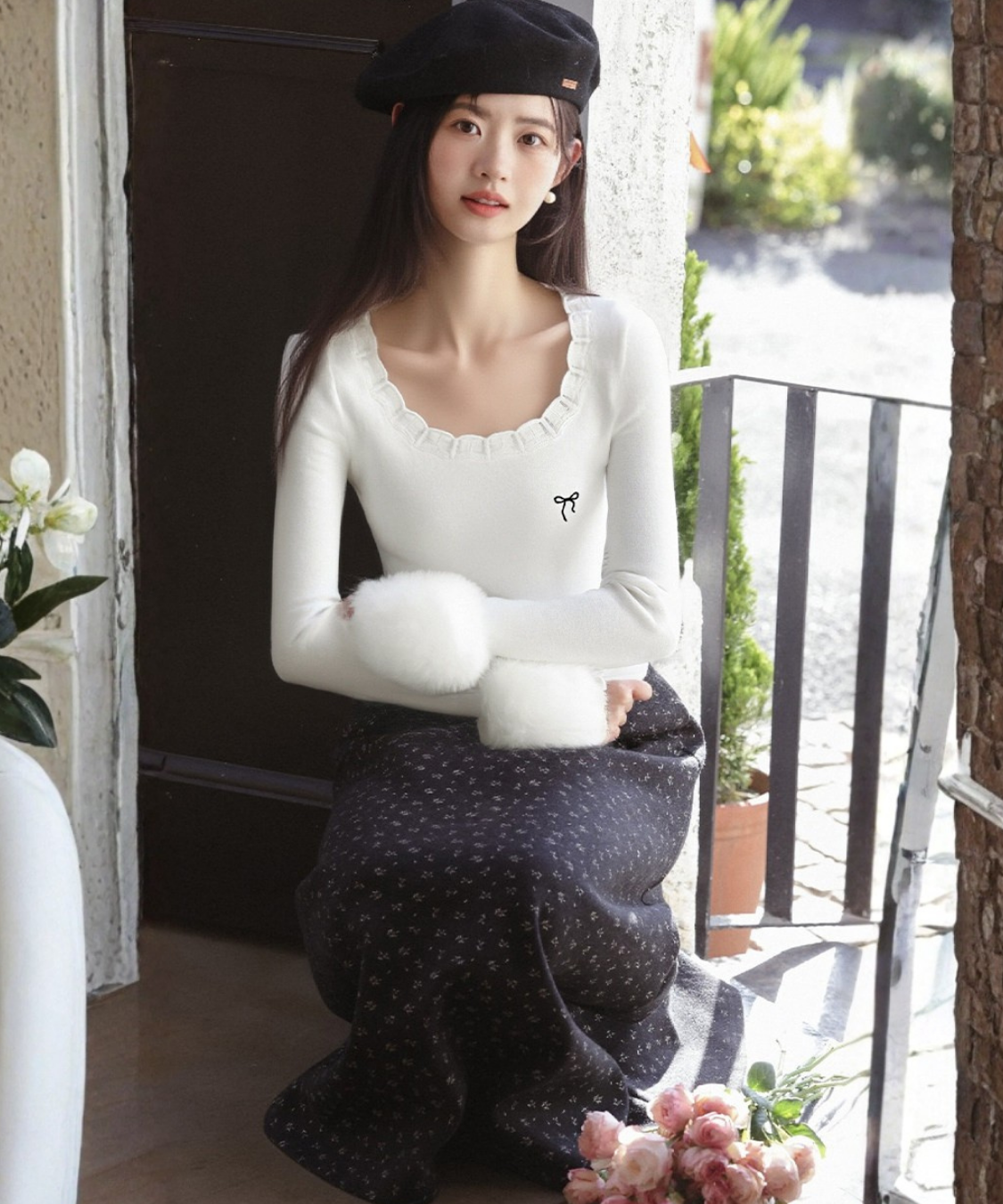 リボンのさりげないアクセントが、フェミニンな雰囲気を引き立ててくれます♡
