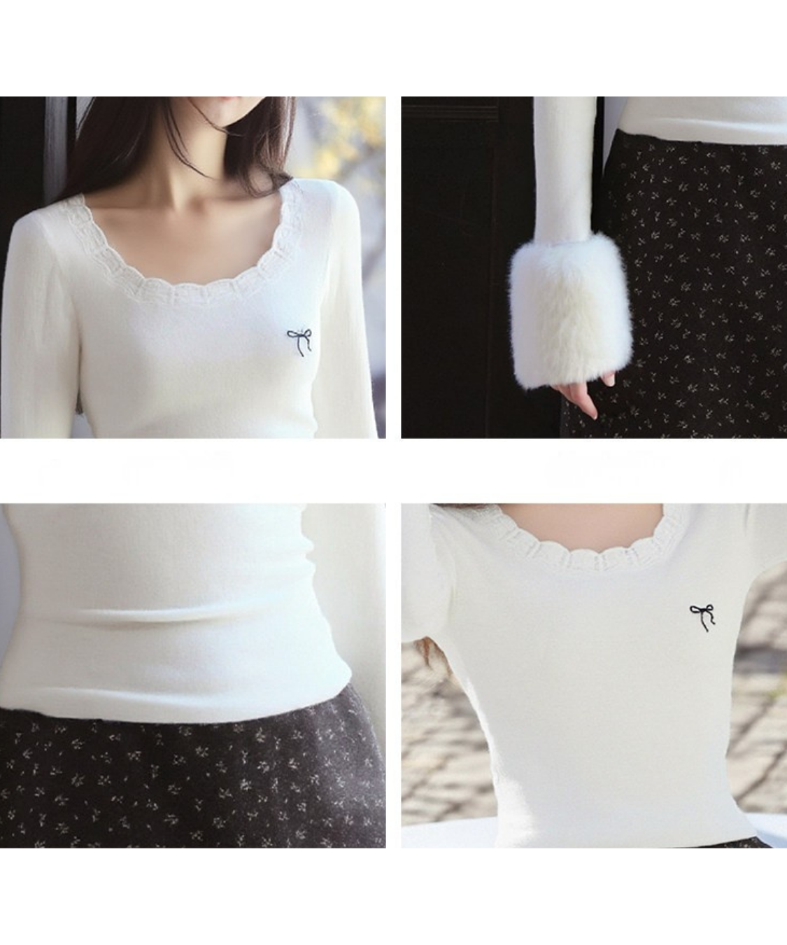 ラウンドフリルネックファーカフストップス
