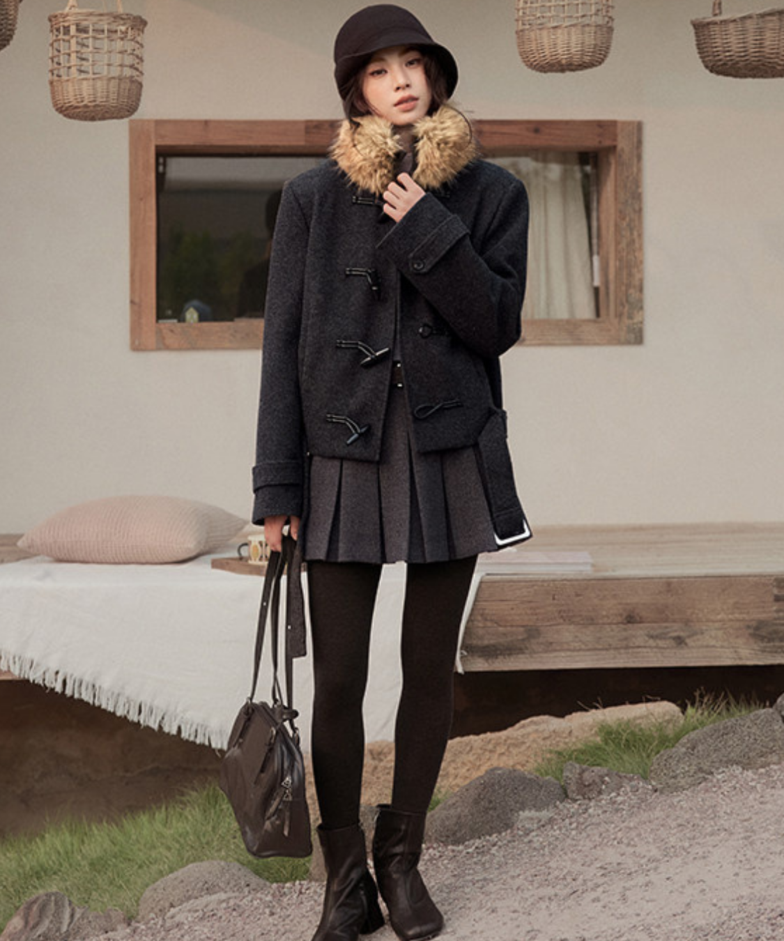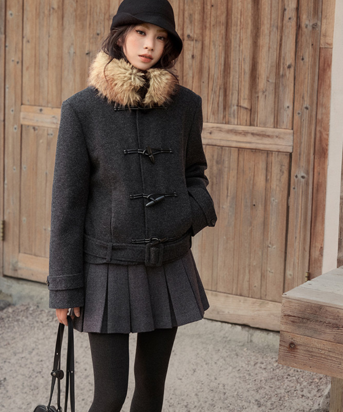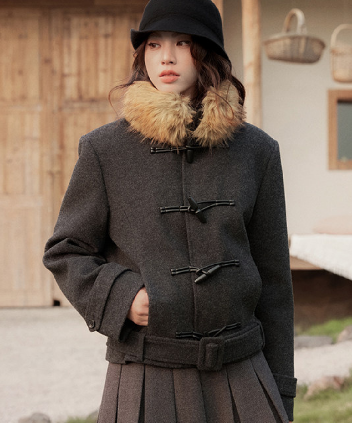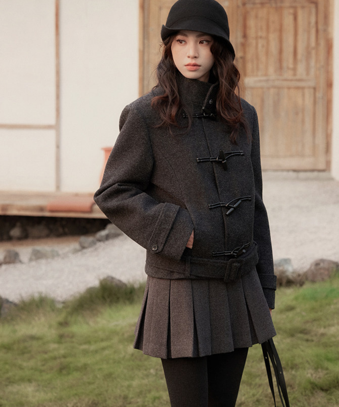 クラシカルな雰囲気漂う、ダッフル風デザインのショートコートです。