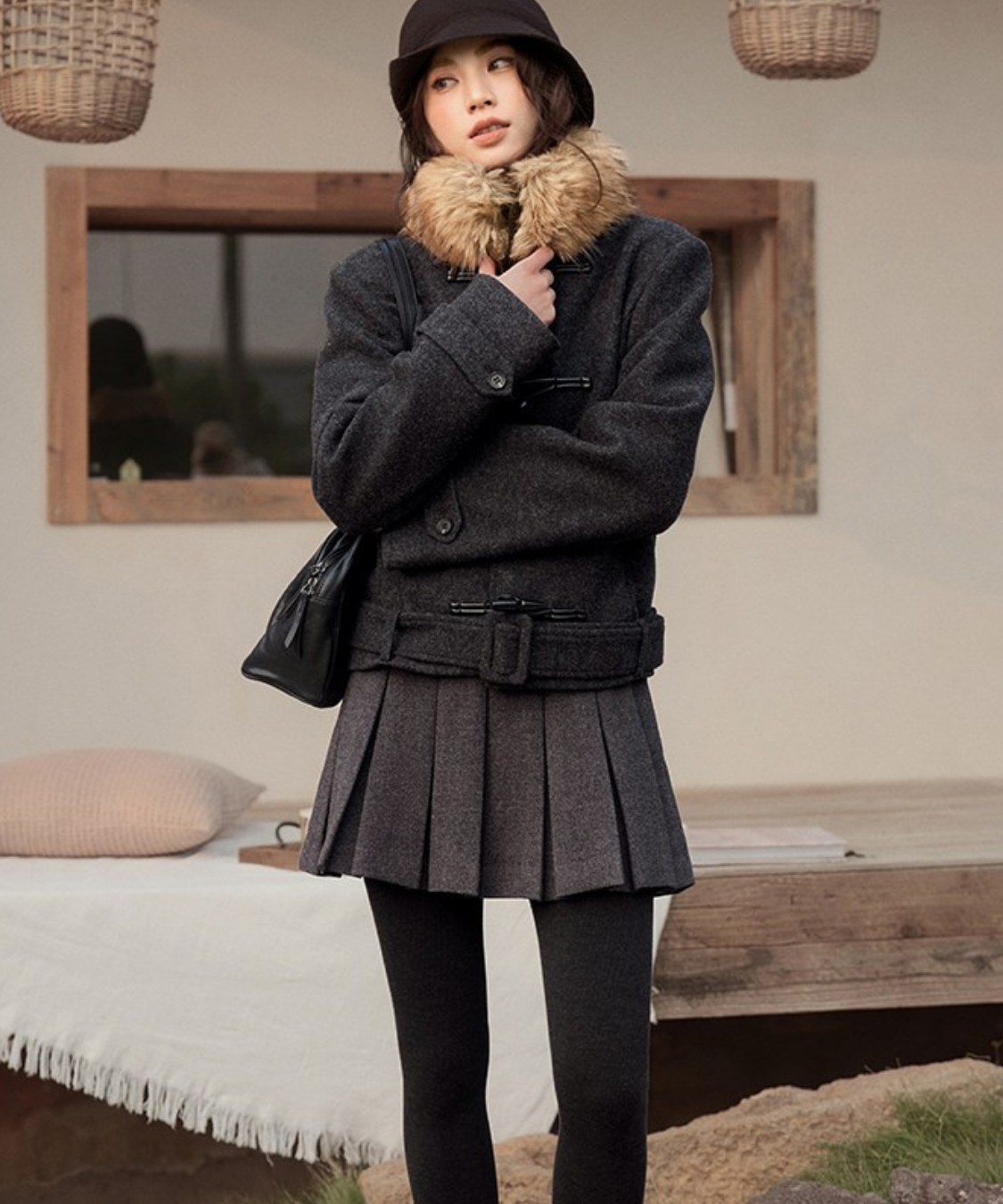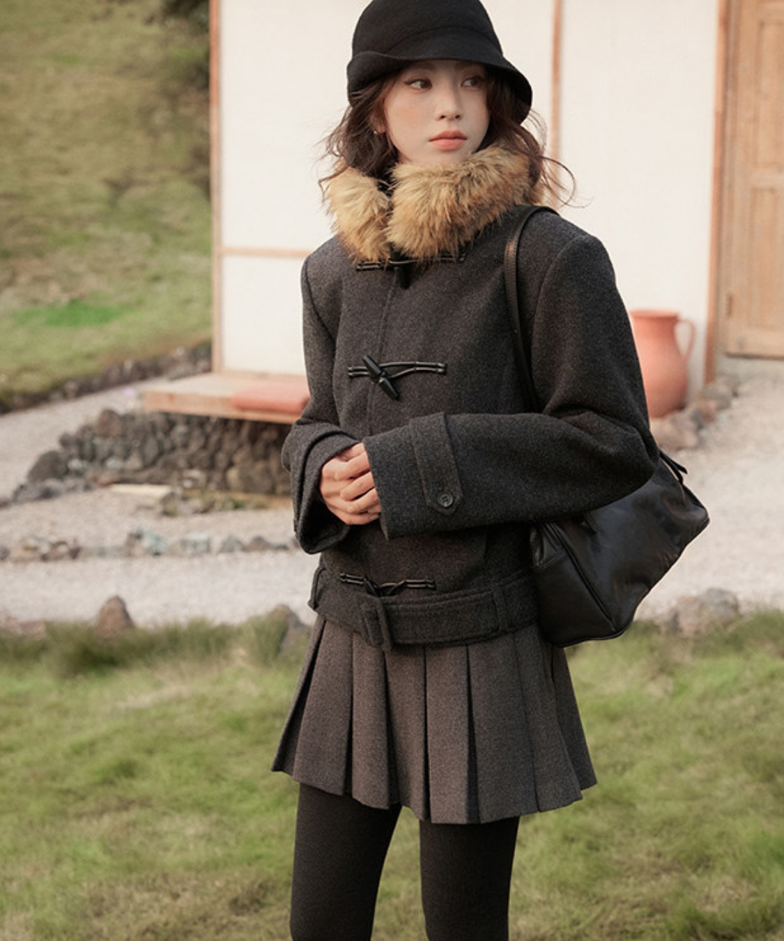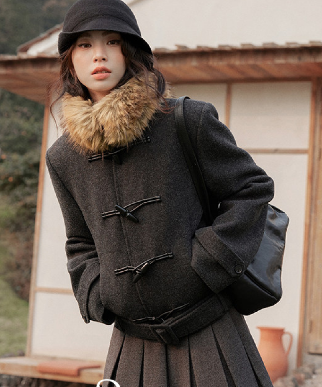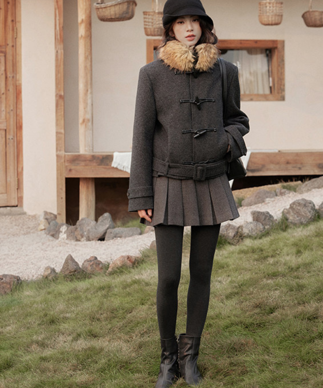 クラシカルな雰囲気漂う、ダッフル風デザインのショートコートです。