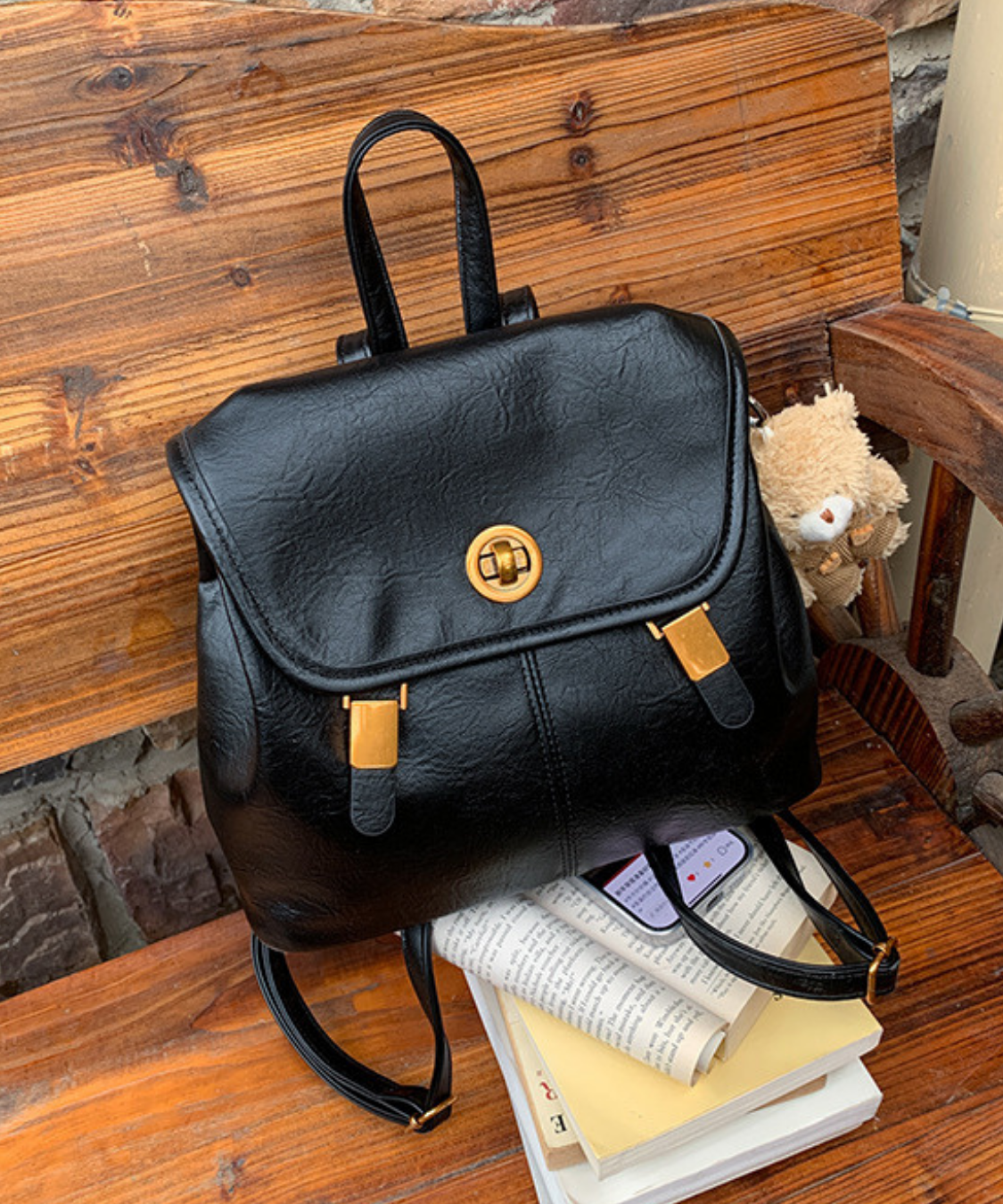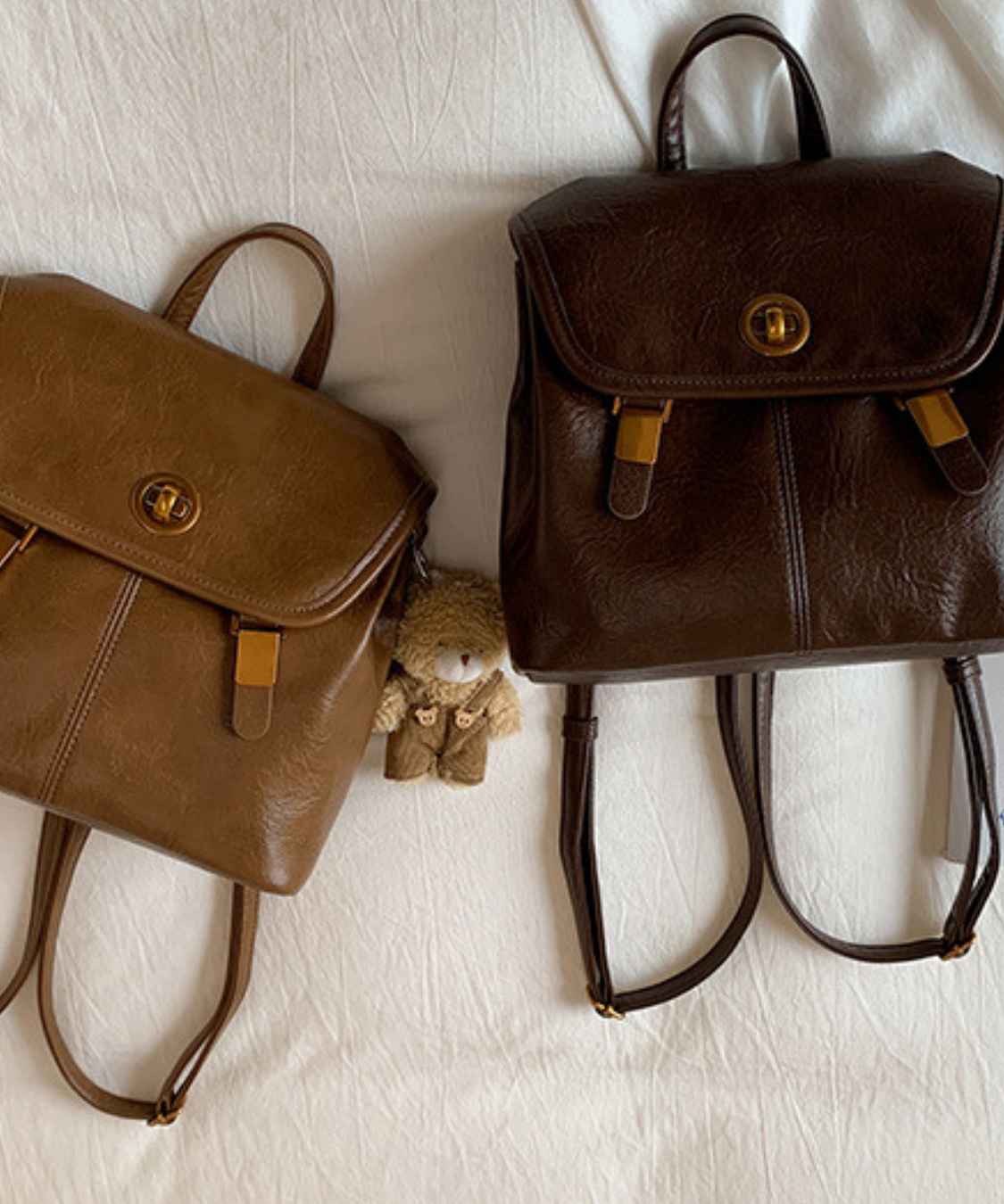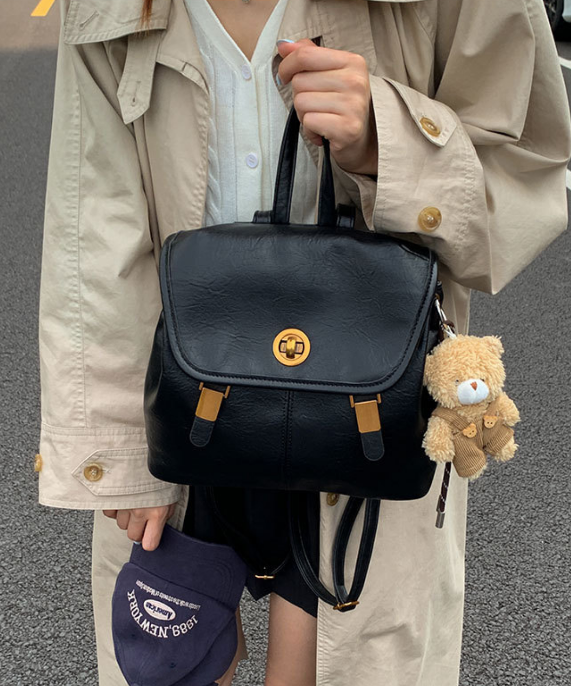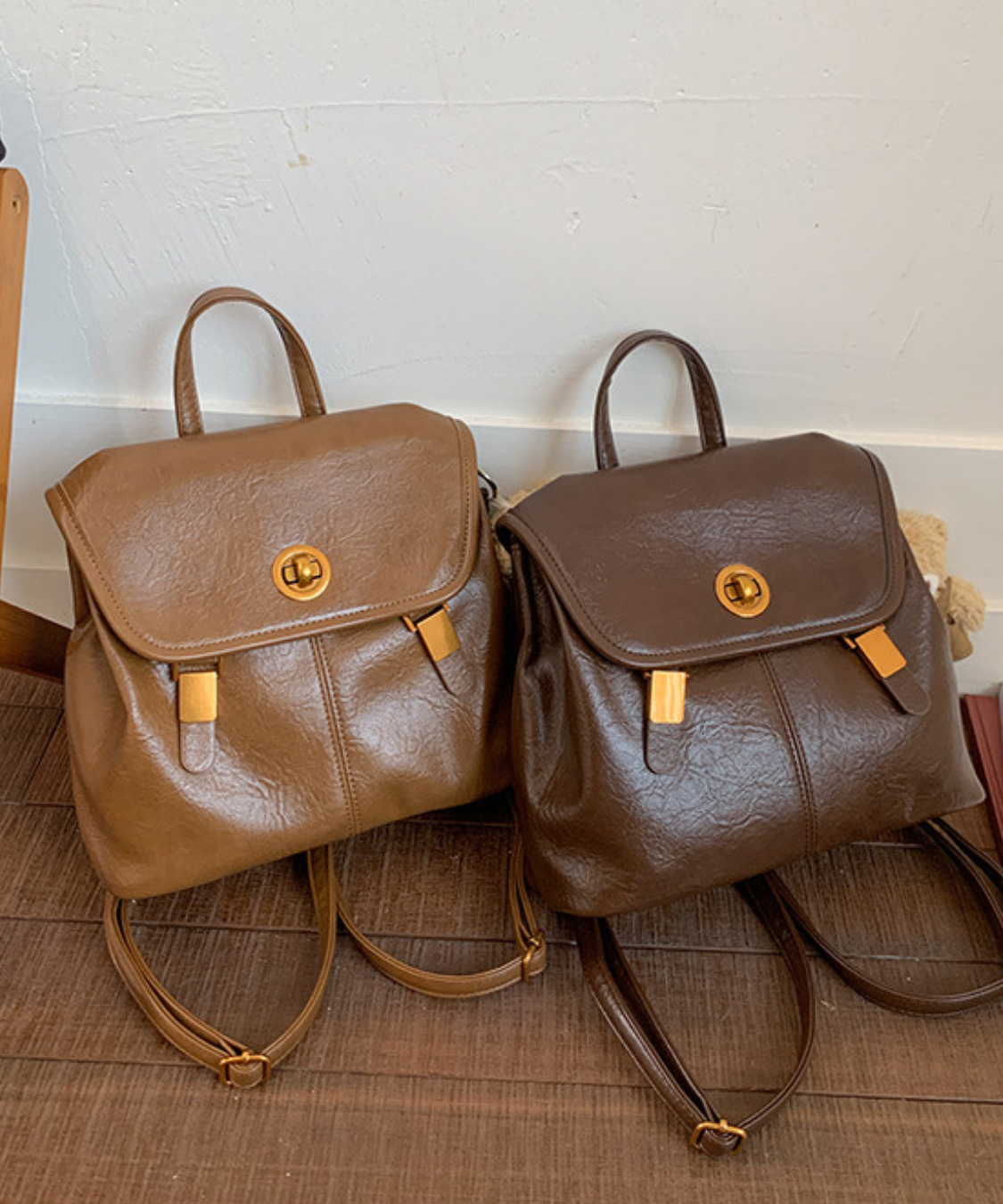 クラシカルな雰囲気漂うフラップデザインのフェイクレザーリュックです。