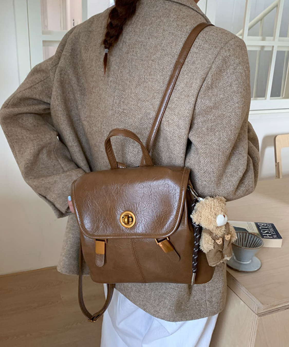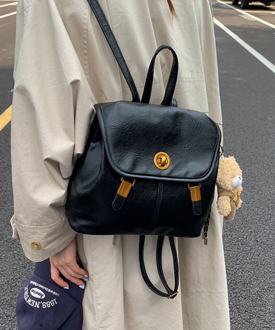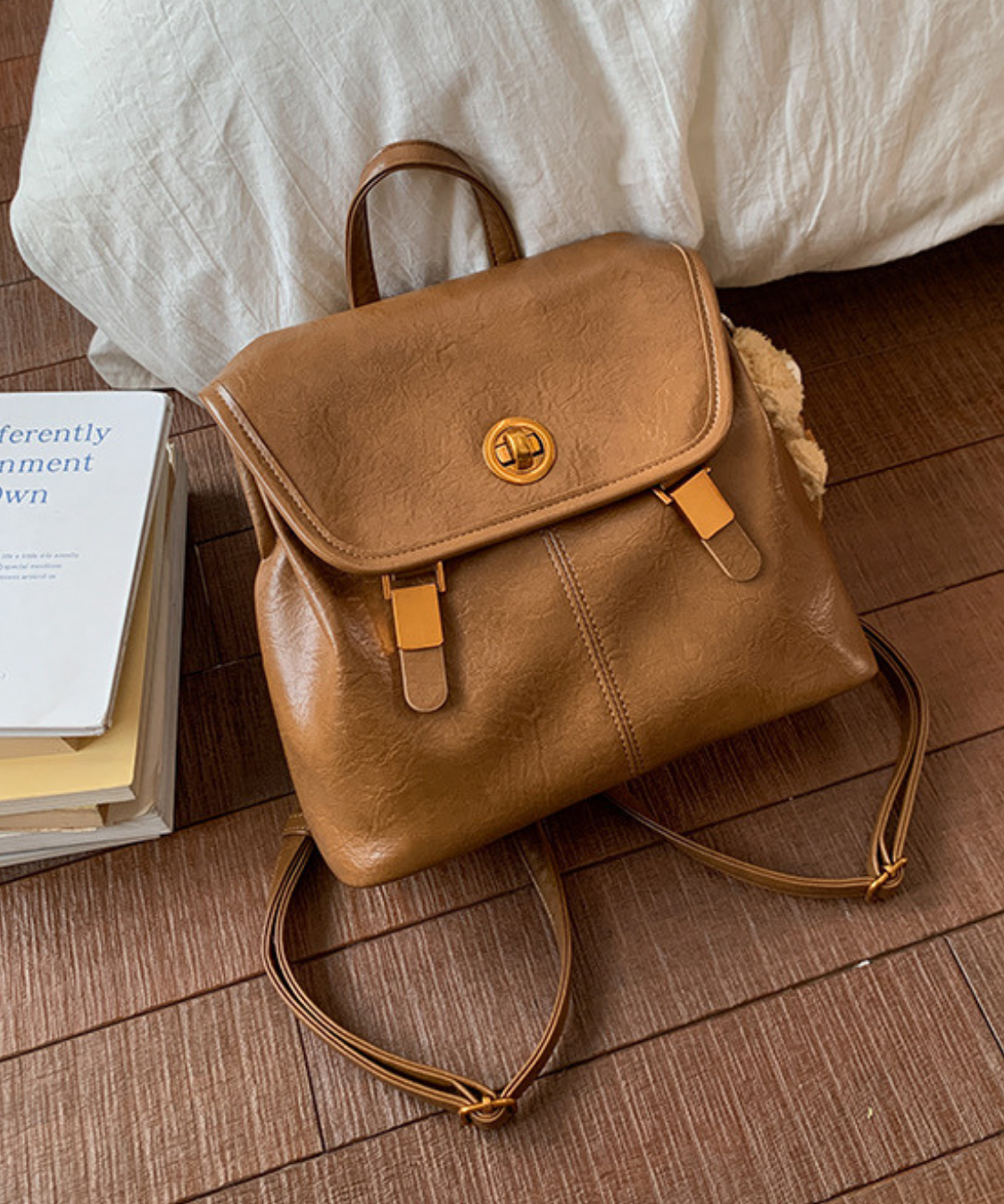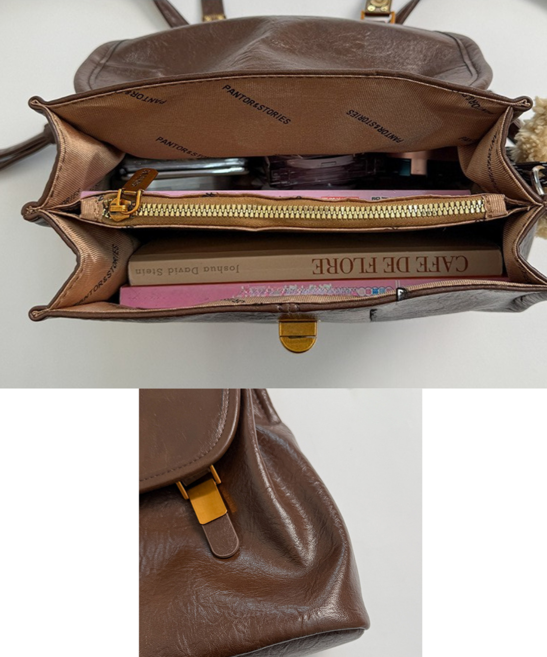 クラシカルな雰囲気漂うフラップデザインのフェイクレザーリュックです。