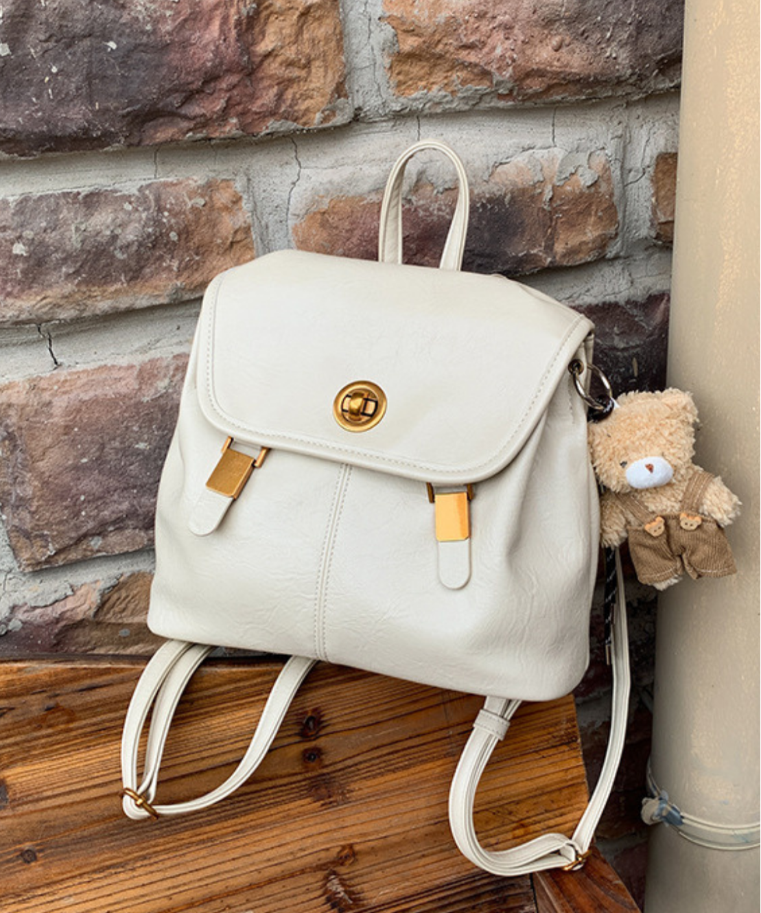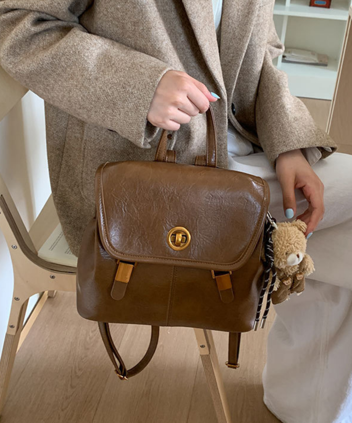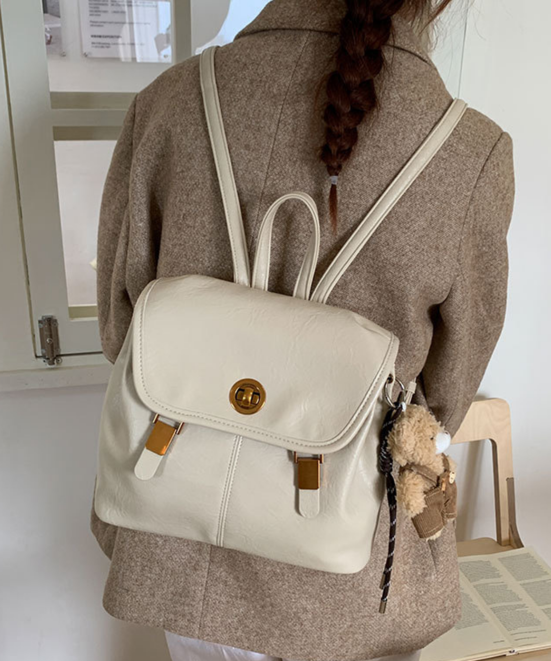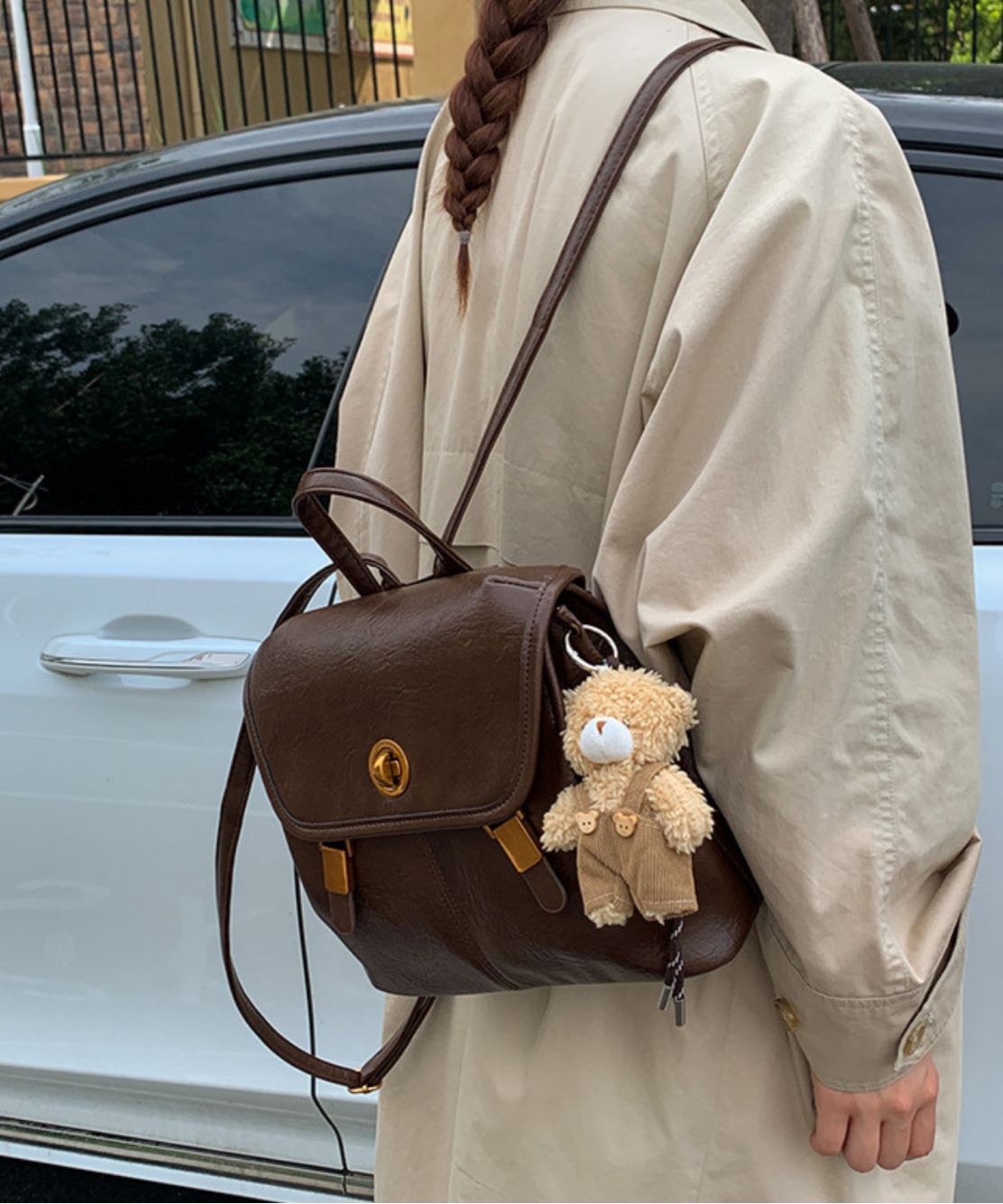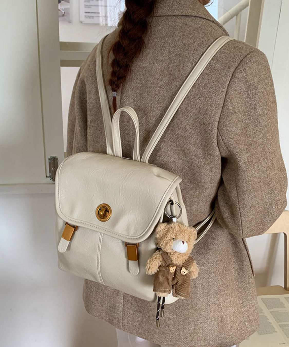 クラシカルな雰囲気漂うフラップデザインのフェイクレザーリュックです。