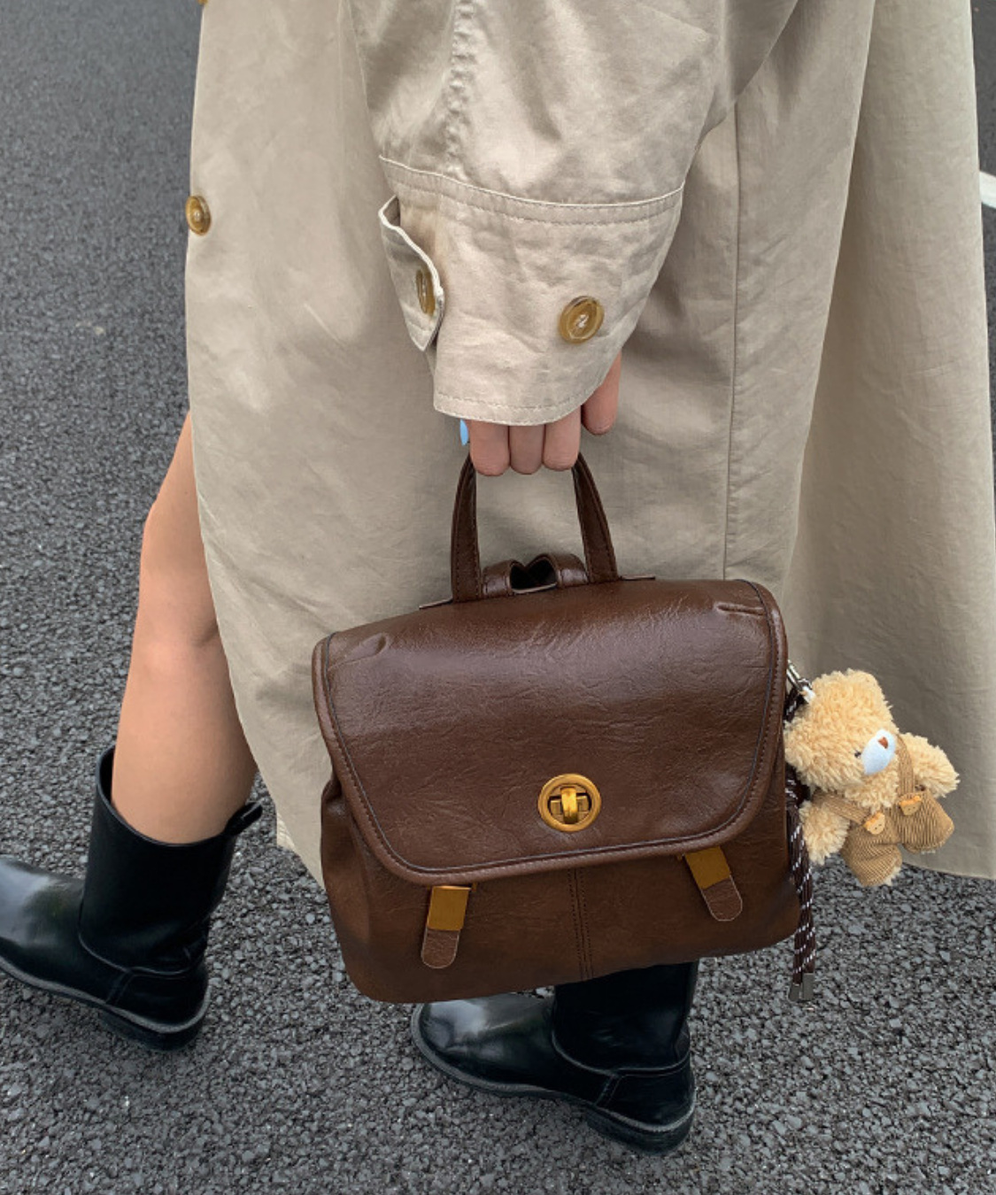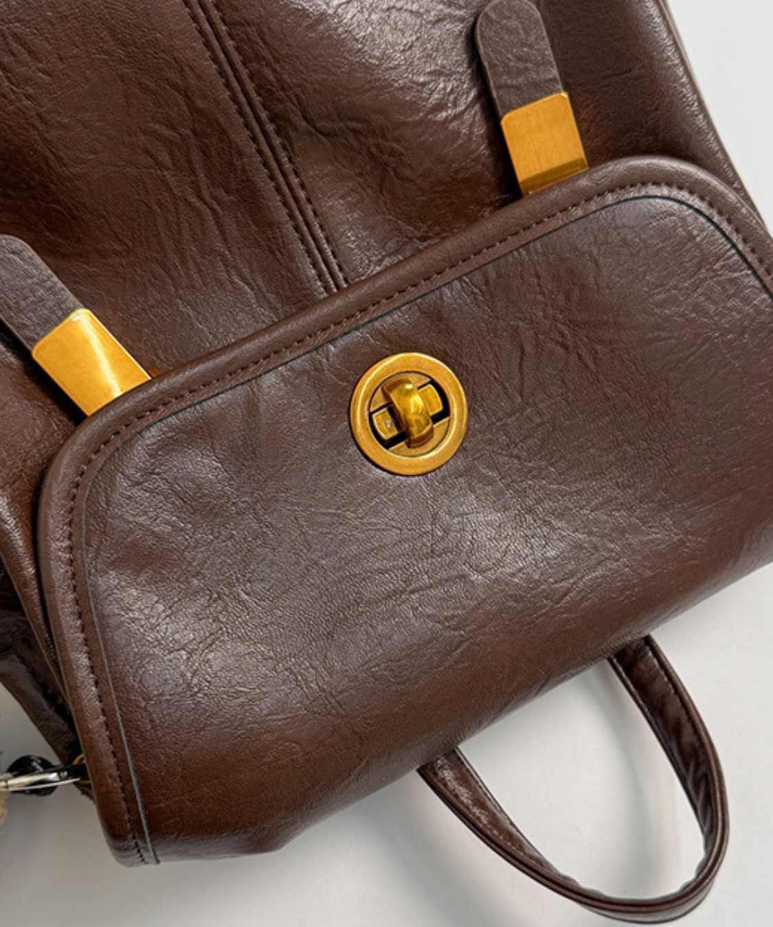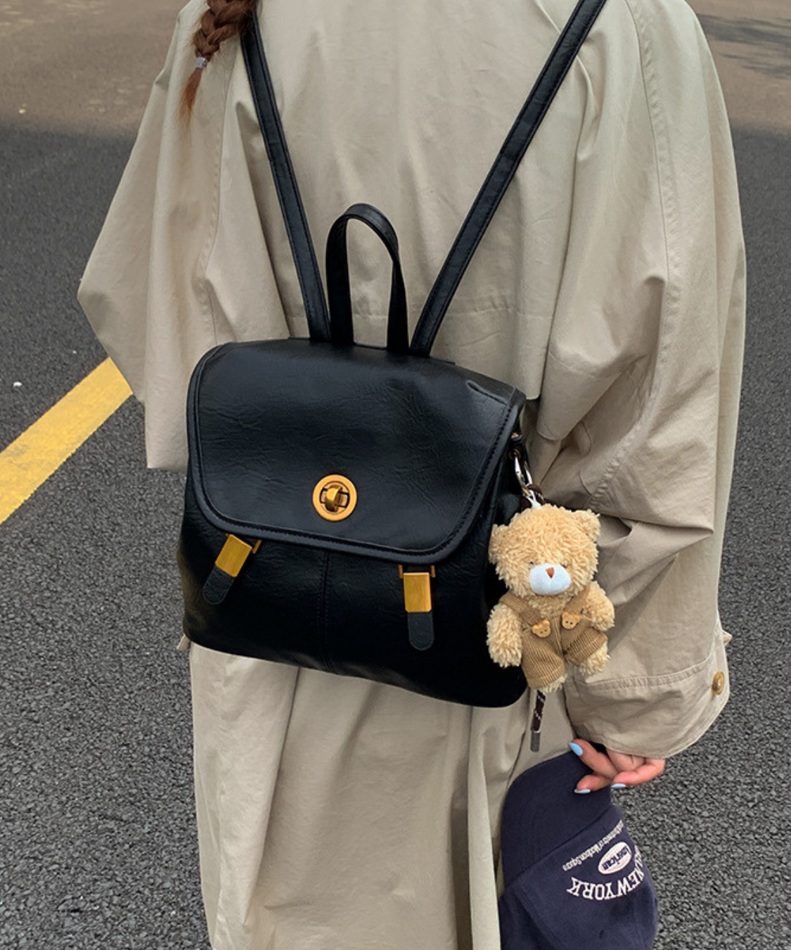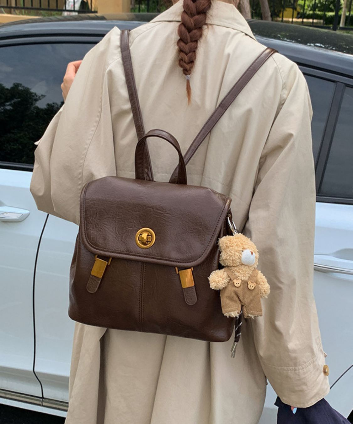クラシカルな雰囲気漂うフラップデザインのフェイクレザーリュックです。