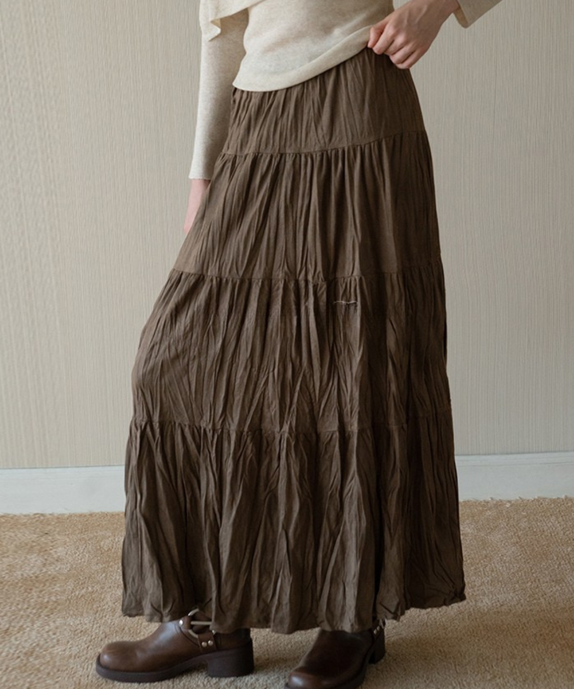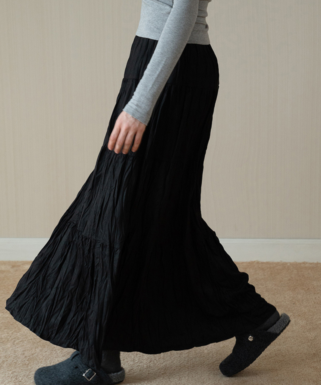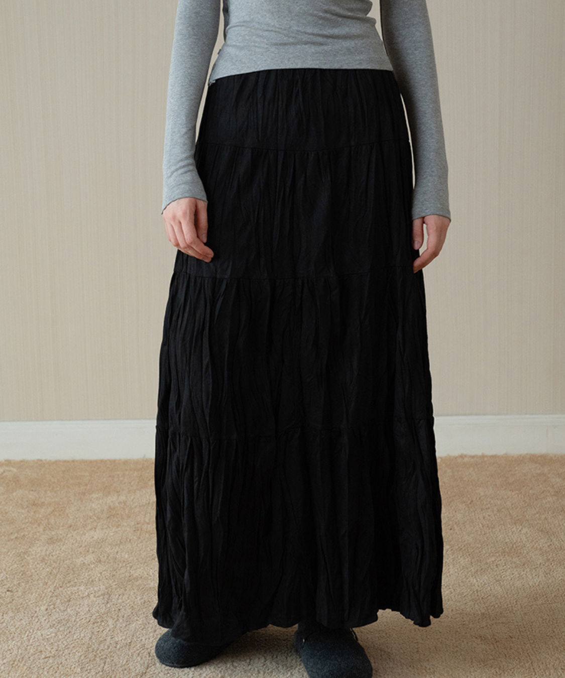 ソフトワッシャーティアードロングスカート