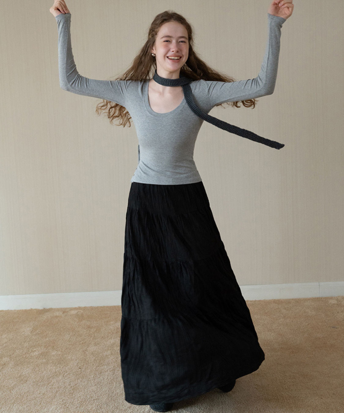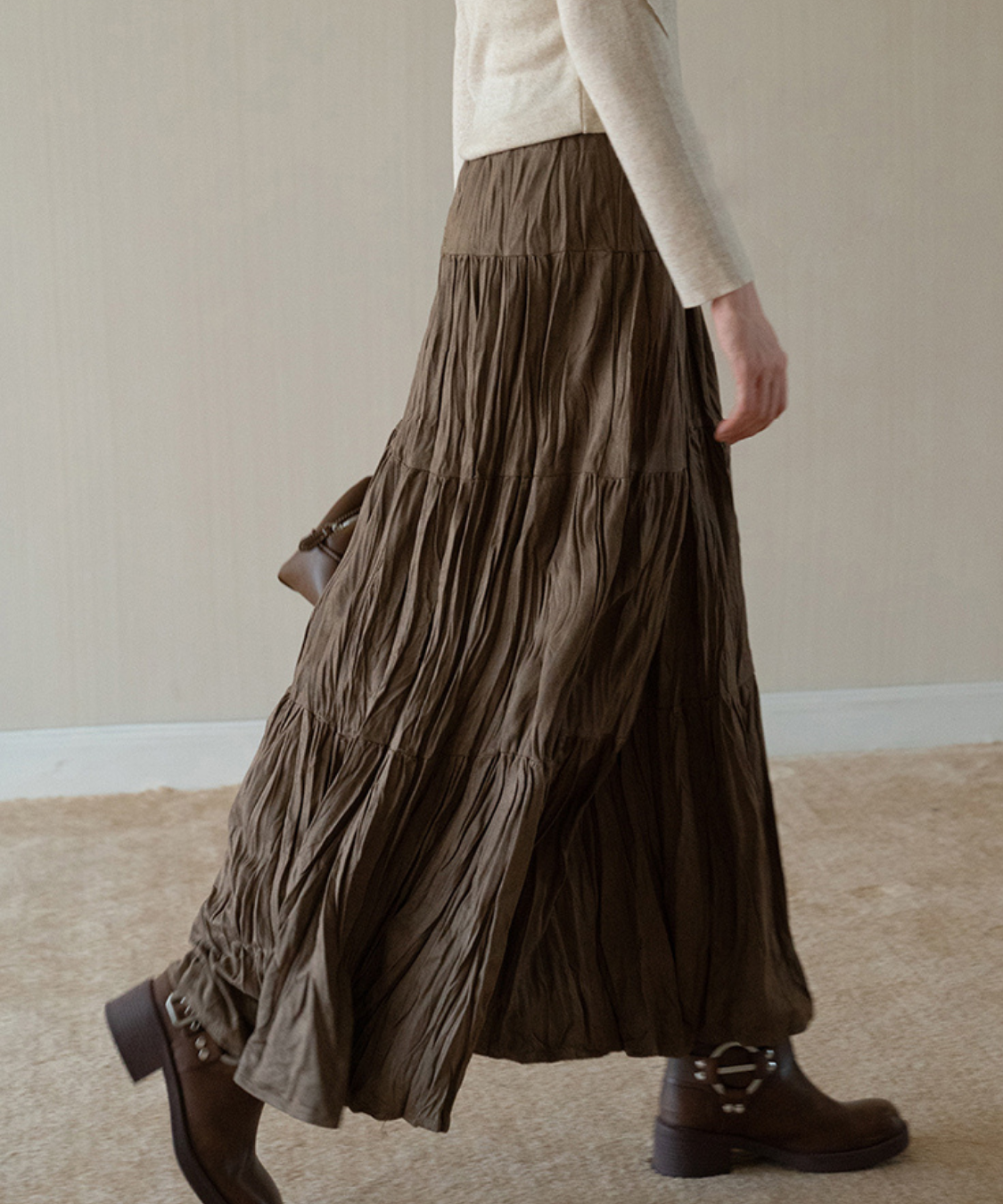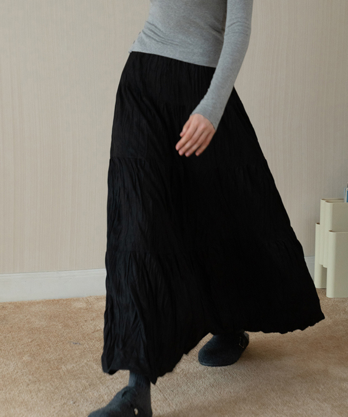 ソフトワッシャーティアードロングスカート