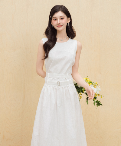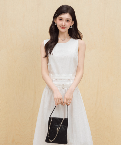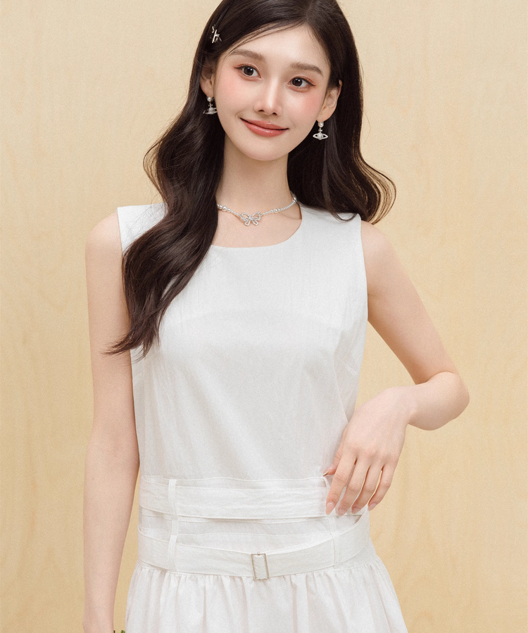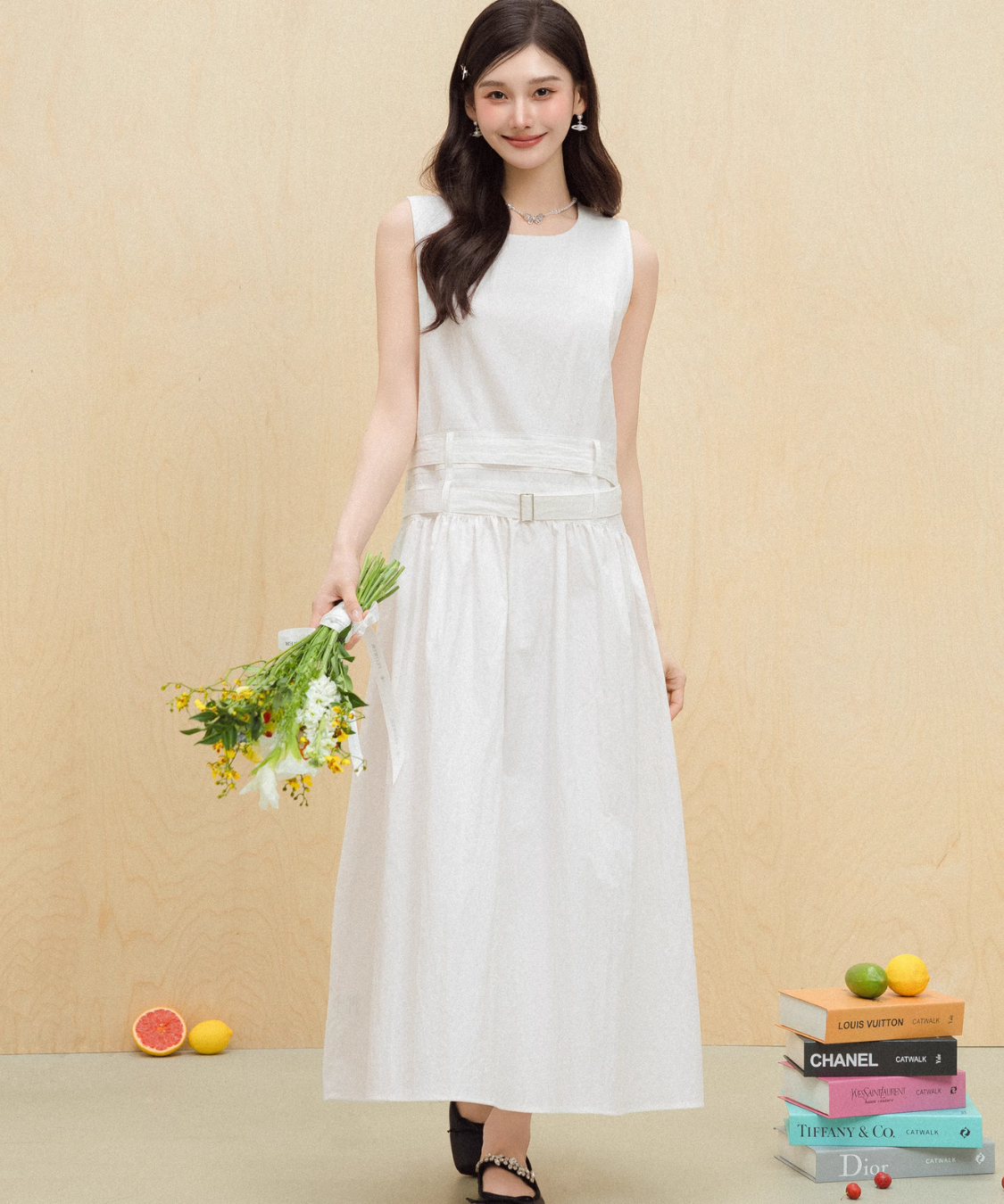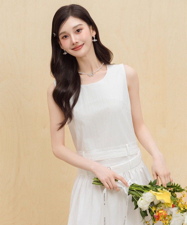 洗練されたシンプルさが魅力のノースリーブワンピースです。