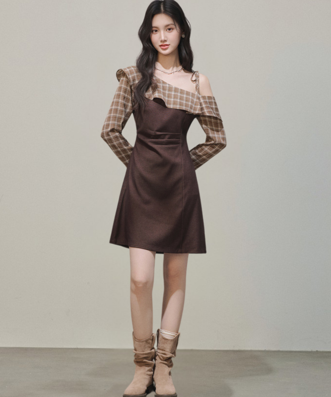アシンメトリーなデザインが印象的なワンショルダーワンピースです。