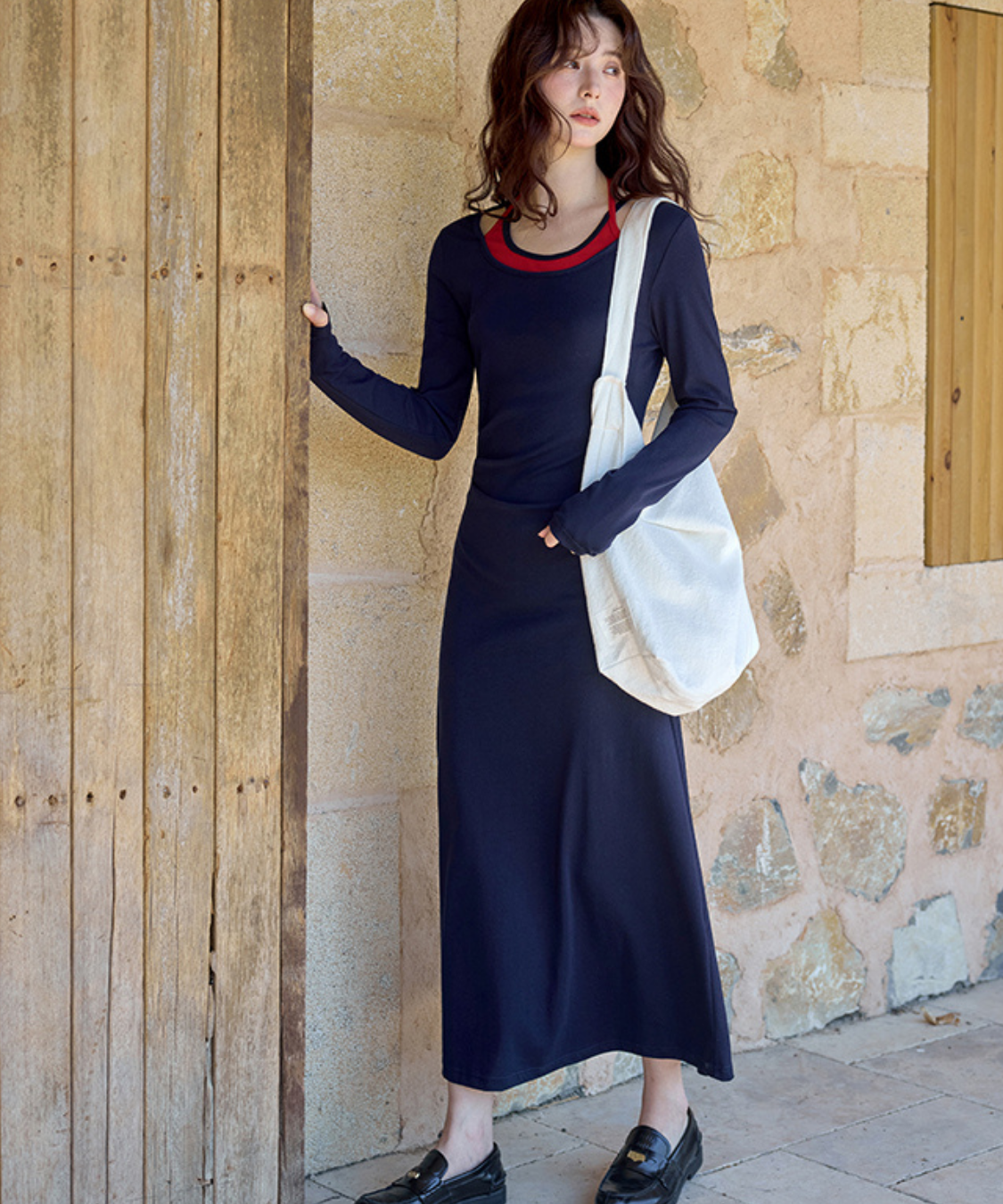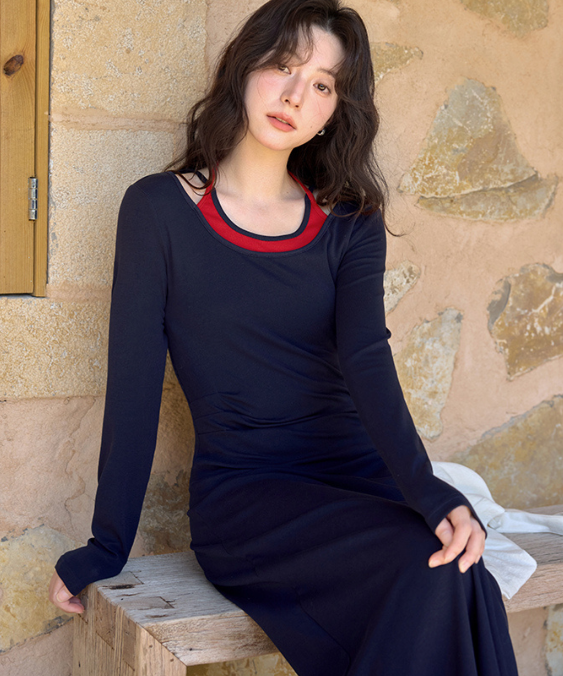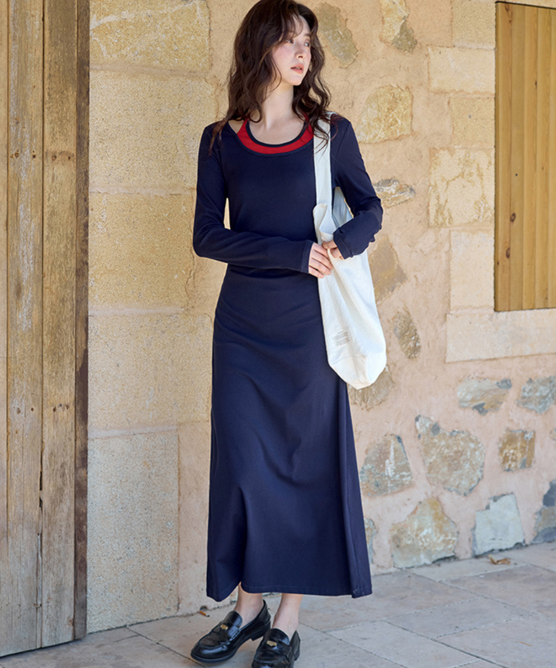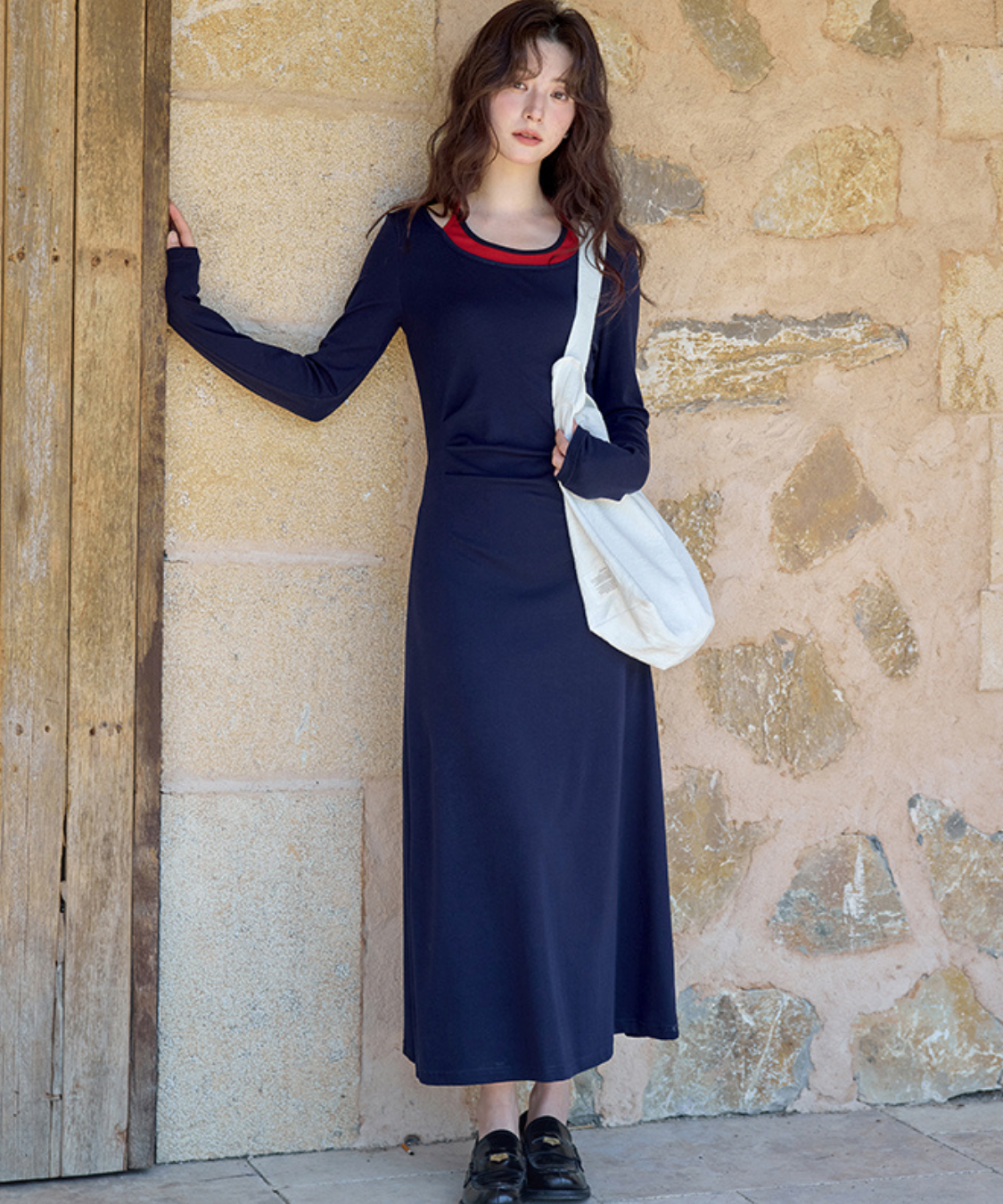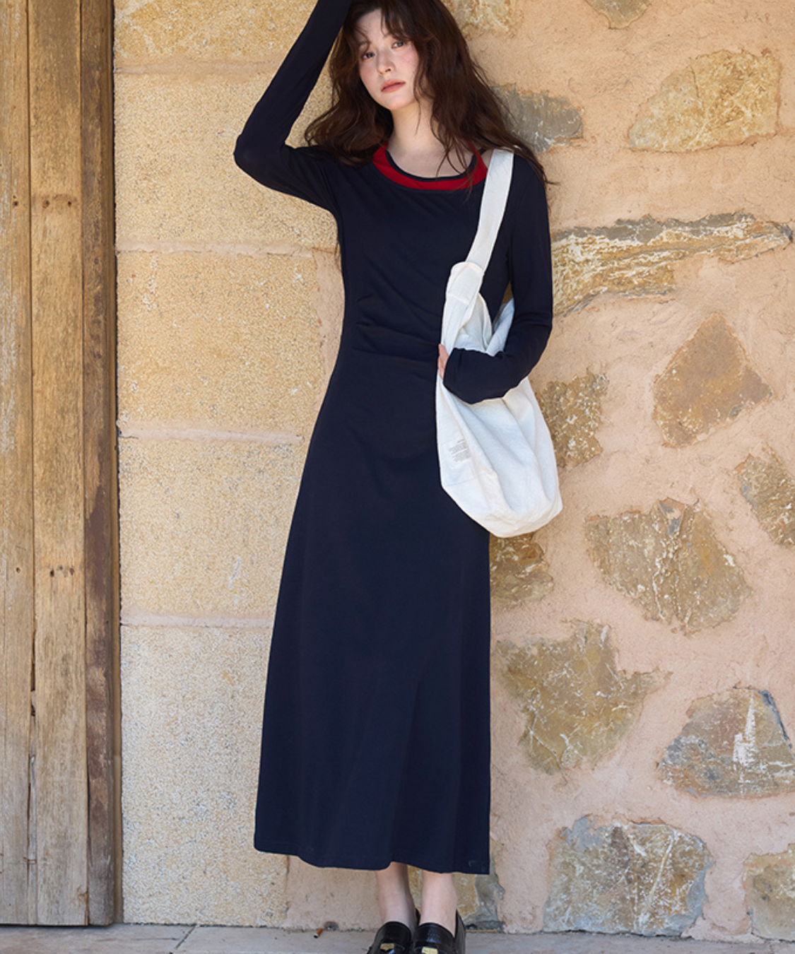 忙しい朝もこれ1枚で完成度高め♡配色も上品で、ネックのリボンが甘すぎなくて大人可愛い!
