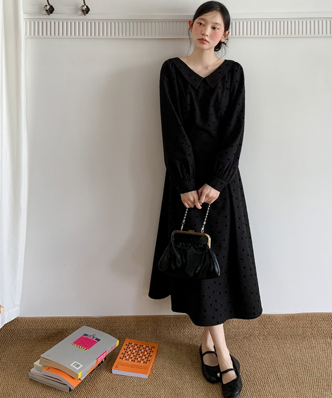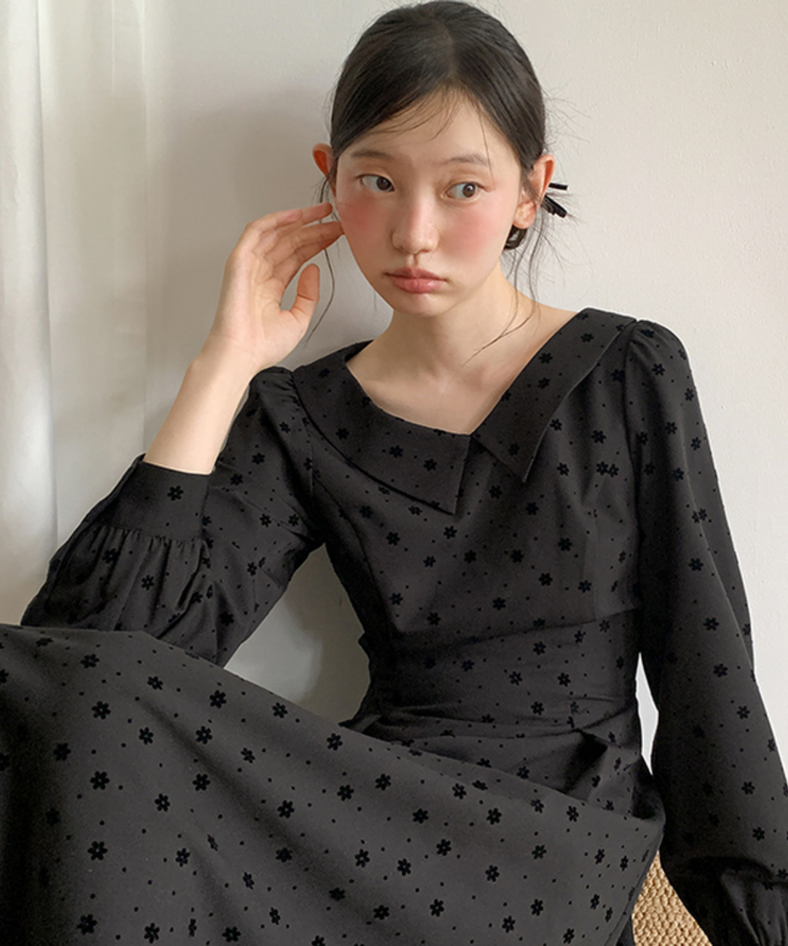 フラットカラーで顔まわりがすっきり見え、クラシカルな雰囲気に仕上がります♡