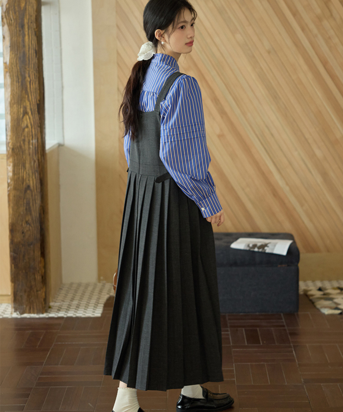 ボックスプリーツロングジャンパースカート
