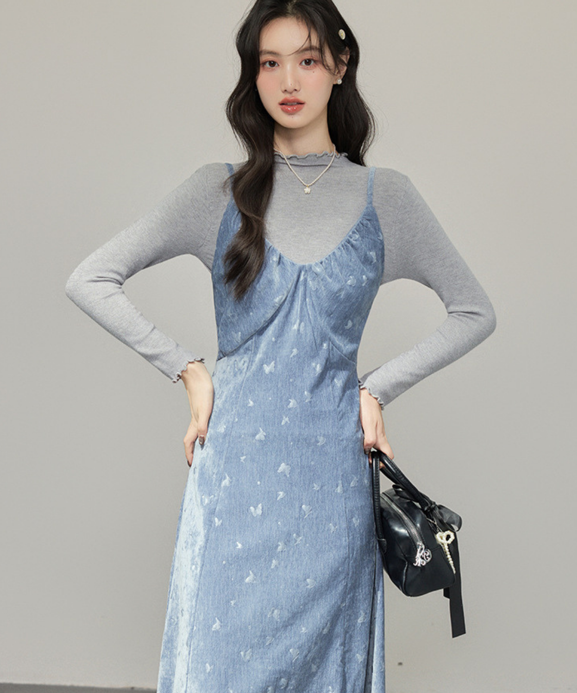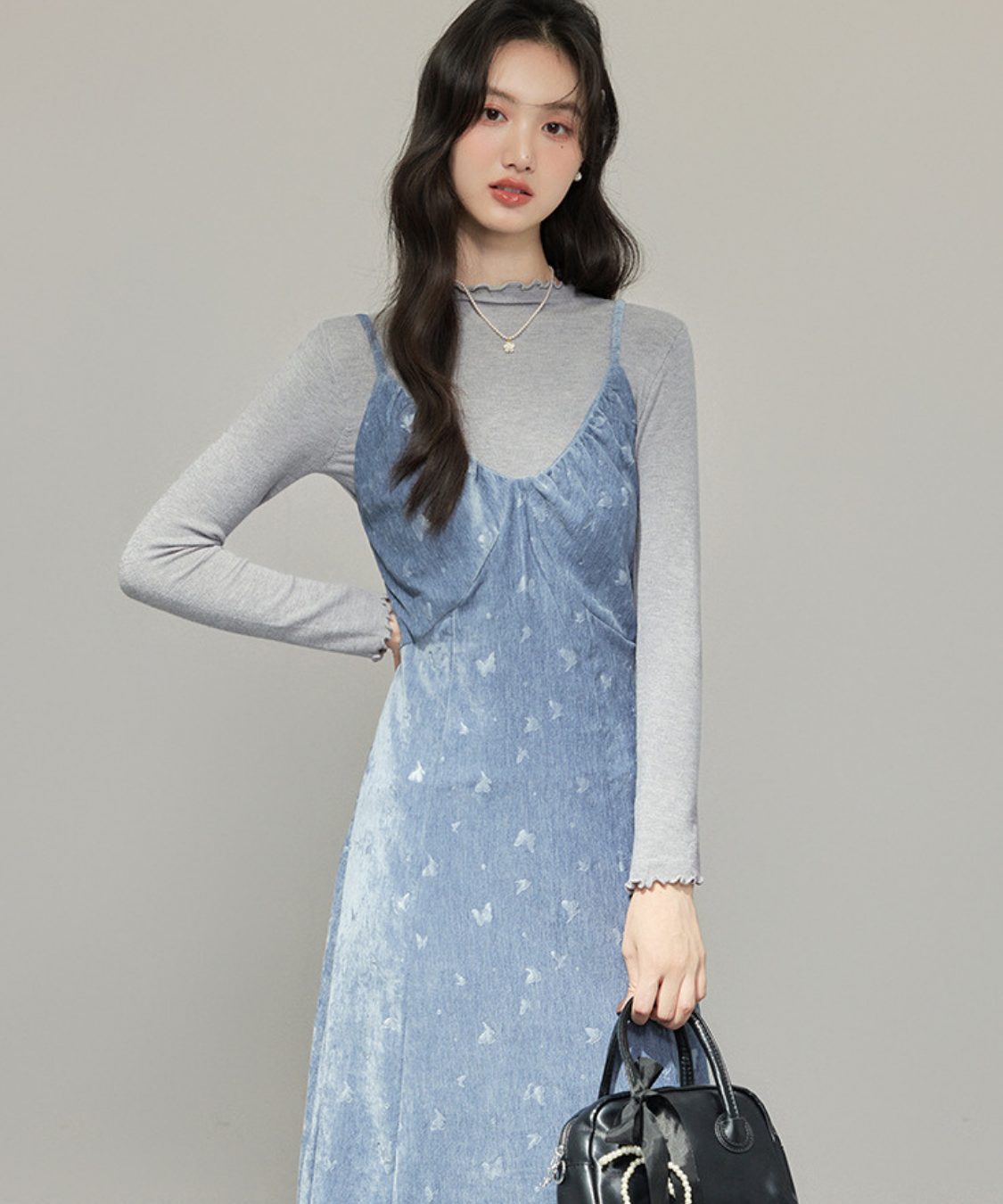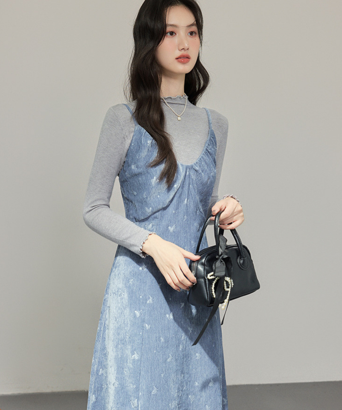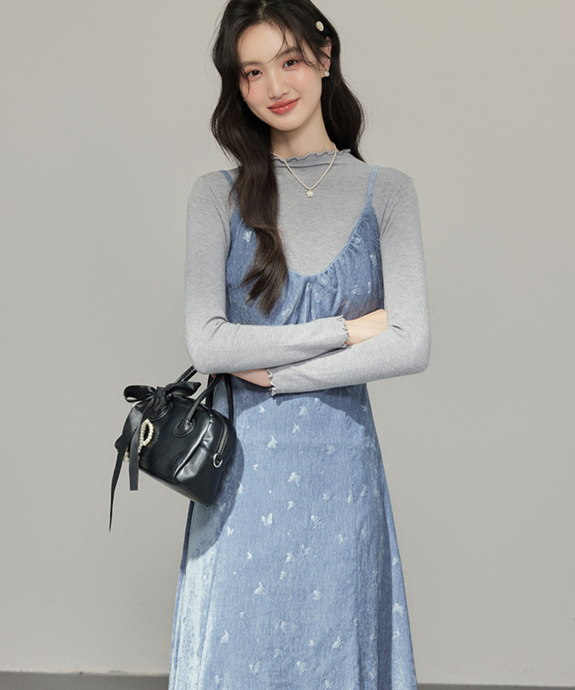 バタフライモチーフキャミワンピ+ハイネックトップス 2点セット