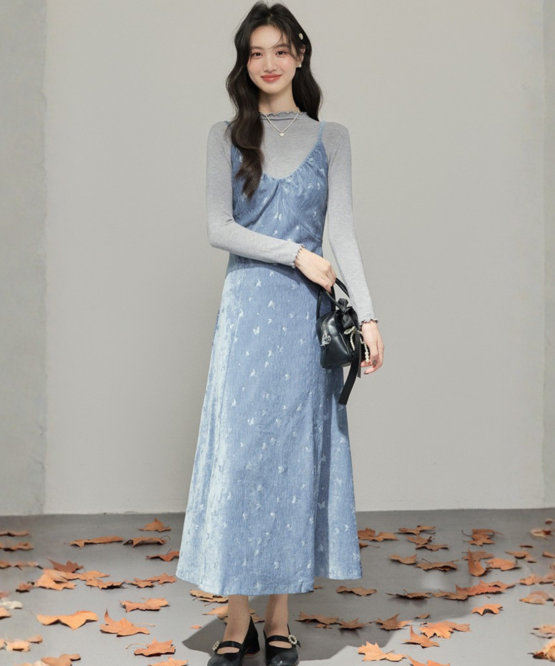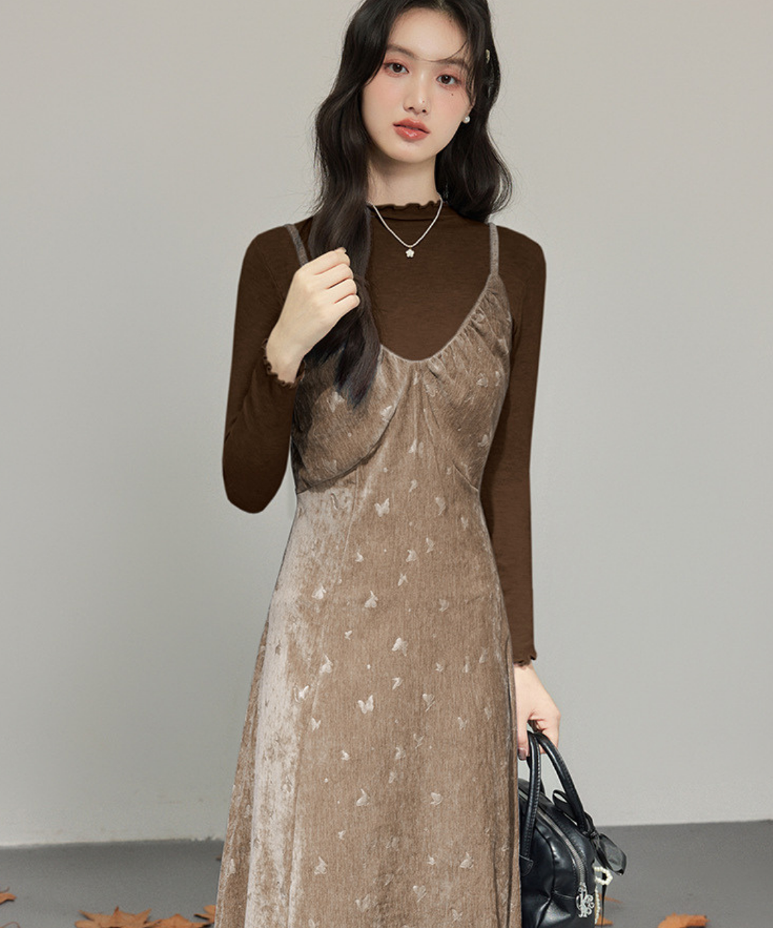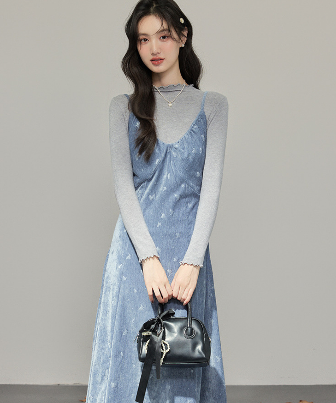 バタフライモチーフキャミワンピ+ハイネックトップス 2点セット