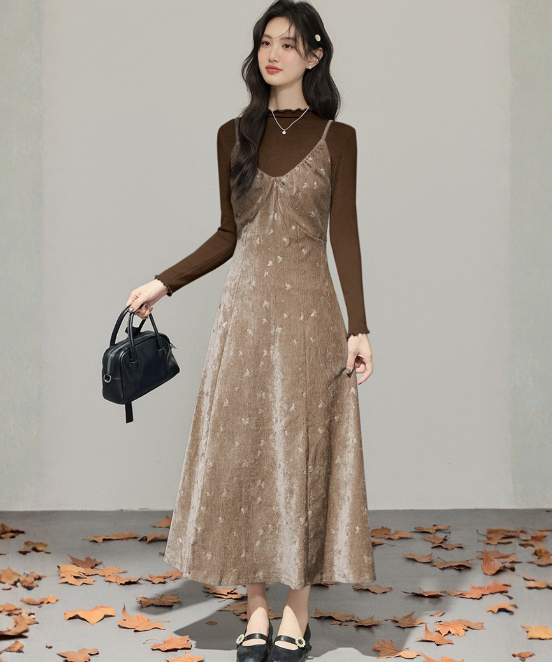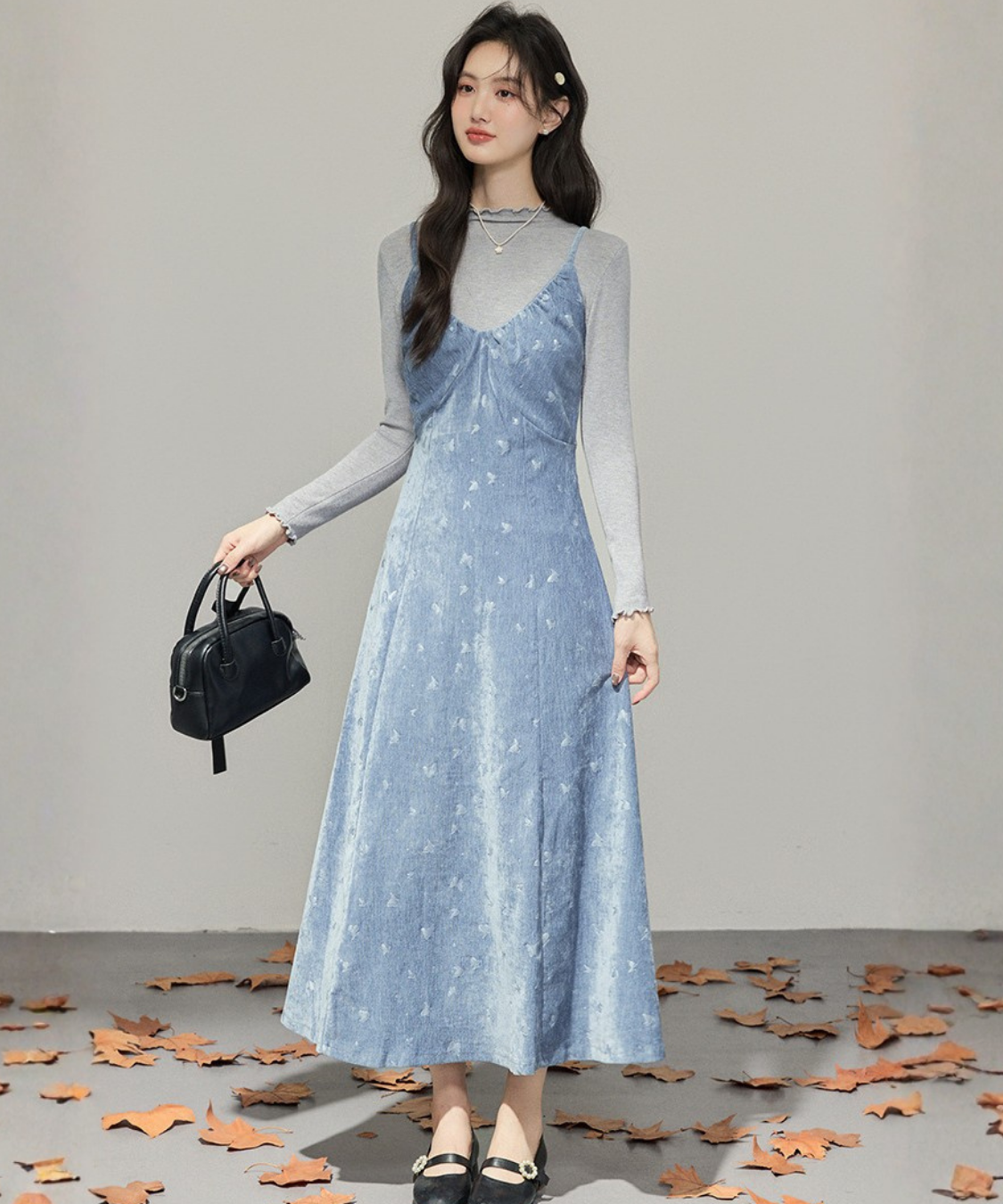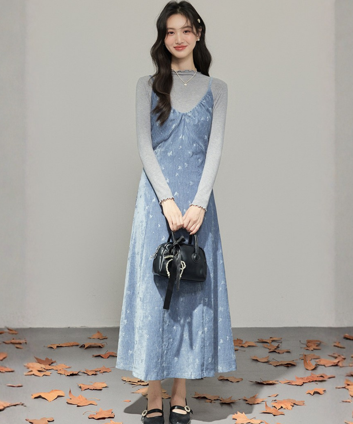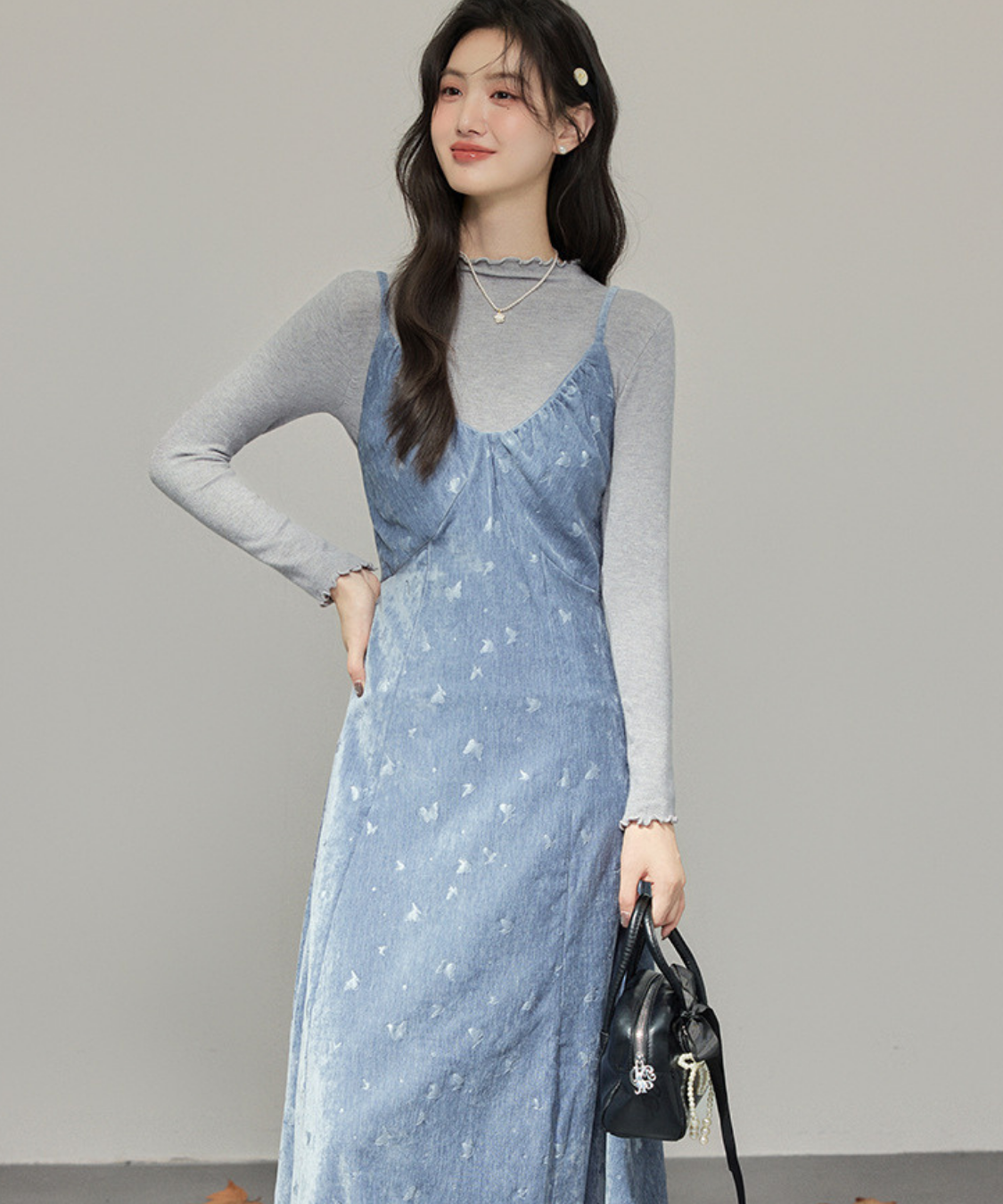 バタフライモチーフキャミワンピ+ハイネックトップス 2点セット